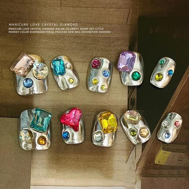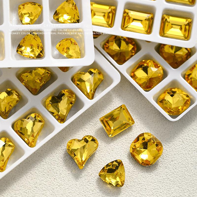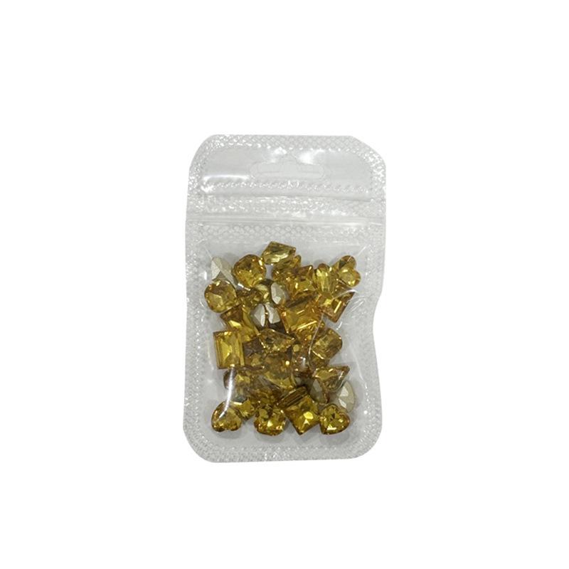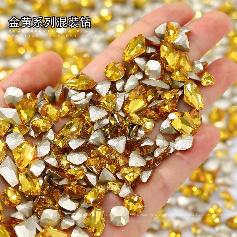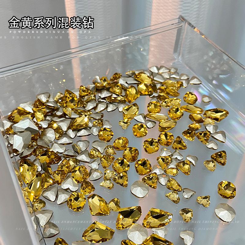 Pedrería Popular para Arte de Uñas, Super Brillante con Forma de Corazón, Ovalada, Cuadrada, de Forma Irregular con Fondo Puntiagudo Mezclada con Pedrería para Arte de Uñas Color Oro
