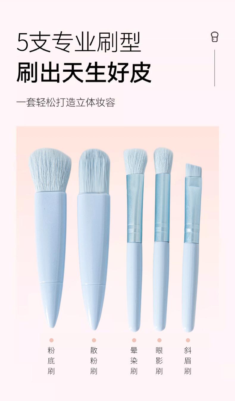 Nuevo mini espejo de maquillaje, juego de brochas de viaje portátiles, brocha para sombra de ojos, brocha para rubor, herramientas de belleza
