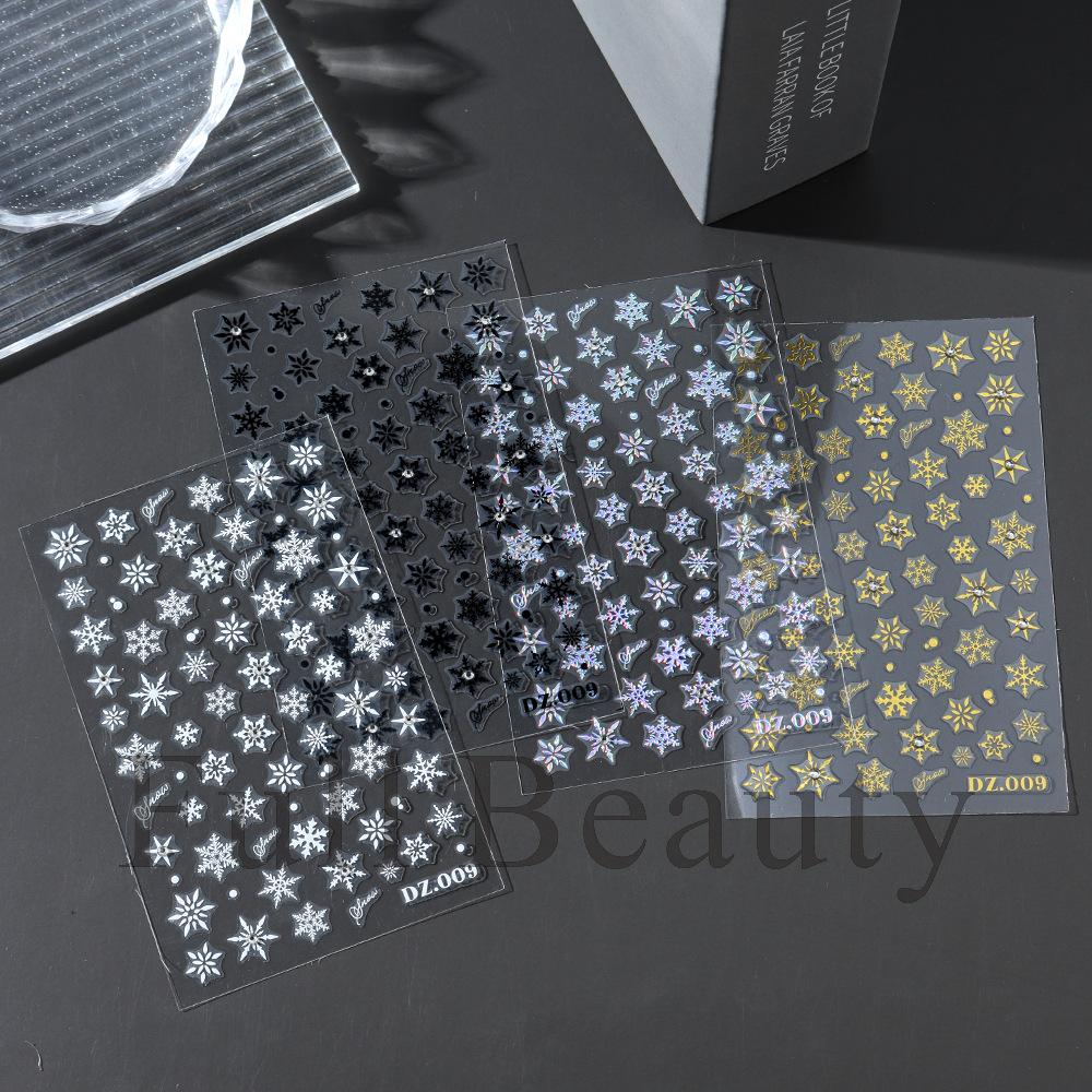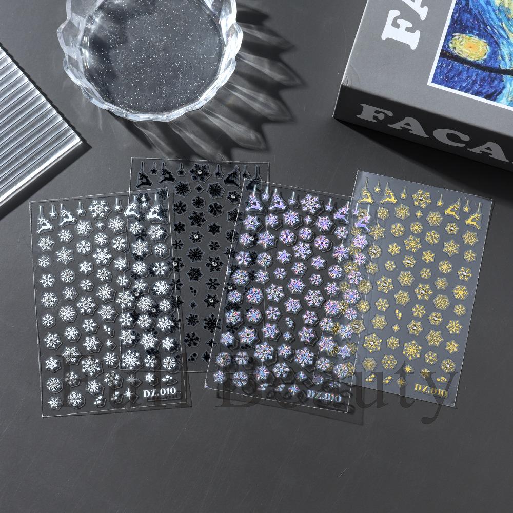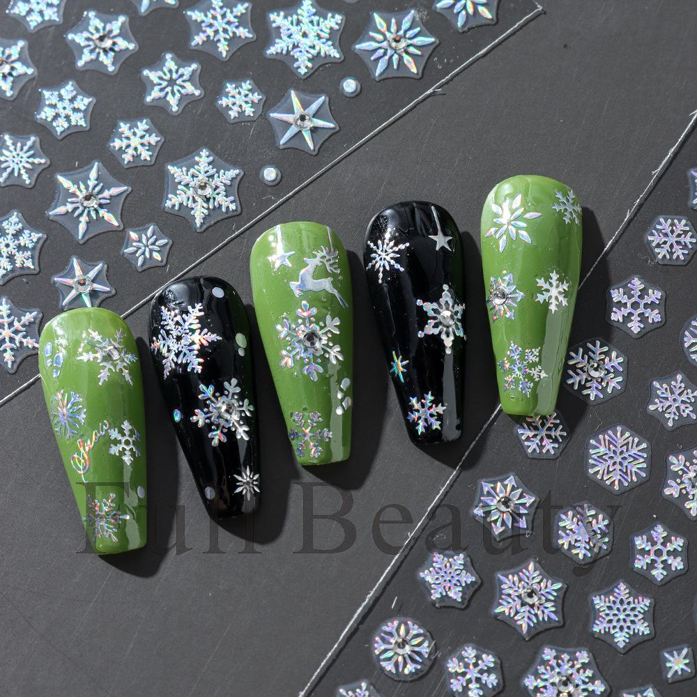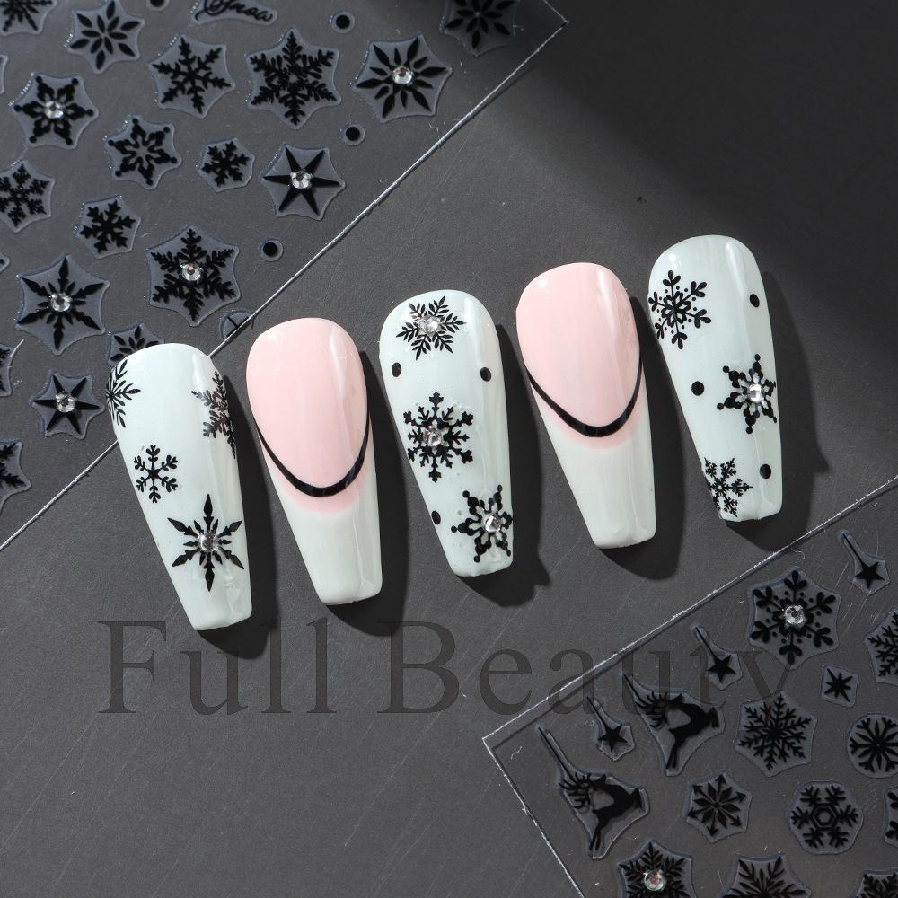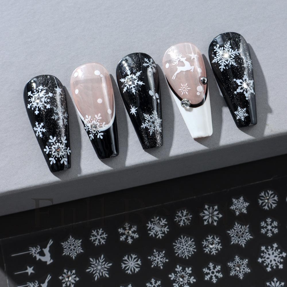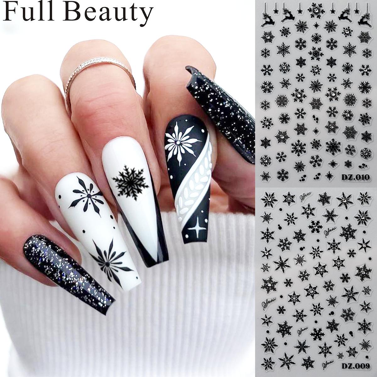 BELLEZA COMPLETA Transfronteriza Nuevas pegatinas para decoración de uñas Navidad Copo de nieve Negro y Blanco Oro Láser Plata Copo de nieve Adhesivos Adhesivos