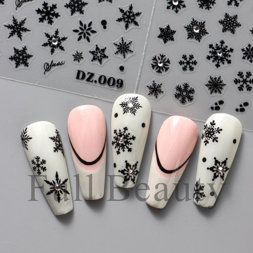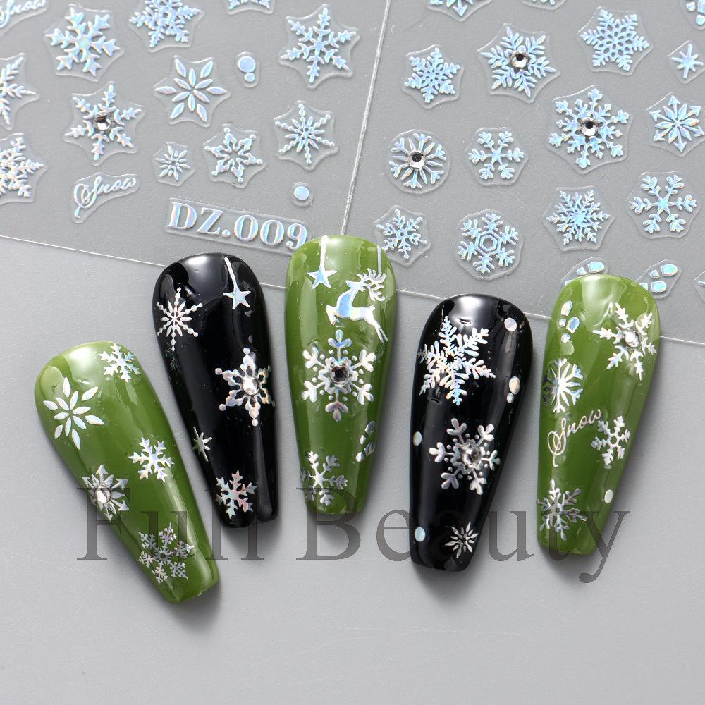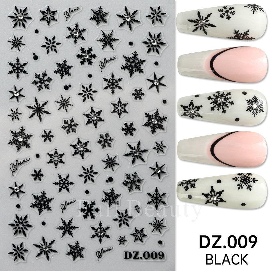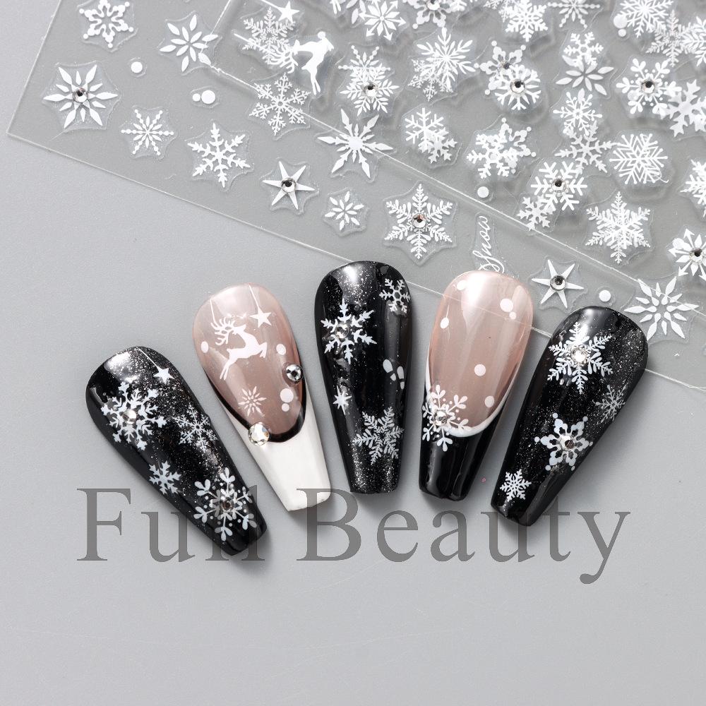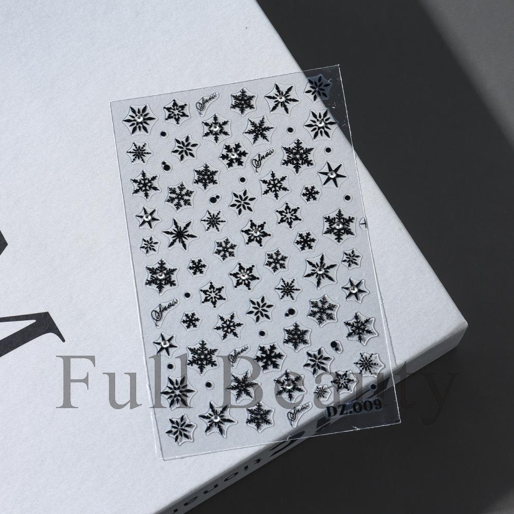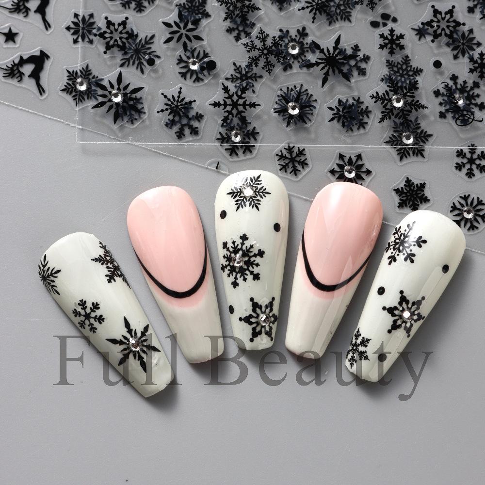 BELLEZA COMPLETA Transfronteriza Nuevas pegatinas para decoración de uñas Navidad Copo de nieve Negro y Blanco Oro Láser Plata Copo de nieve Adhesivos Adhesivos
