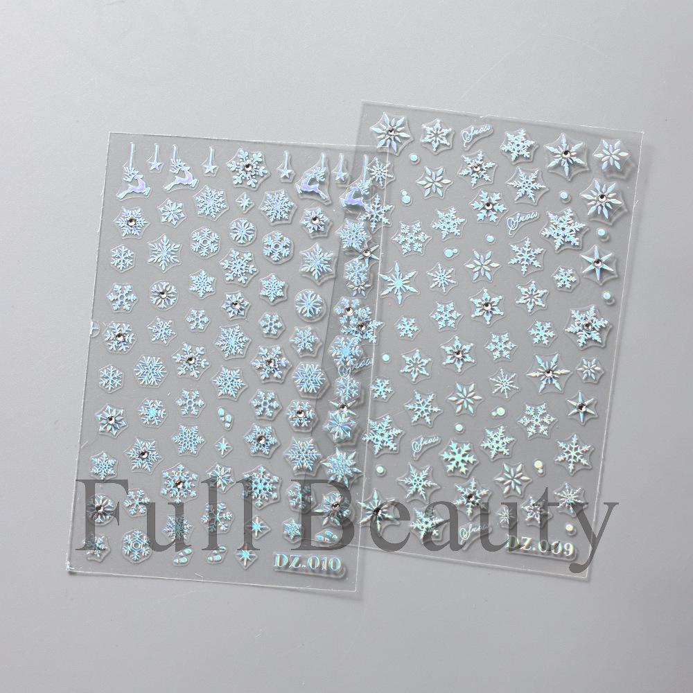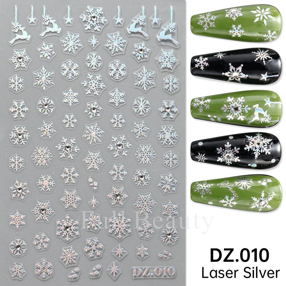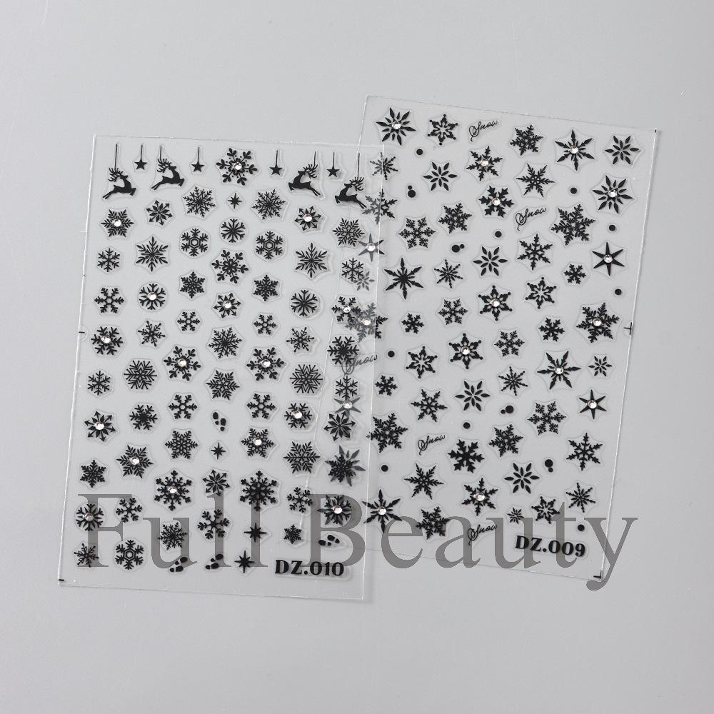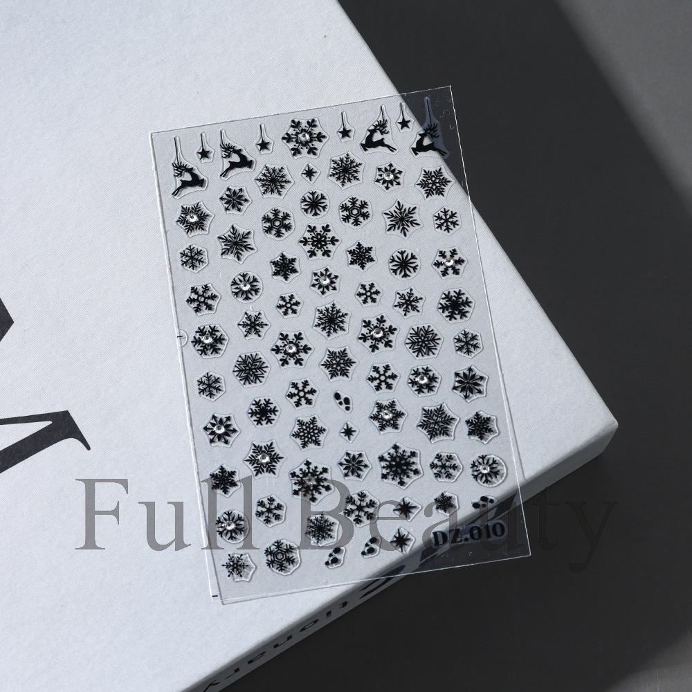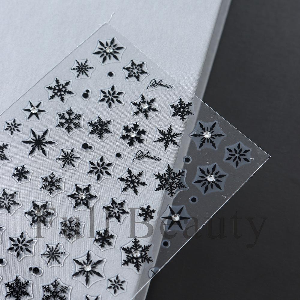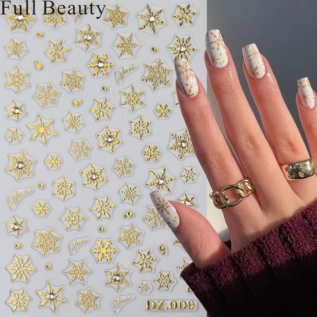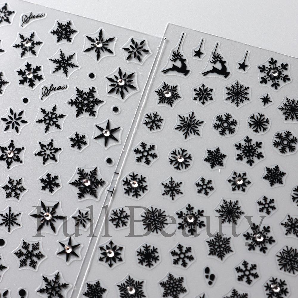 BELLEZA COMPLETA Transfronteriza Nuevas pegatinas para decoración de uñas Navidad Copo de nieve Negro y Blanco Oro Láser Plata Copo de nieve Adhesivos Adhesivos