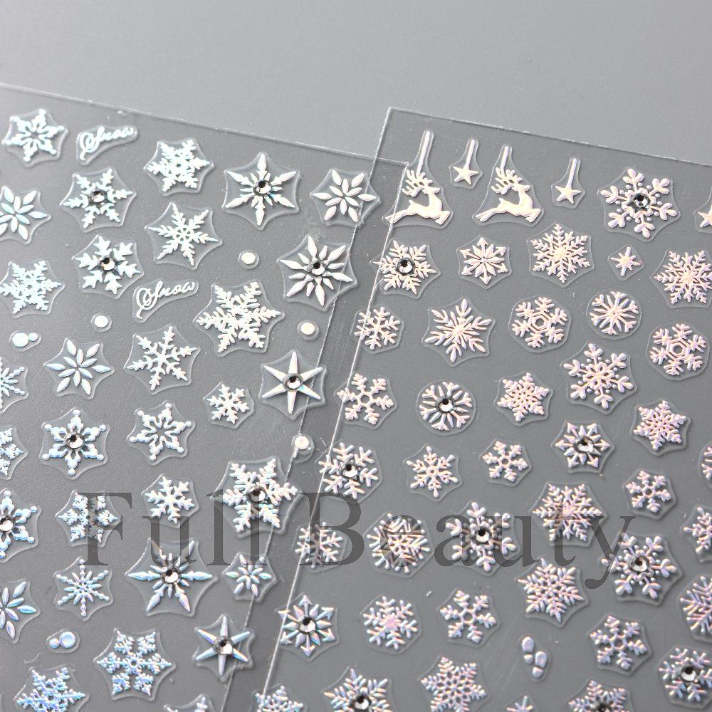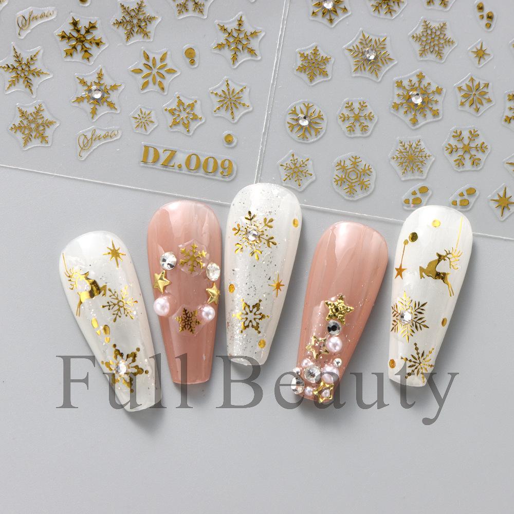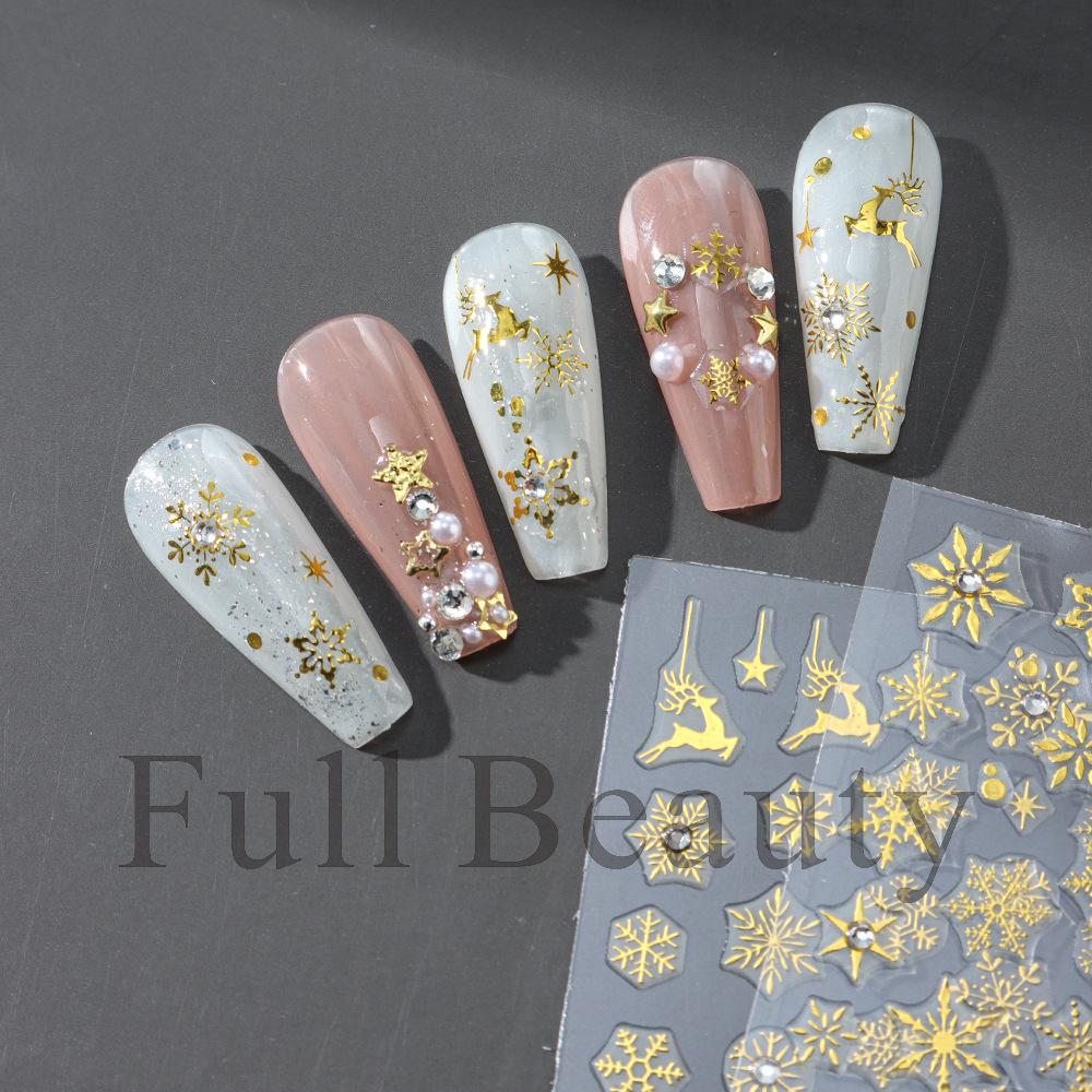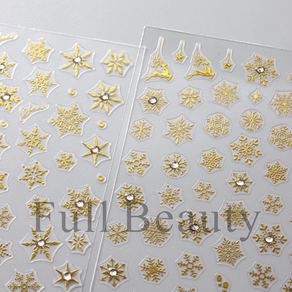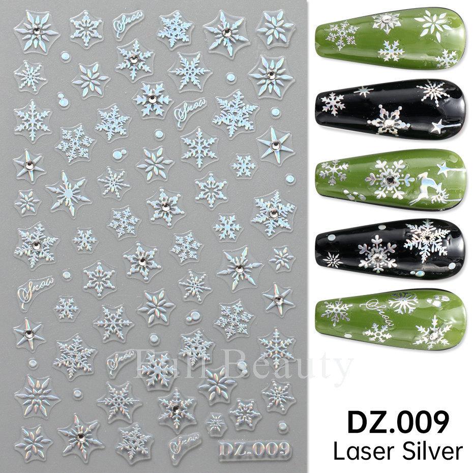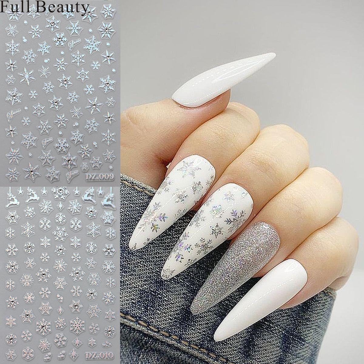 BELLEZA COMPLETA Transfronteriza Nuevas pegatinas para decoración de uñas Navidad Copo de nieve Negro y Blanco Oro Láser Plata Copo de nieve Adhesivos Adhesivos