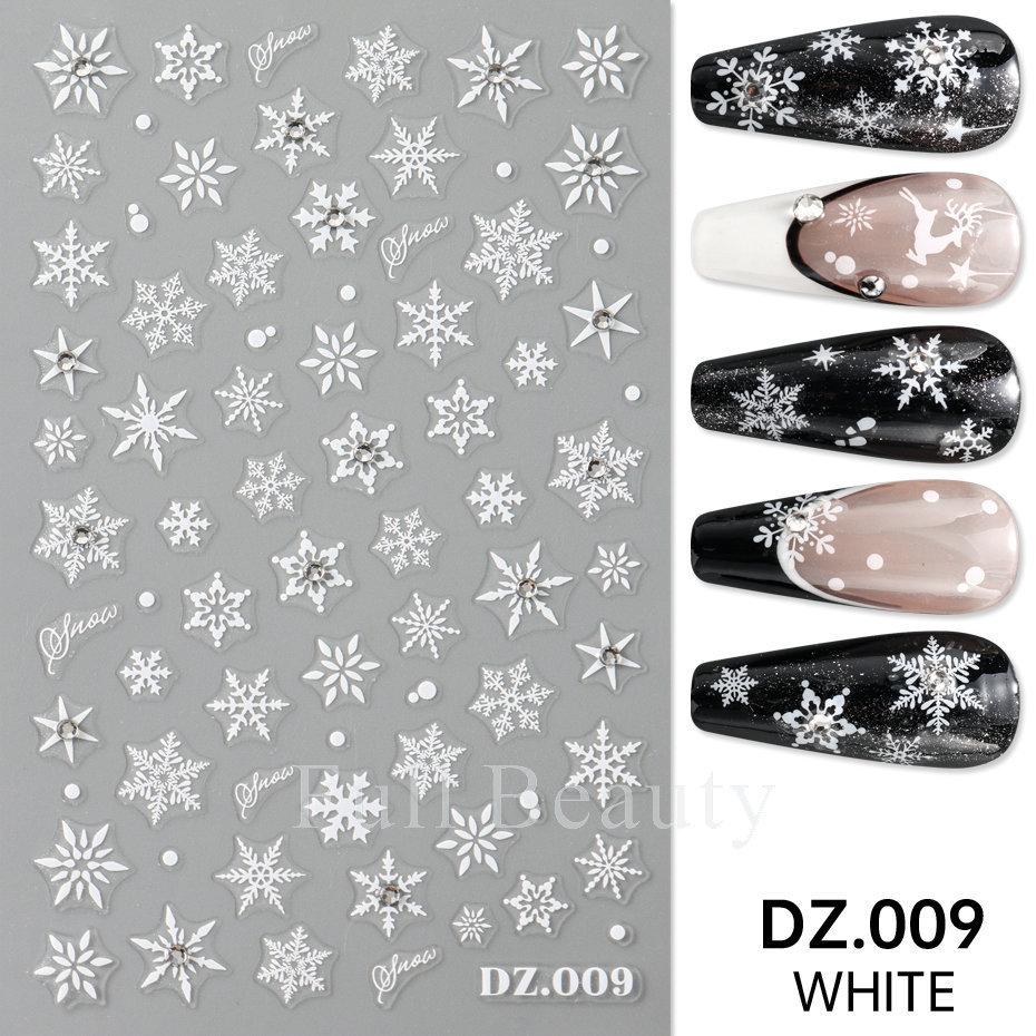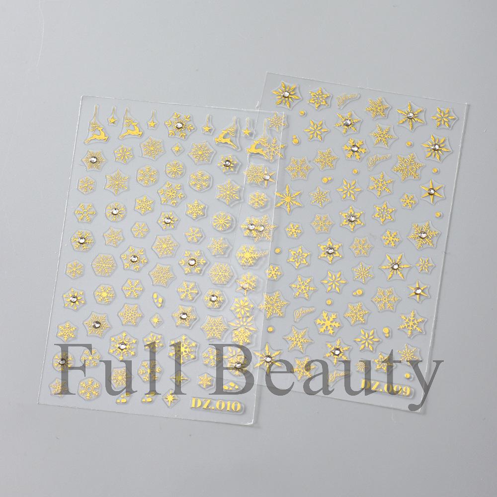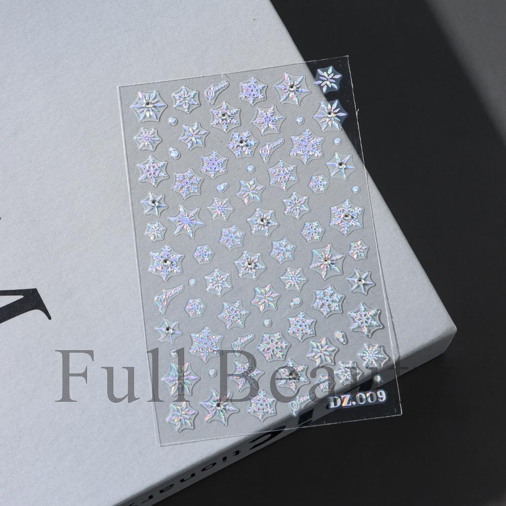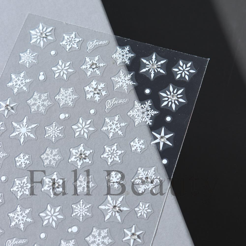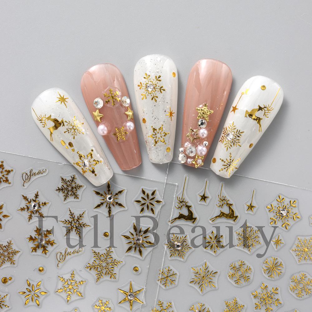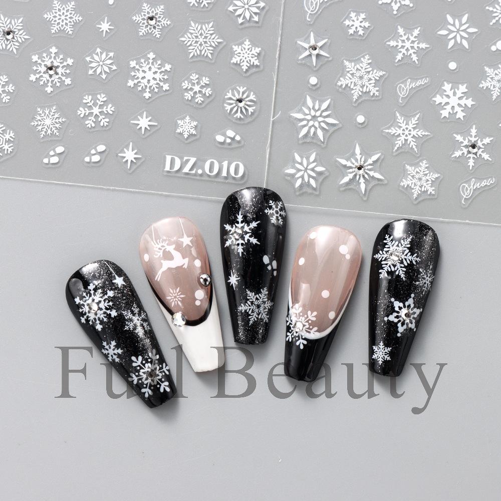 BELLEZA COMPLETA Transfronteriza Nuevas pegatinas para decoración de uñas Navidad Copo de nieve Negro y Blanco Oro Láser Plata Copo de nieve Adhesivos Adhesivos