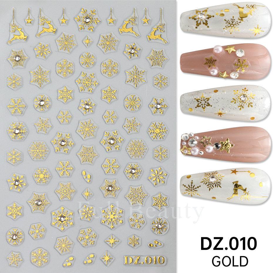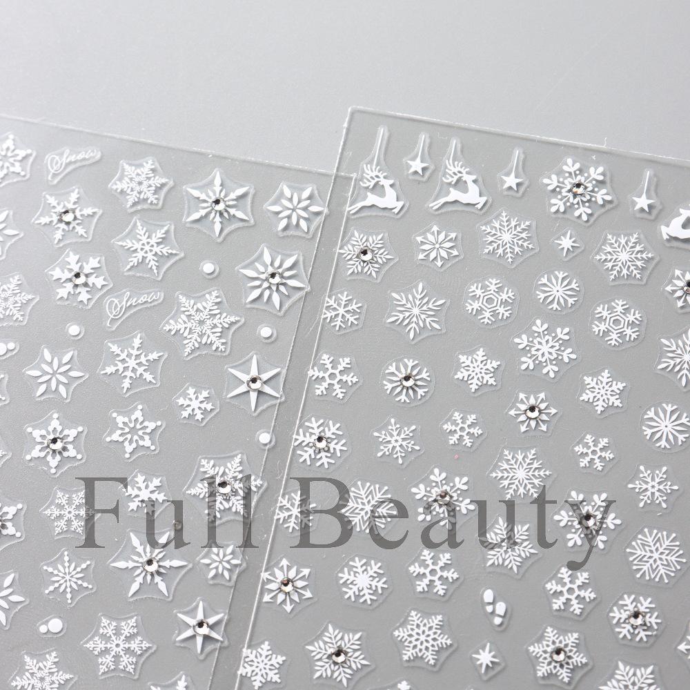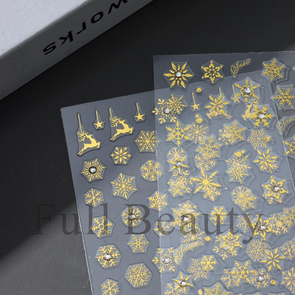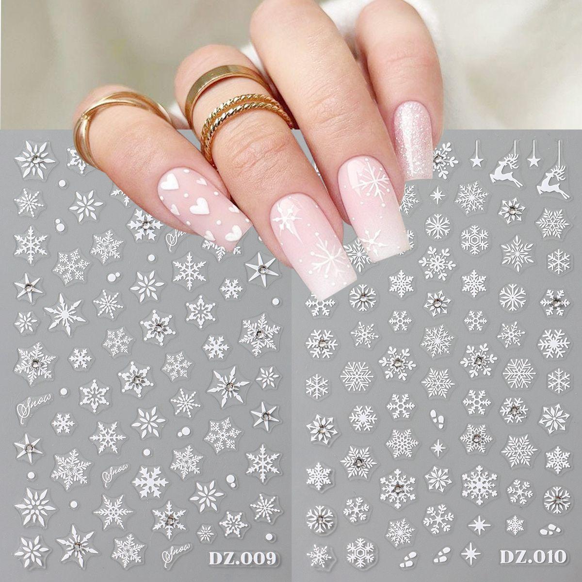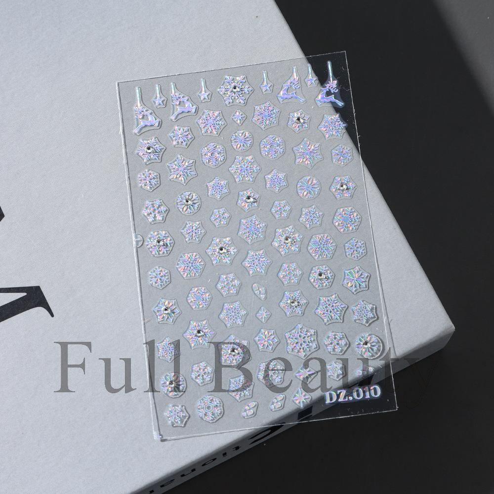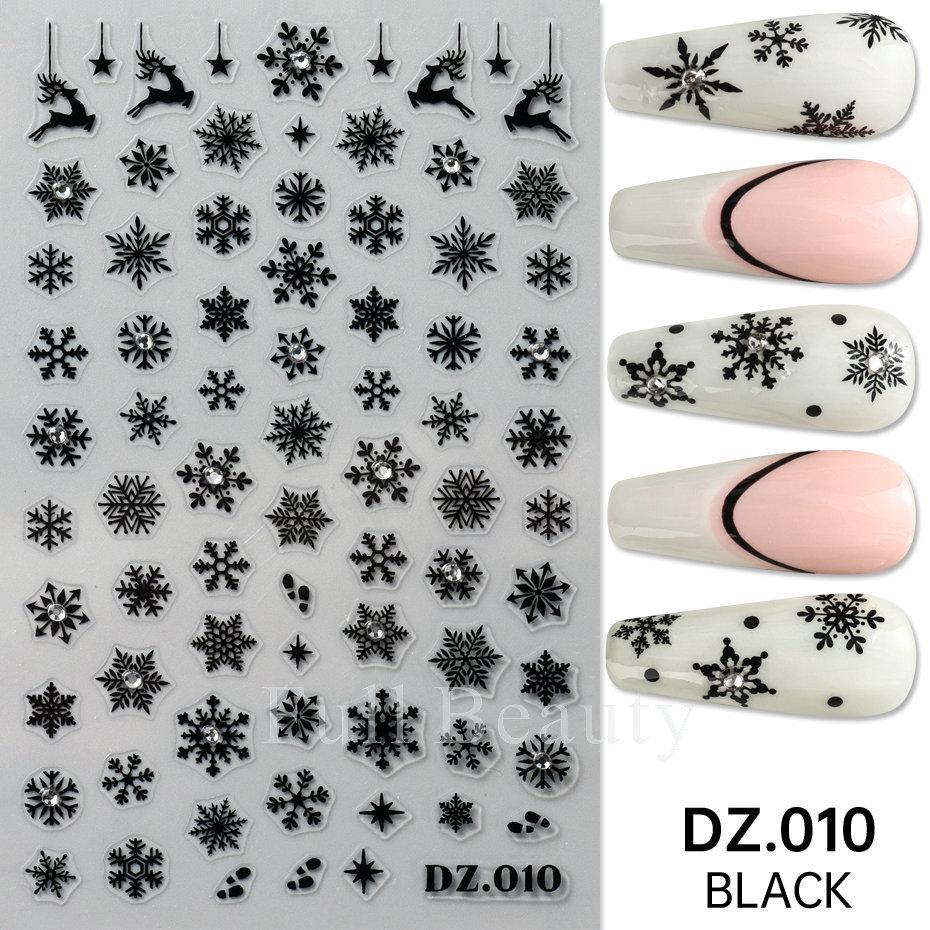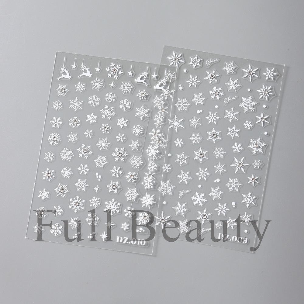 BELLEZA COMPLETA Transfronteriza Nuevas pegatinas para decoración de uñas Navidad Copo de nieve Negro y Blanco Oro Láser Plata Copo de nieve Adhesivos Adhesivos