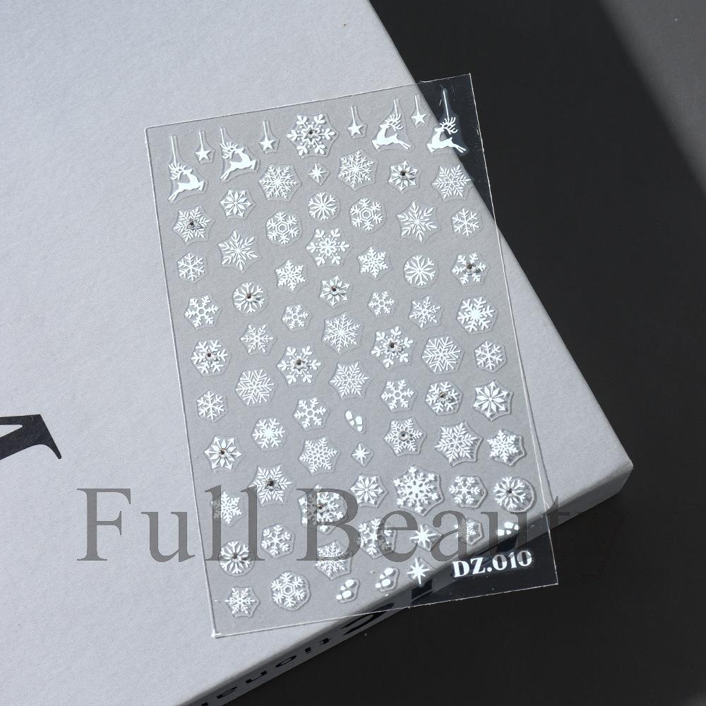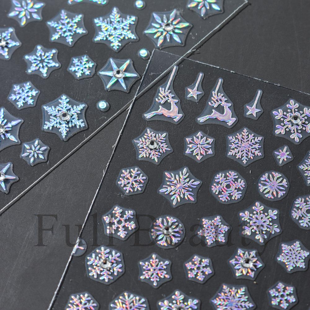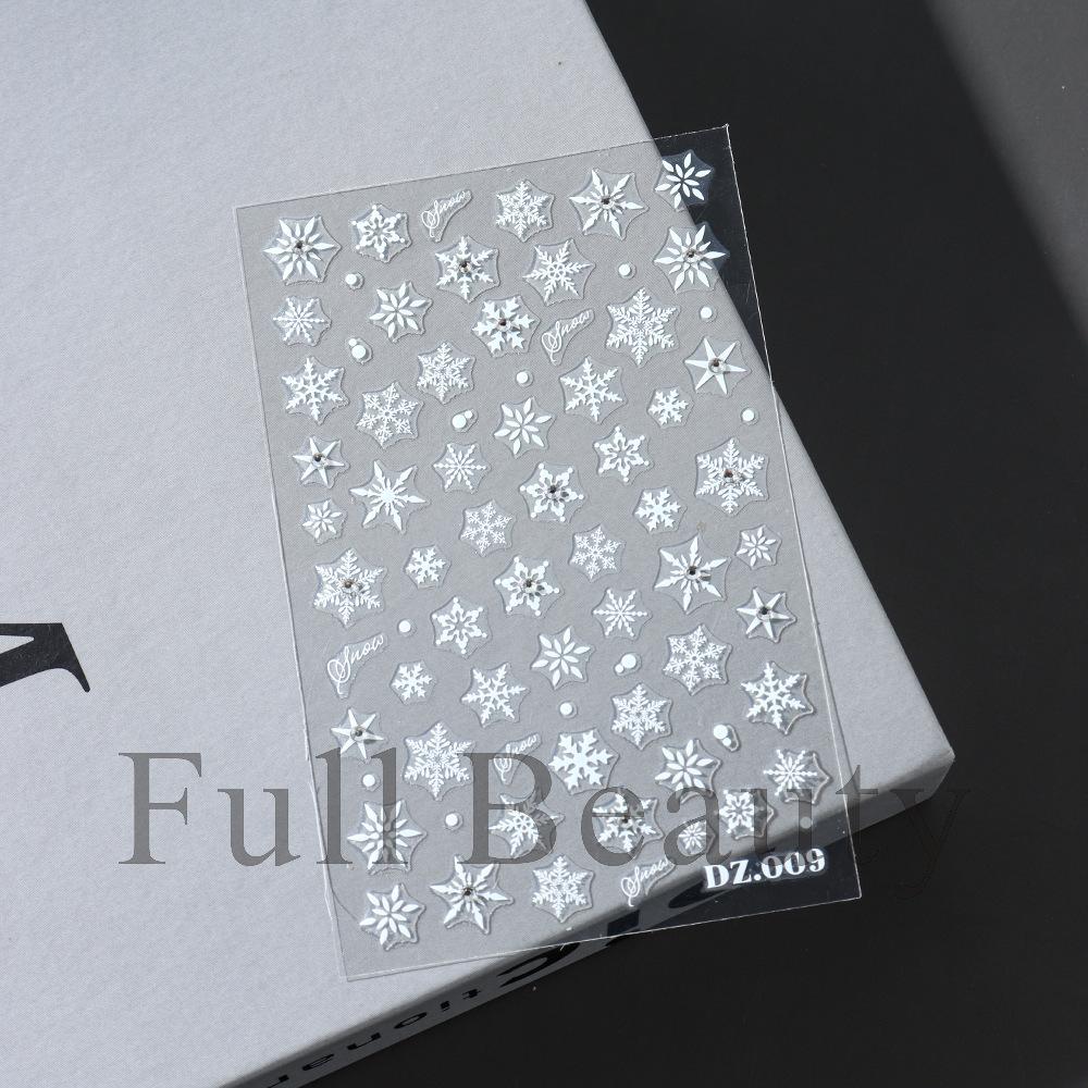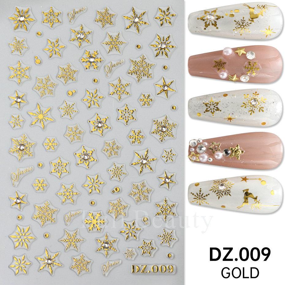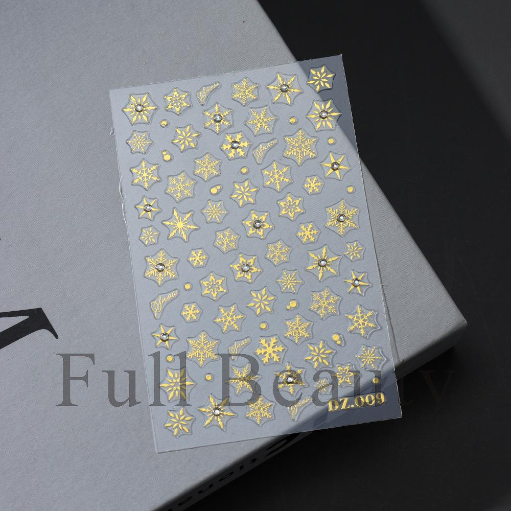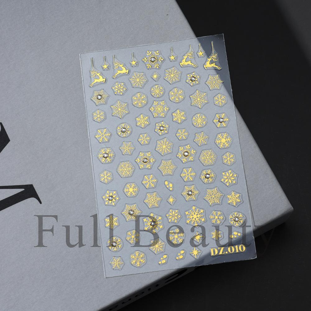 BELLEZA COMPLETA Transfronteriza Nuevas pegatinas para decoración de uñas Navidad Copo de nieve Negro y Blanco Oro Láser Plata Copo de nieve Adhesivos Adhesivos