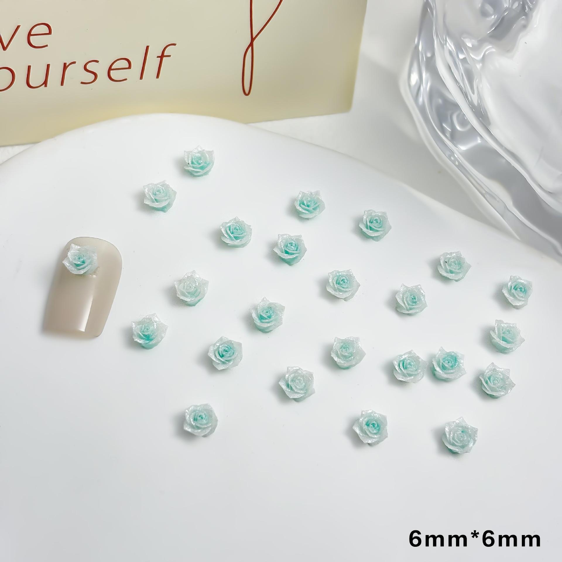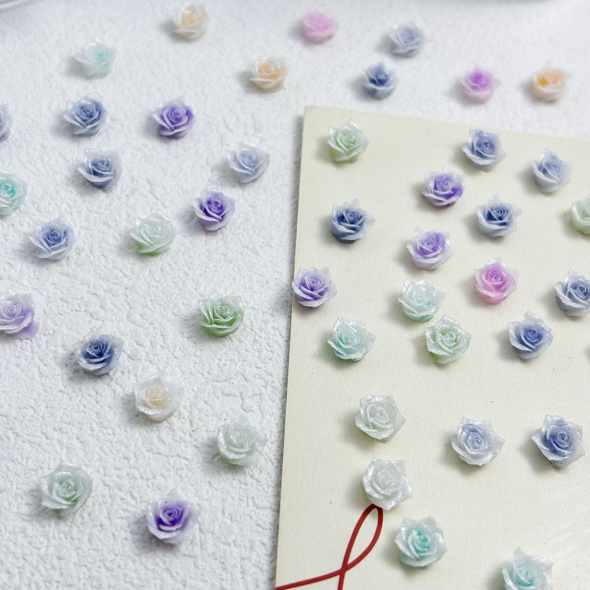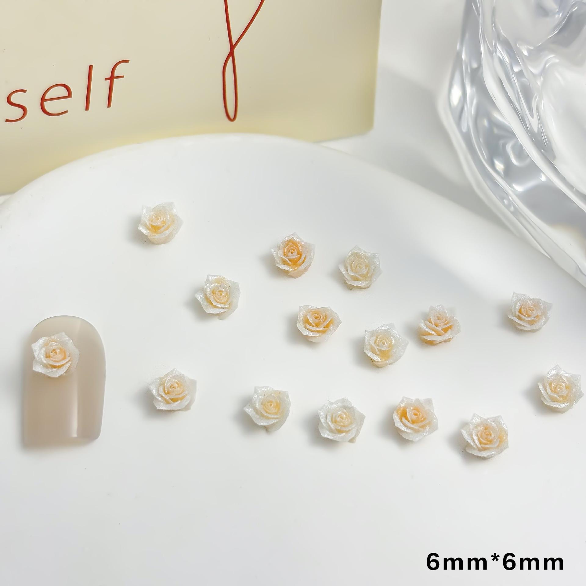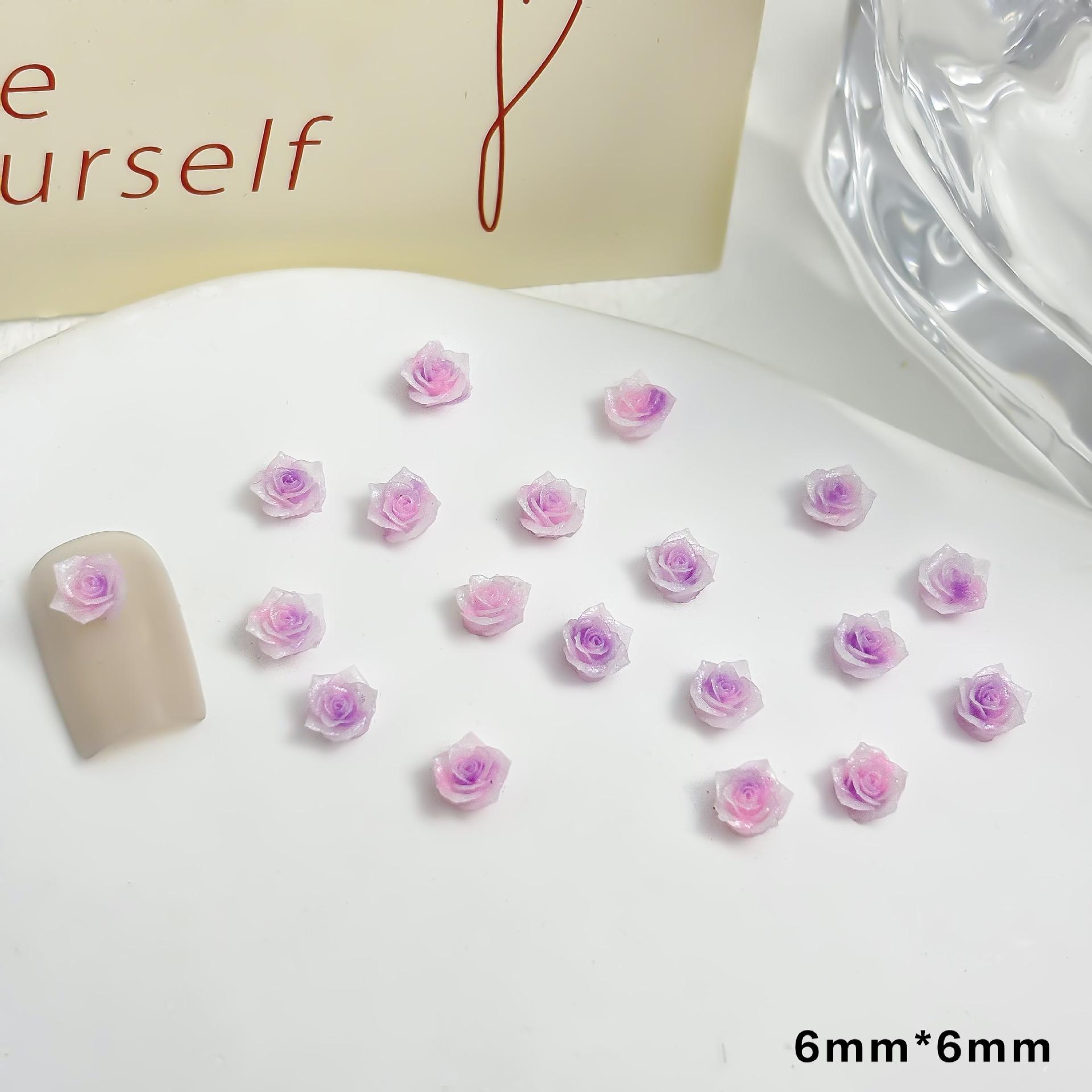 Arte de uñas rosa joyería rosa camelia mixto tridimensional degradado floreciente resina flor uña decoración diamante