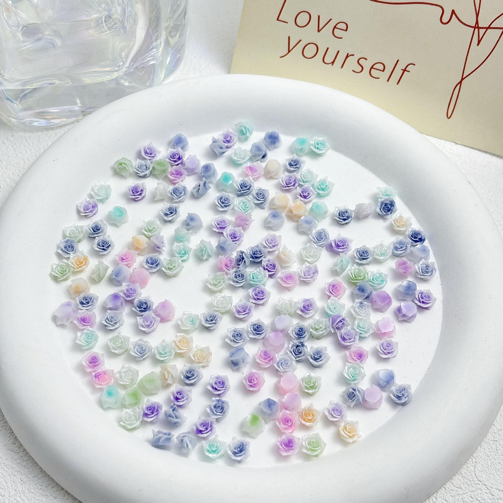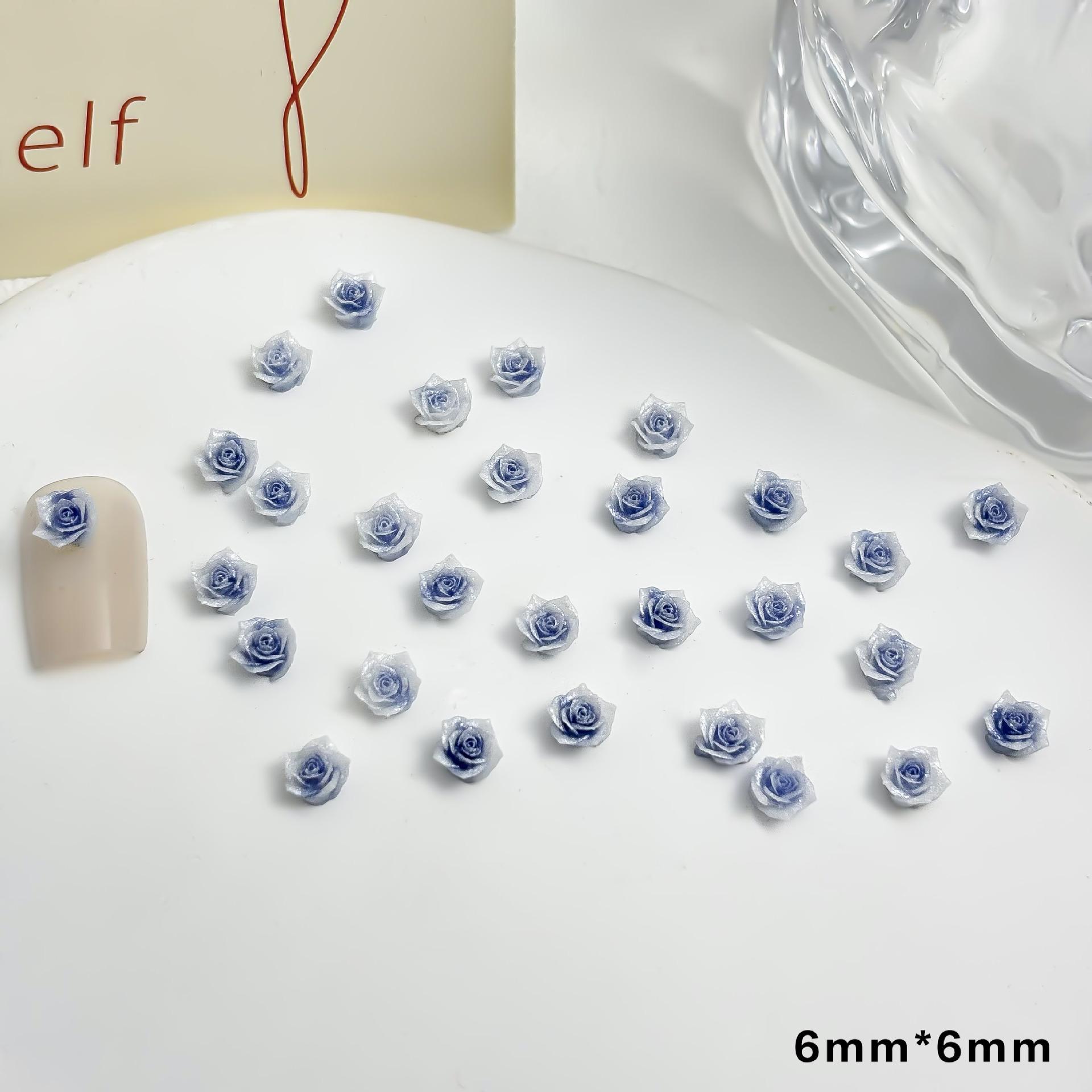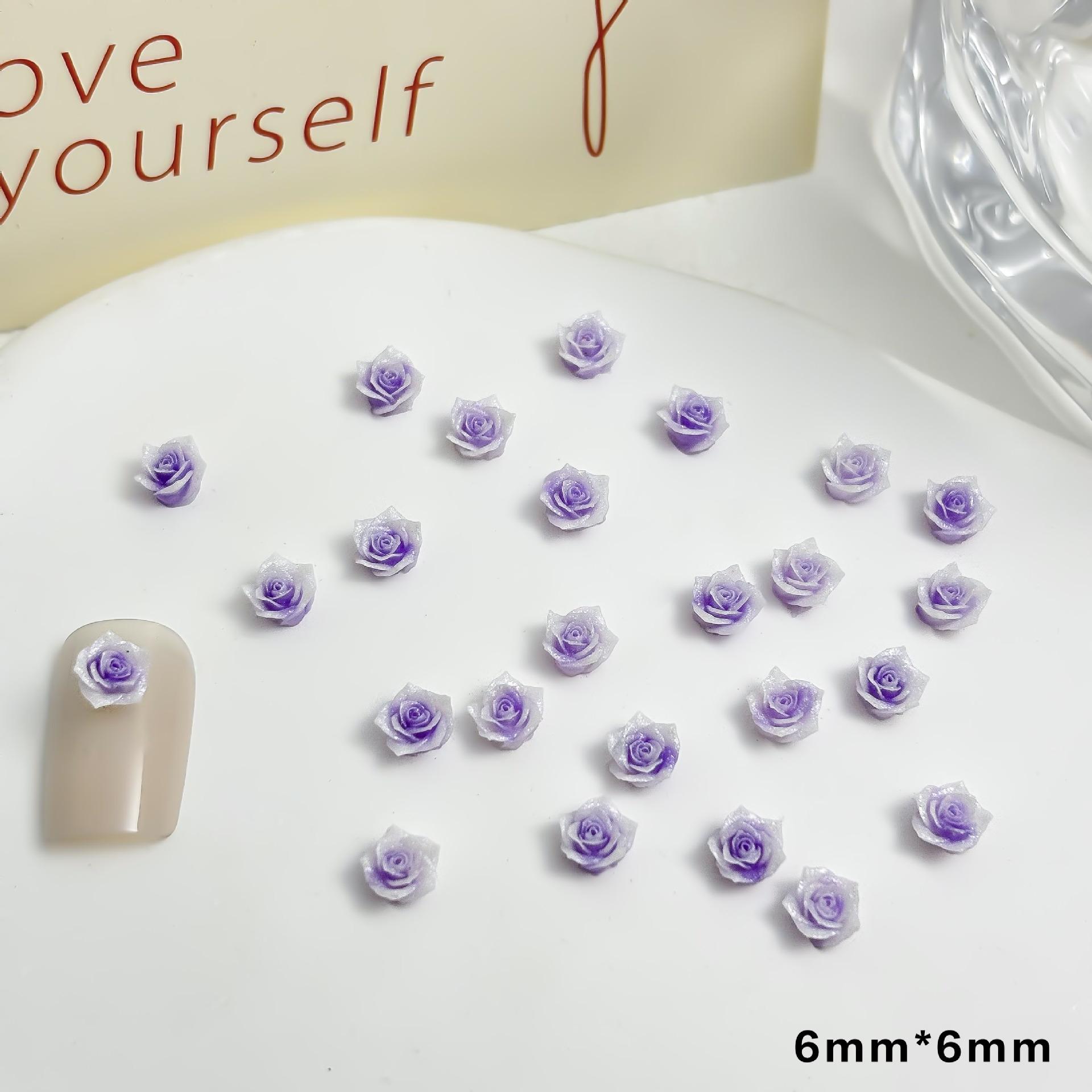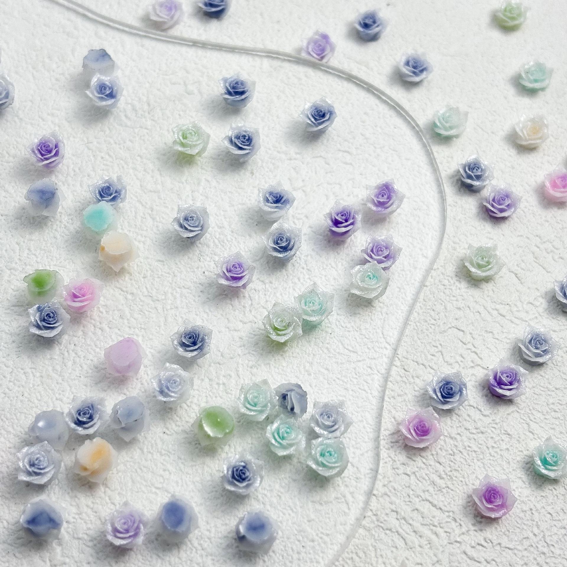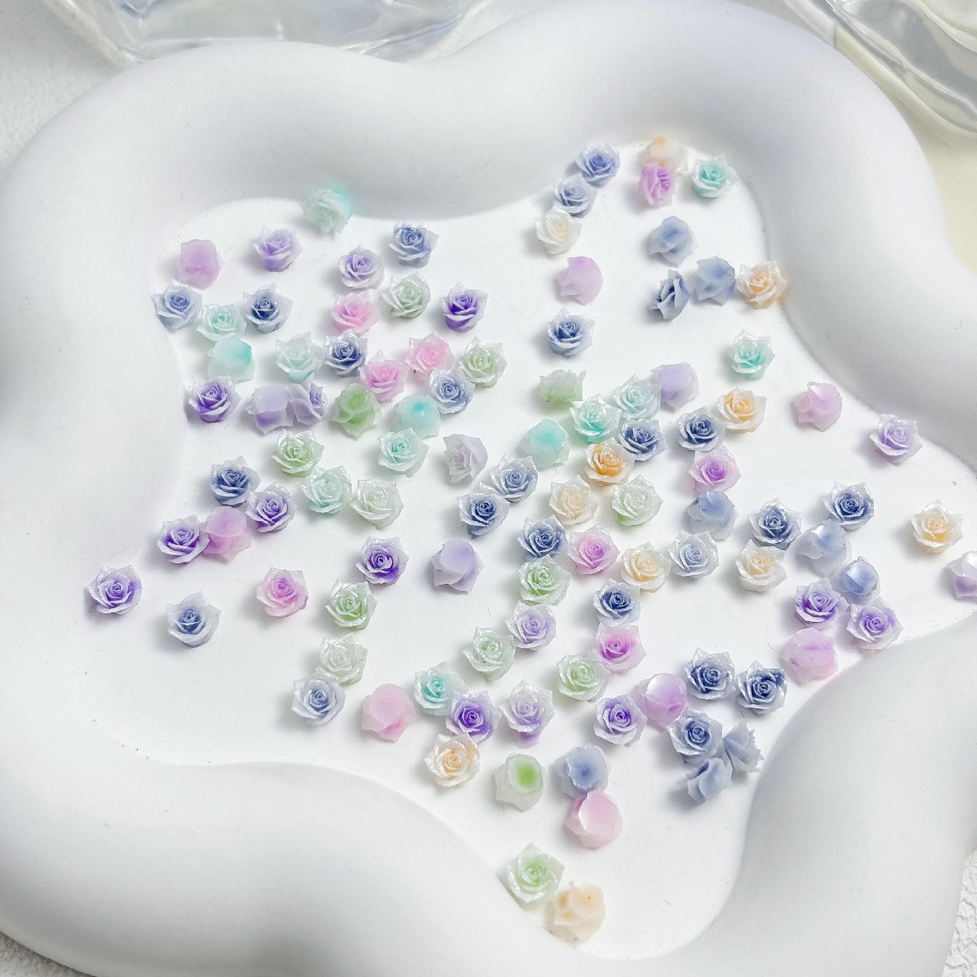 Arte de uñas rosa joyería rosa camelia mixto tridimensional degradado floreciente resina flor uña decoración diamante