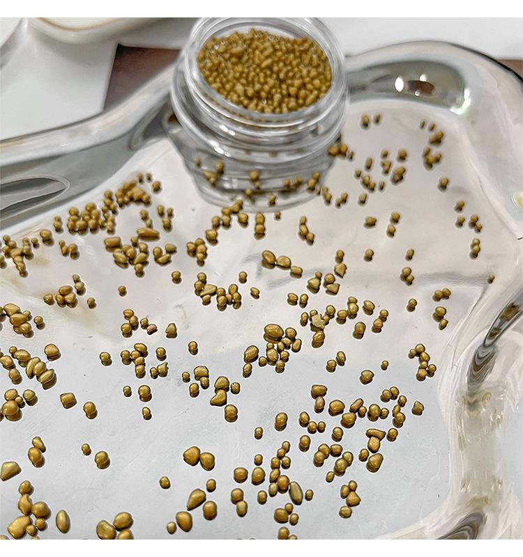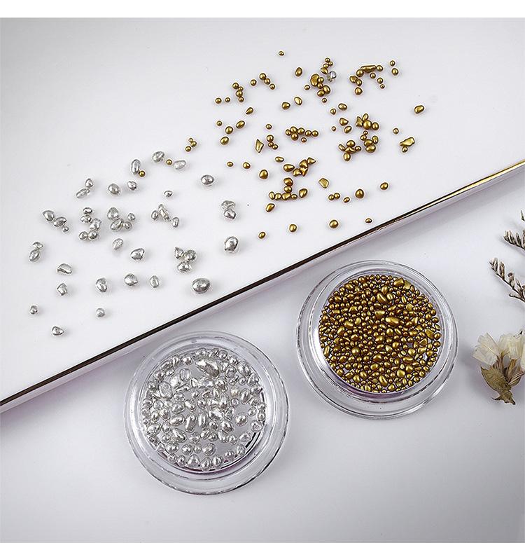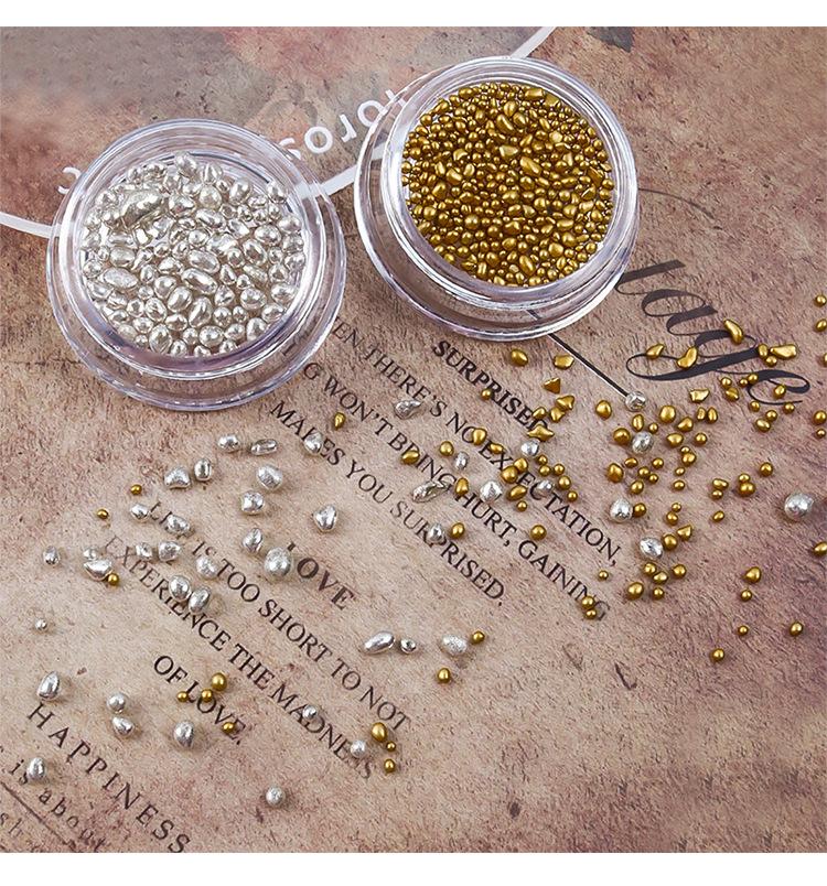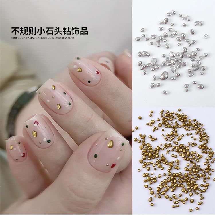 Nueva joyería para uñas con pequeñas piedras chapadas en oro y plata irregulares que resalta la textura reflectante, gorro con cuentas esmeriladas, accesorios de bricolaje