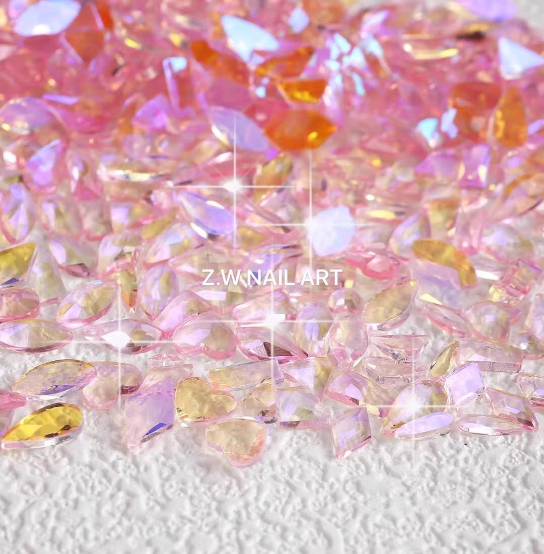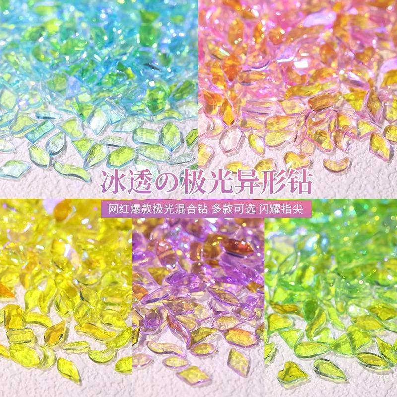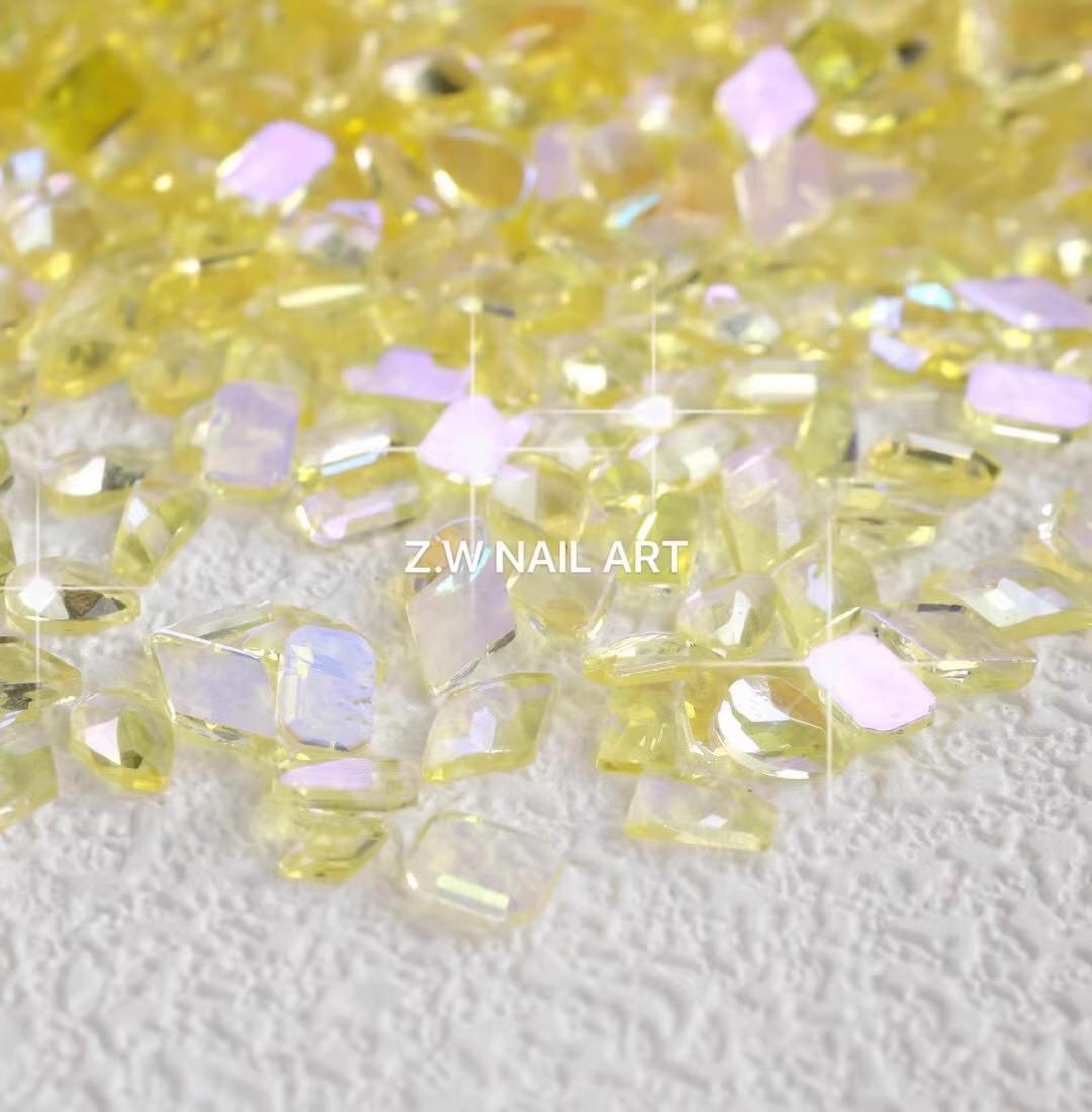 [aurora blue] special-shaped diamonds randomly mixed 100 pieces, [aurora yellow] special-shaped diamonds rando...