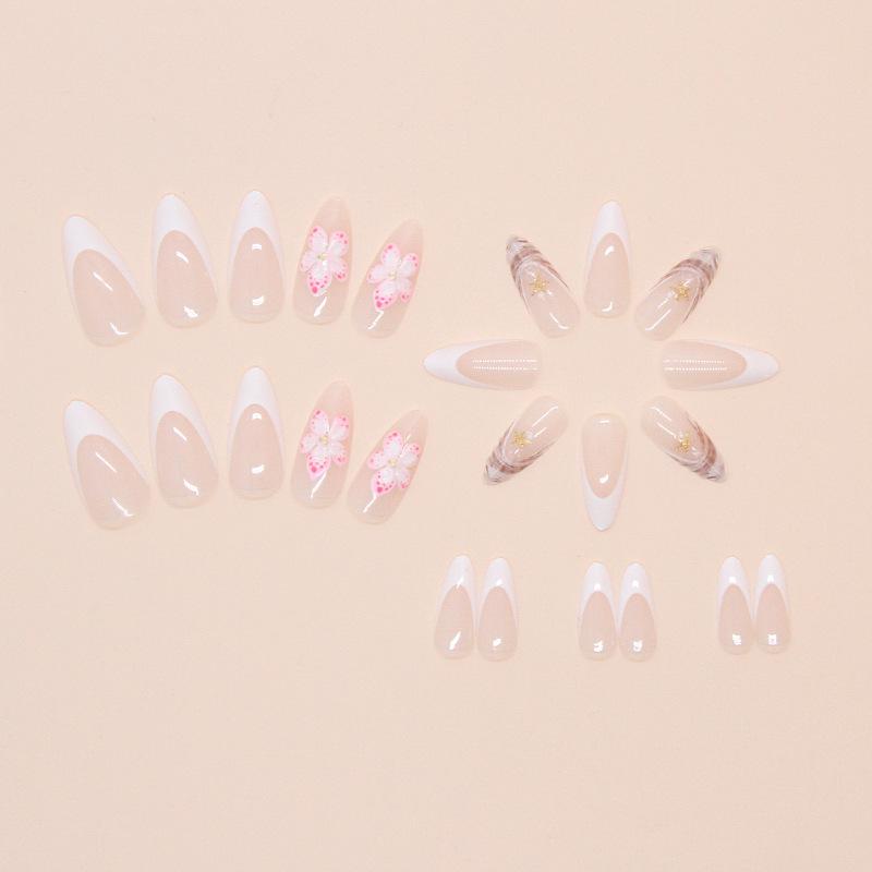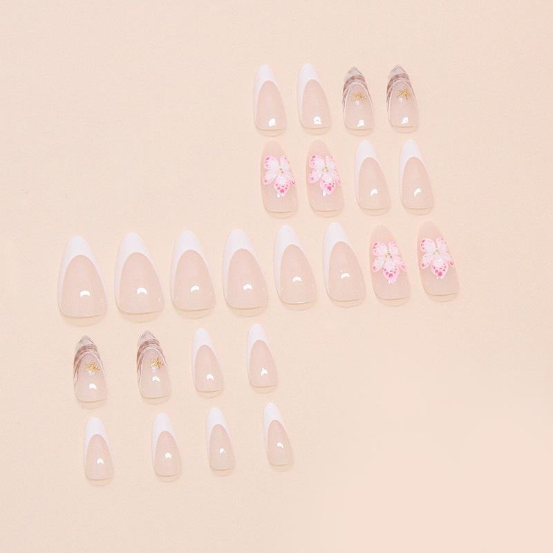 Armadura de Comercio Exterior para Manicura Francesa Simple, Parche de Uñas Postizas Removible, Parche de Uñas de Almendra, 24 Piezas, Venta al por Mayor