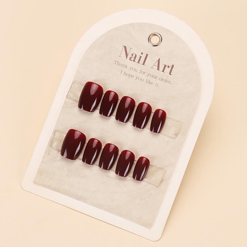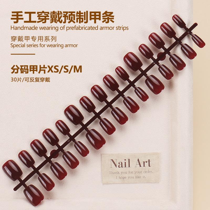 Armadura para llevar en la mano Otoño Invierno Año Nuevo Rojo Vino Desnudo Arte de uñas de alta gama Parche de uña acabado Uña postiza Piezas de uña