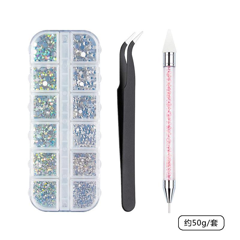 Traje de joyería para decoración de uñas transfronterizas, taladro para decoración de uñas, crayón, pinzas para decoración de uñas, taladro AB para decoración de uñas, taladro de vidrio blanco para decoración de uñas