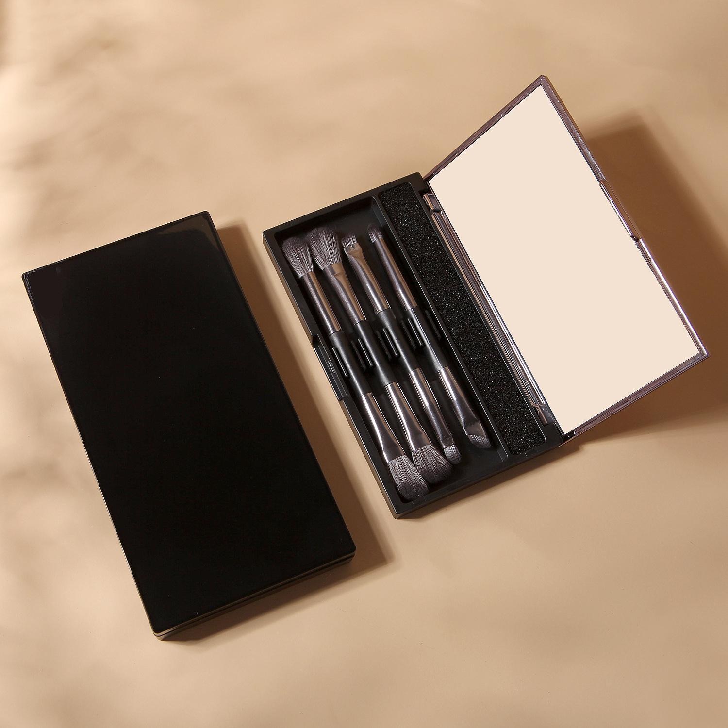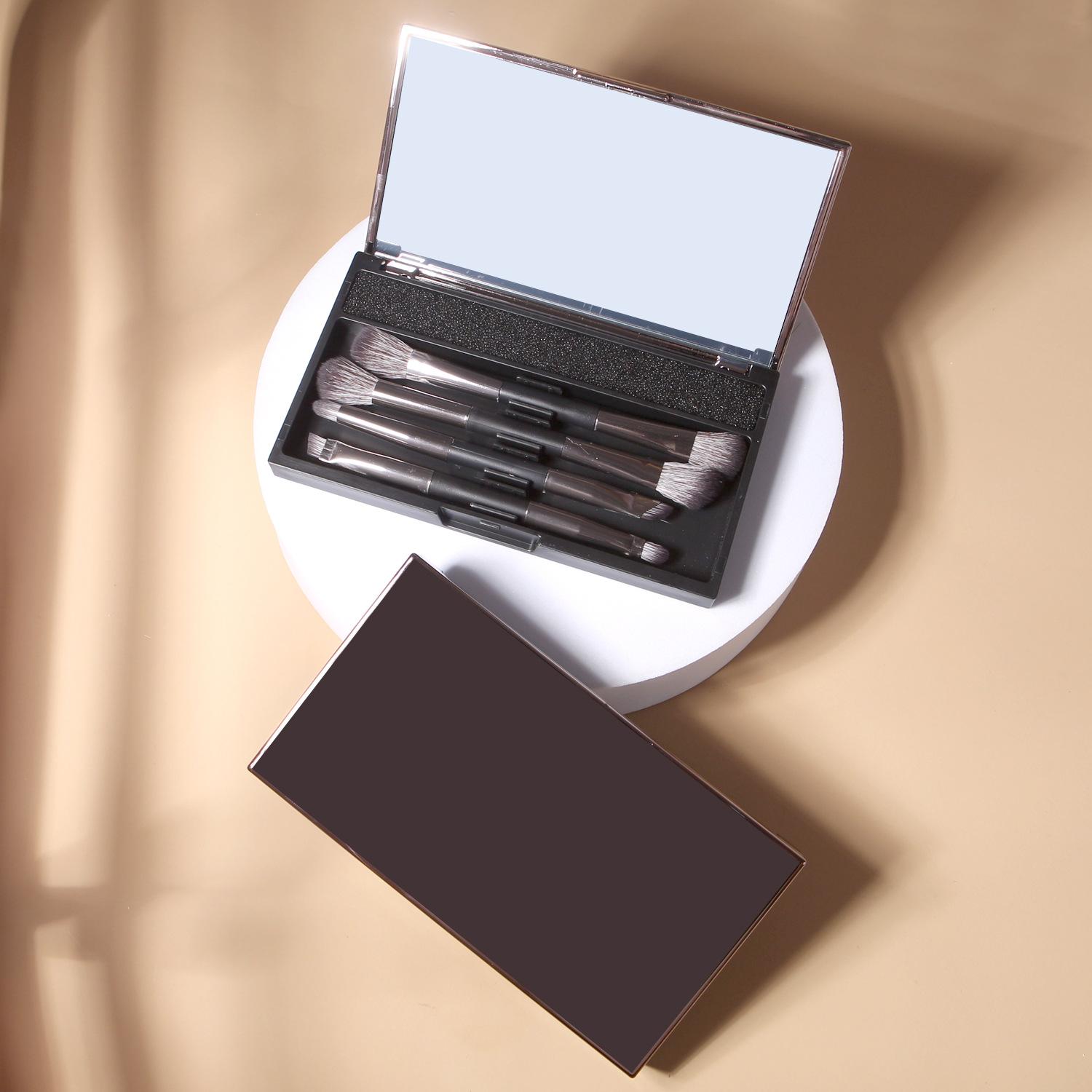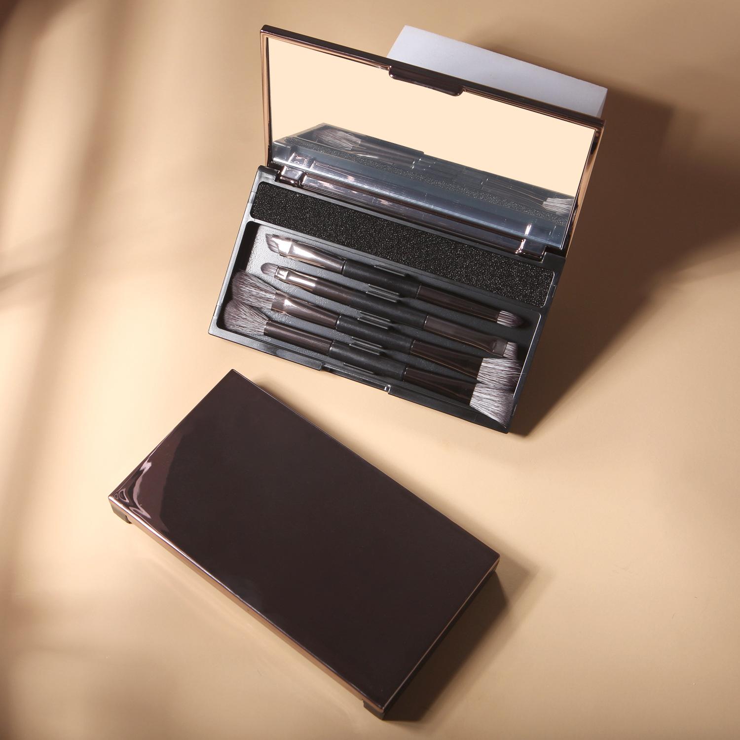 Nuevo juego de 4 pinceles dobles para sombras de ojos, 5 pinceles para ojos con caja de espejo, pincel delineador de ojos portátil, pincel de color de punta, pincel de maquillaje