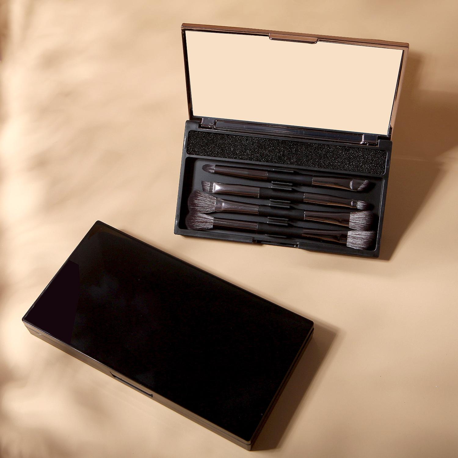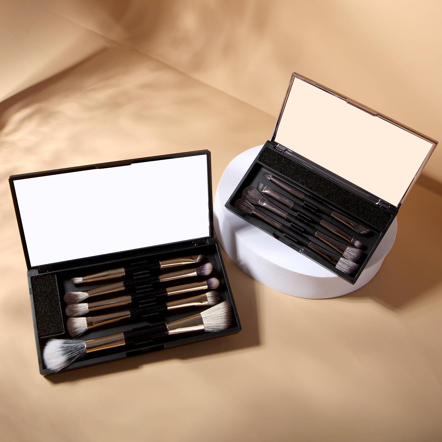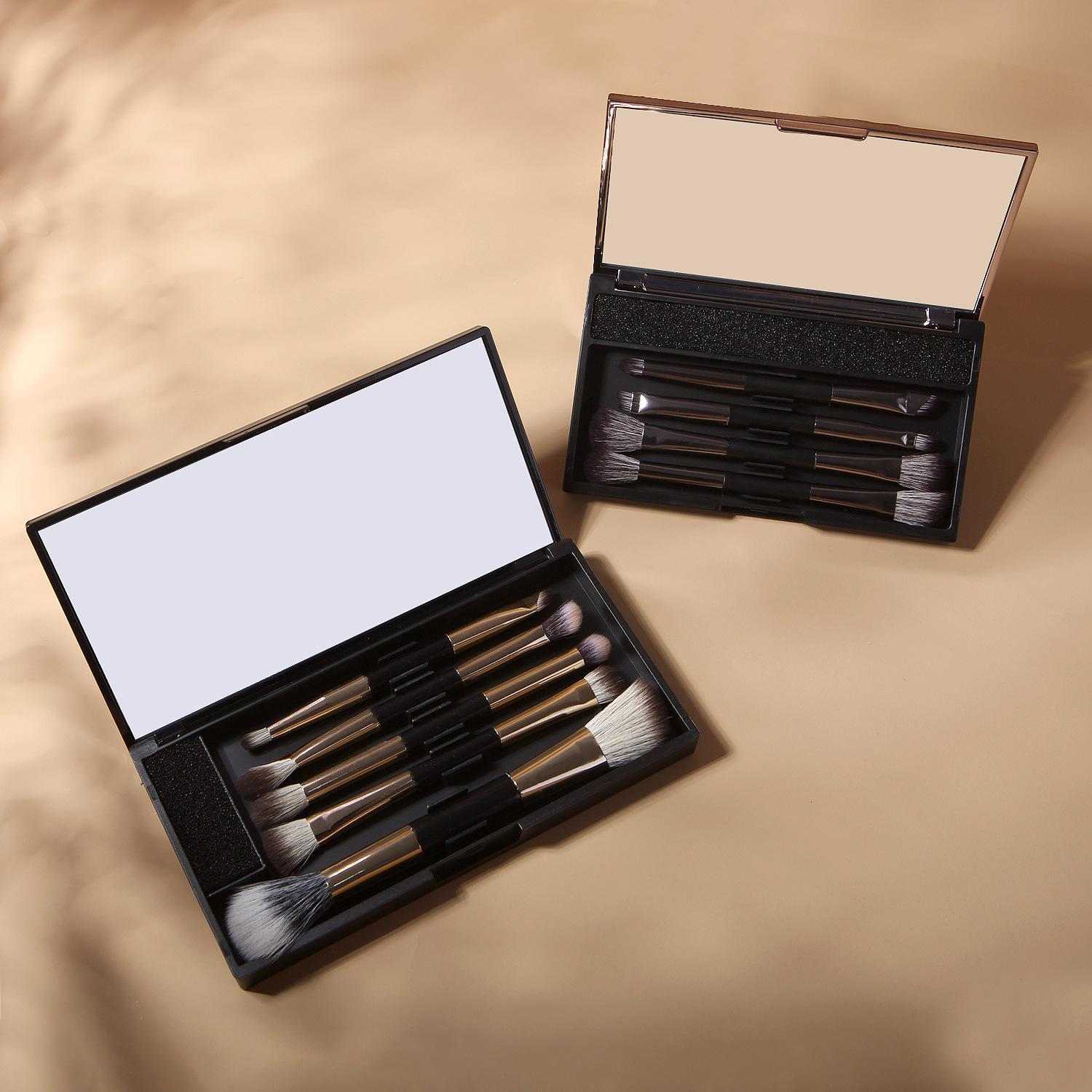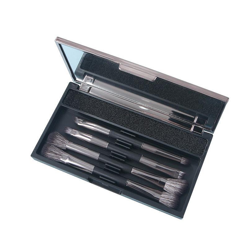 Nuevo juego de 4 pinceles dobles para sombras de ojos, 5 pinceles para ojos con caja de espejo, pincel delineador de ojos portátil, pincel de color de punta, pincel de maquillaje