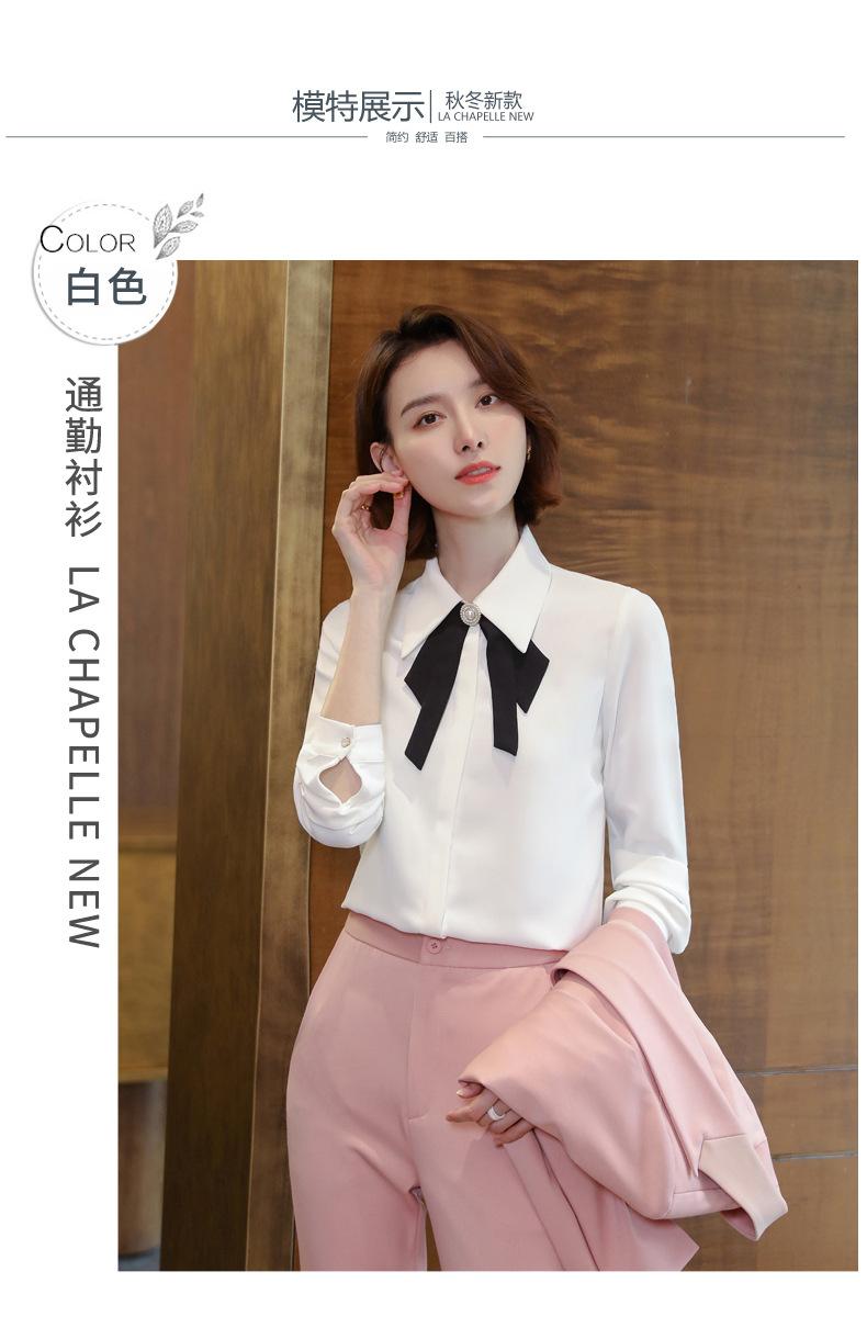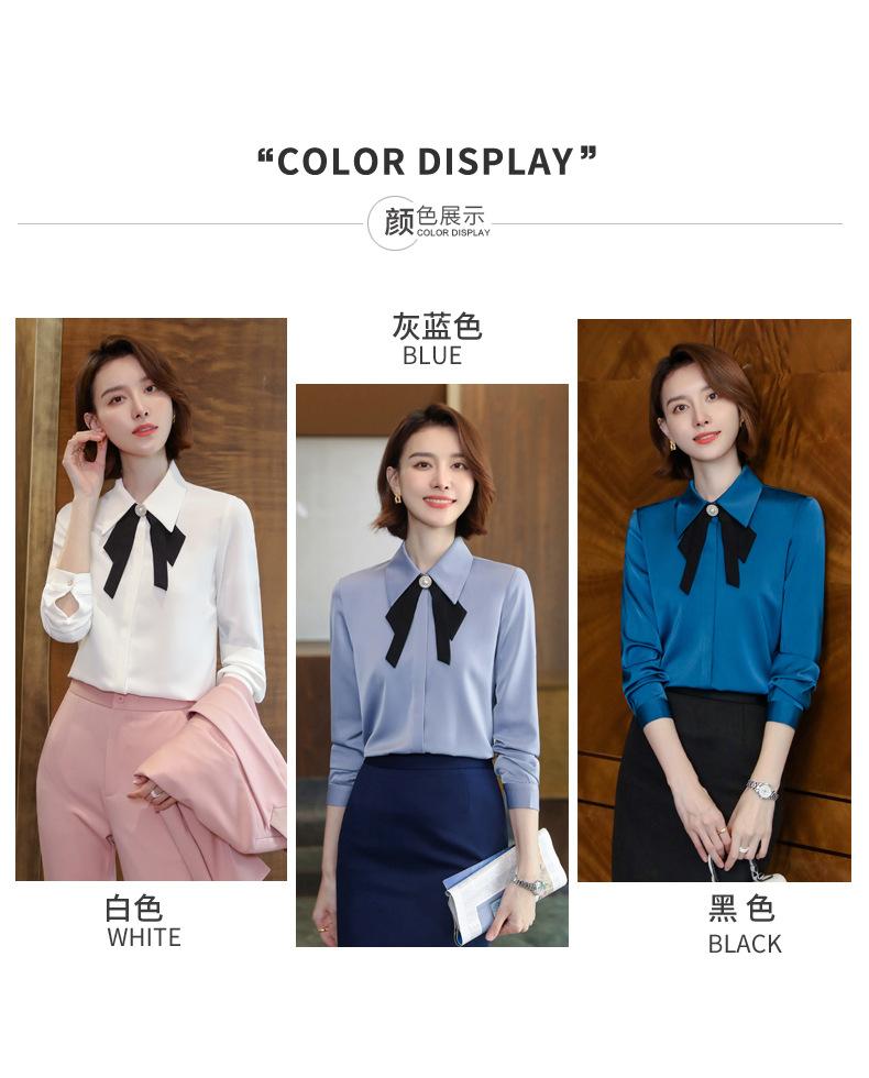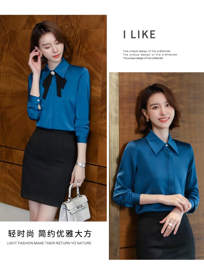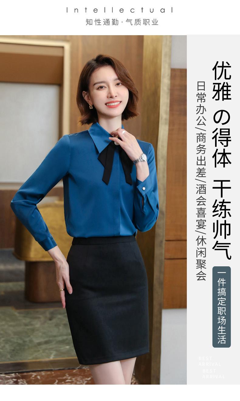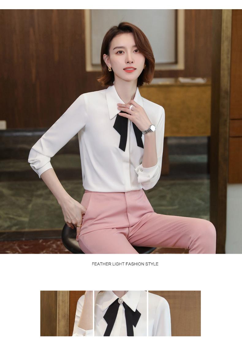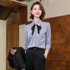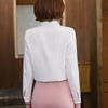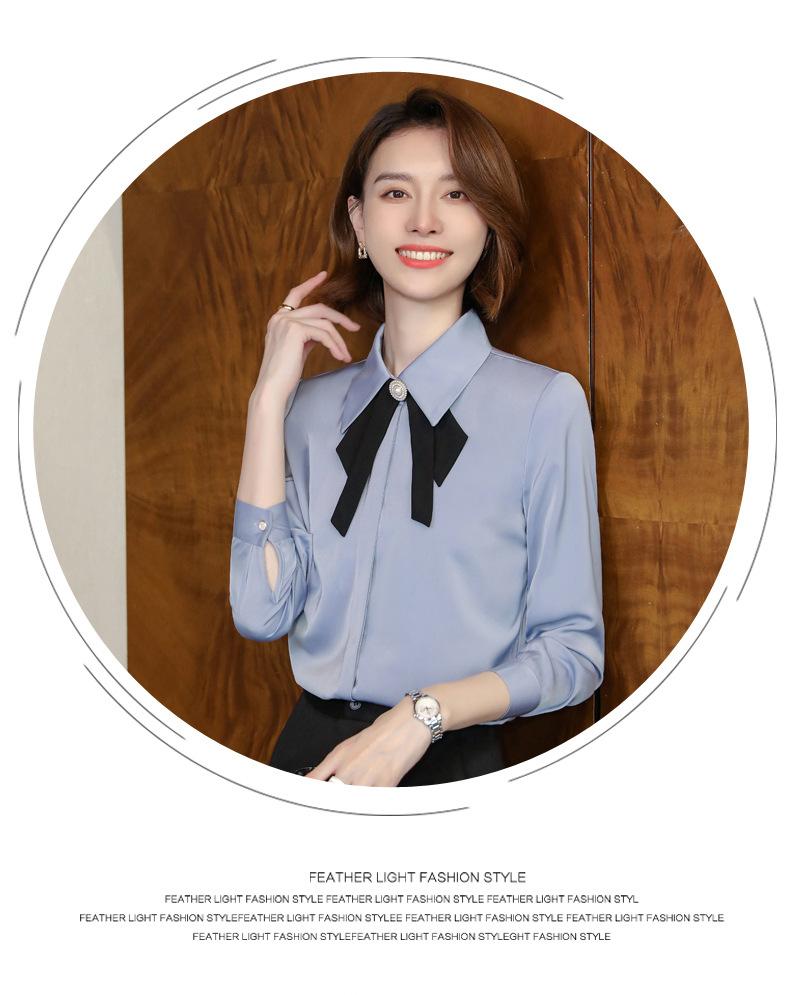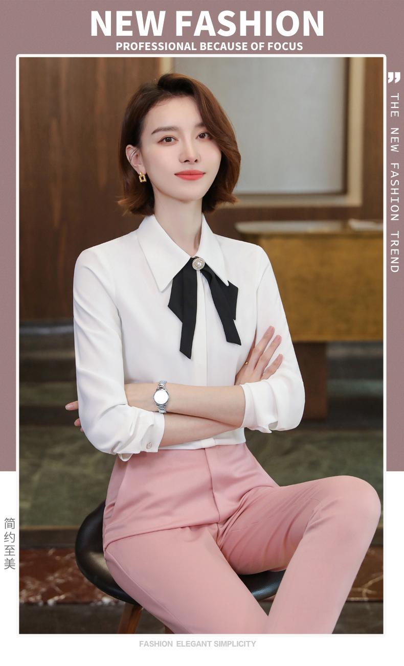 Camisa de manga larga de primavera para mujer, elegante, con cuello puntiagudo y lazo, con textura francesa, para desplazamientos profesionales.