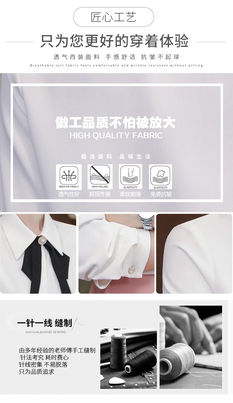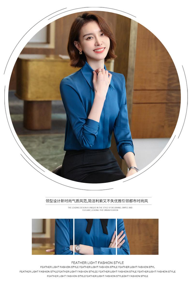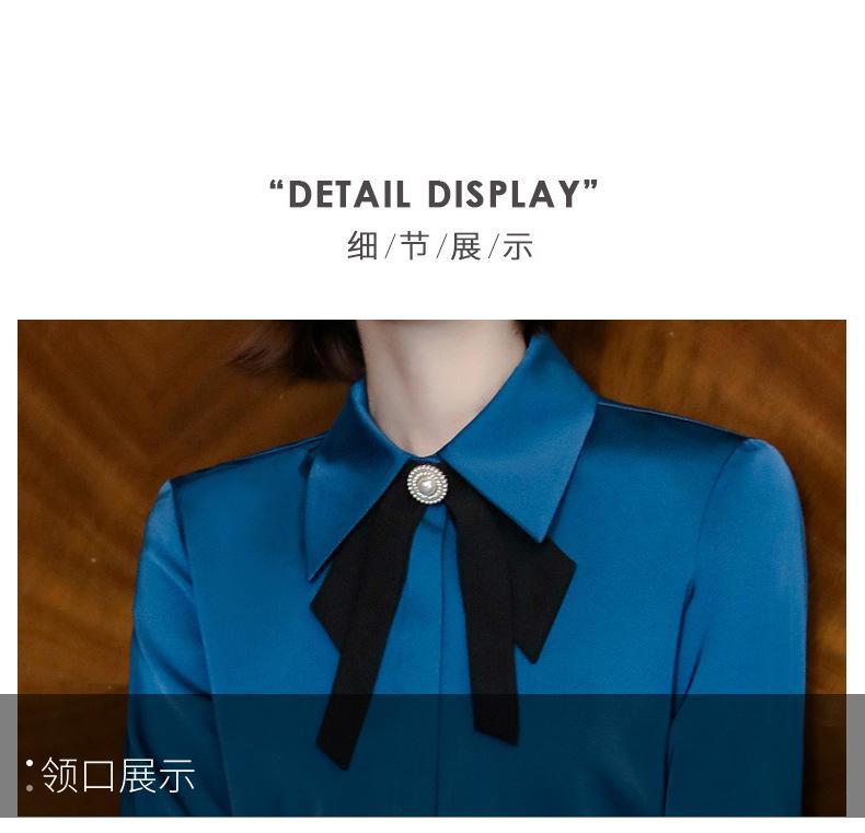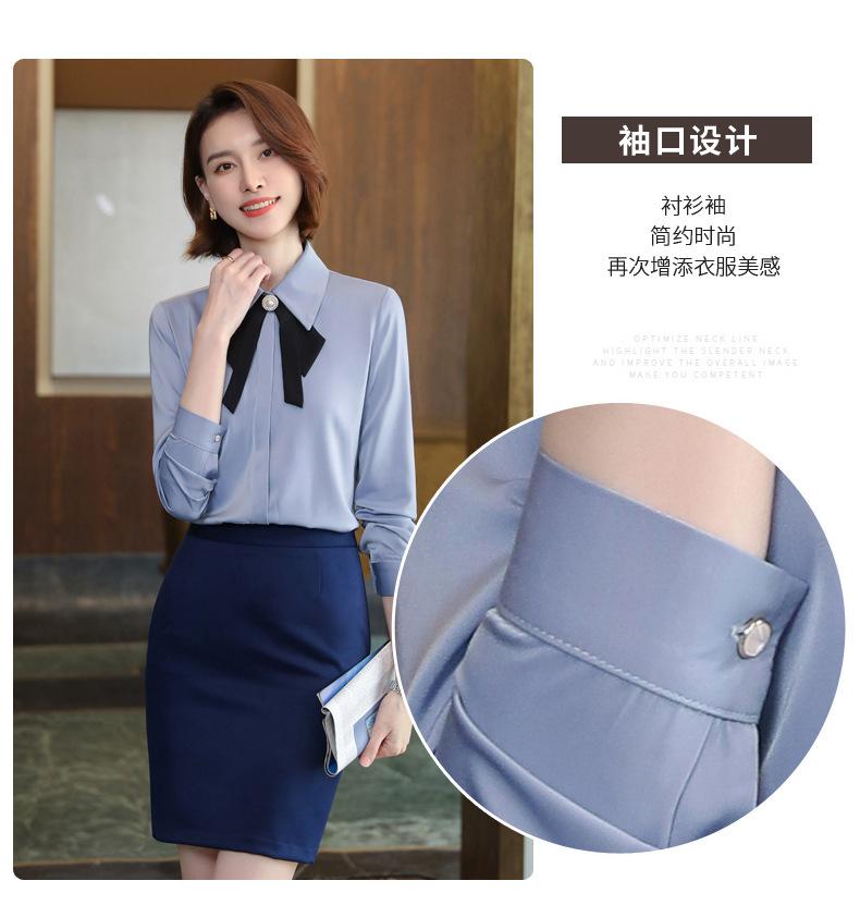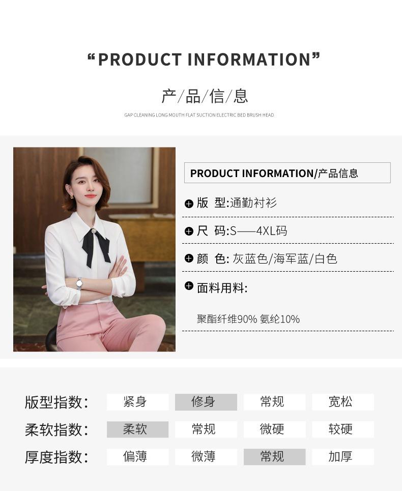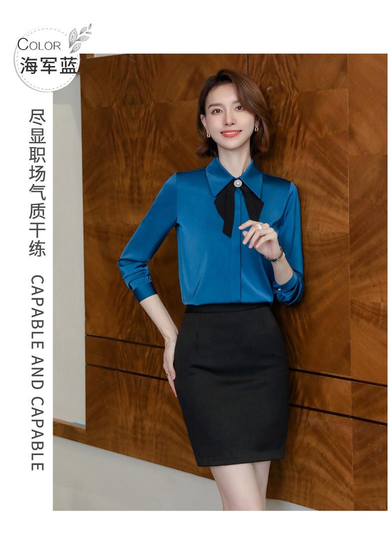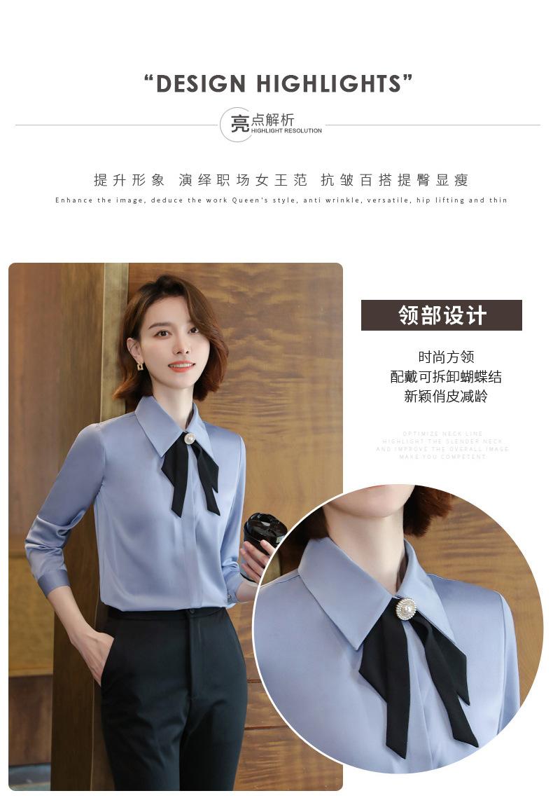Camisa de manga larga de primavera para mujer, elegante, con cuello puntiagudo y lazo, con textura francesa, para desplazamientos profesionales.