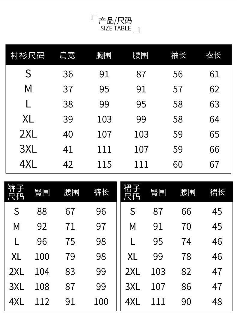 S, M, L, XL, 2XL, 3XL, 4XL
