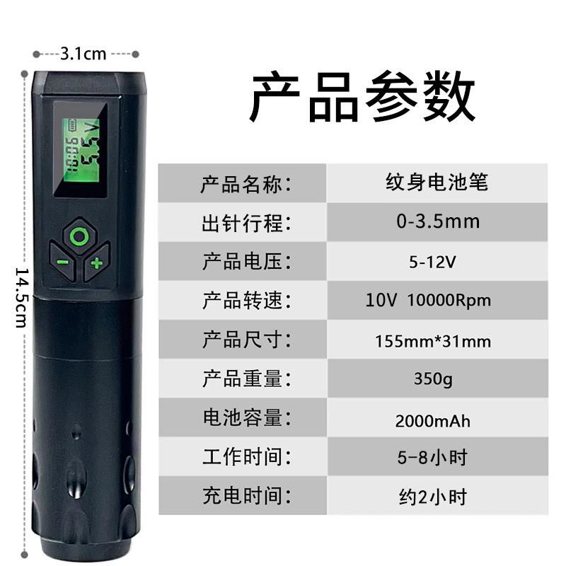 Bolígrafo inalámbrico con batería integrada para tatuajes, bolígrafo con motor RCA, máquina de tatuaje con pantalla LED digital y carga, bolígrafo con batería