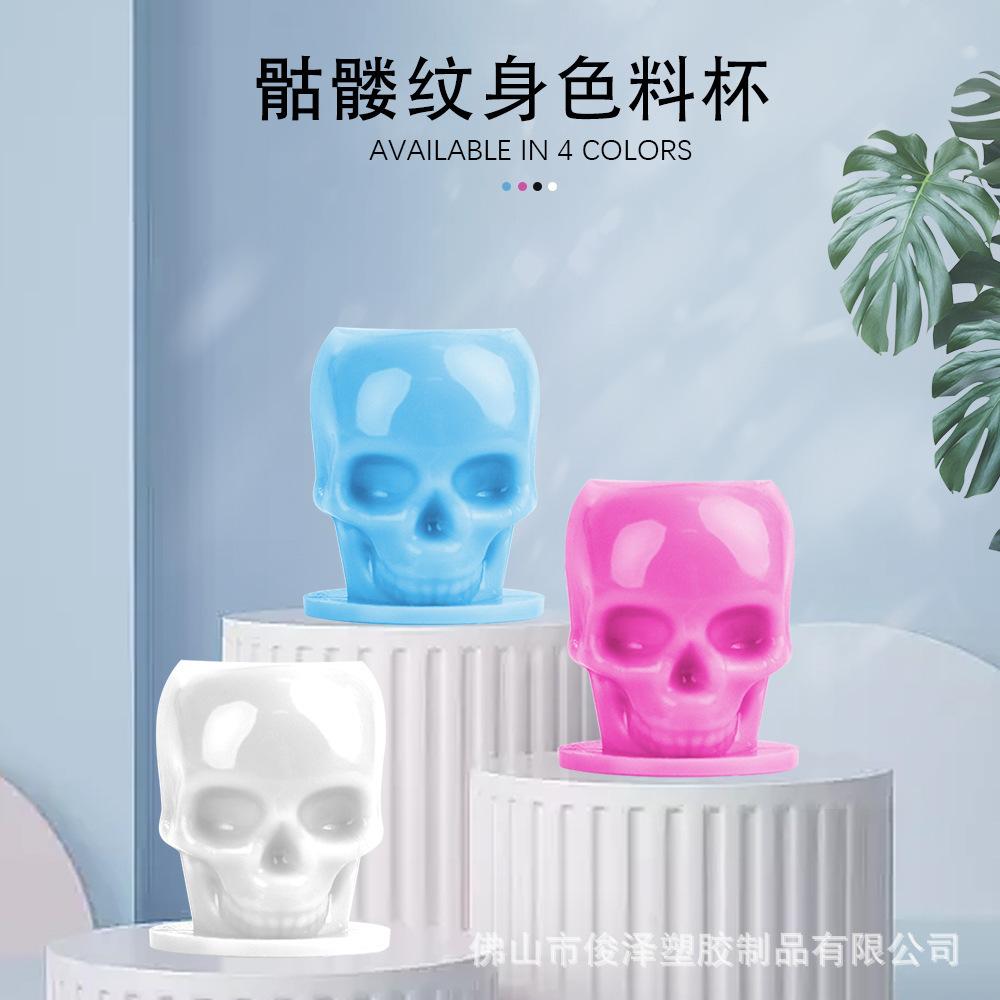 Vaso desechable para tinta de tatuaje con forma de calavera, recipiente para pigmento de maquillaje permanente, vaso rosa para tatuaje, accesorios para tatuajes transfronterizos