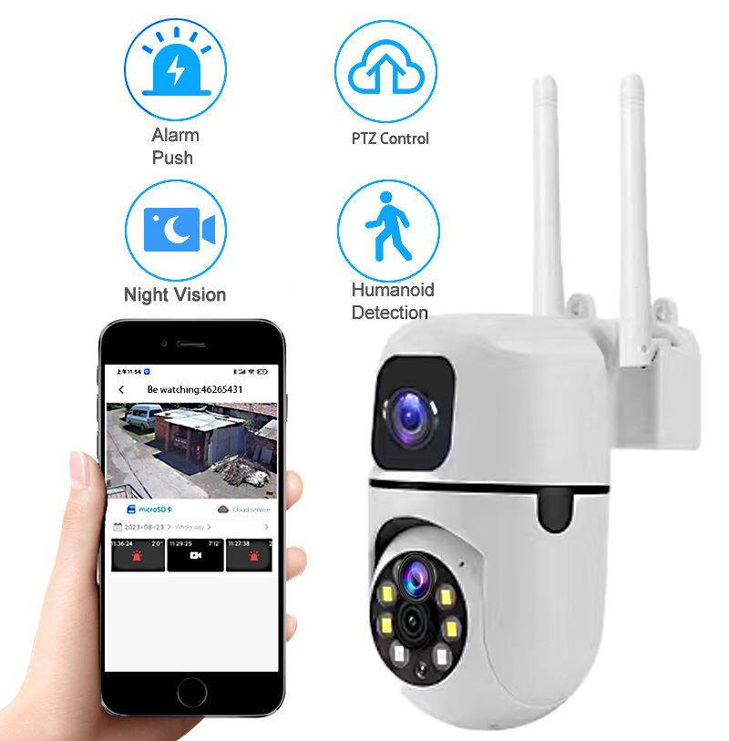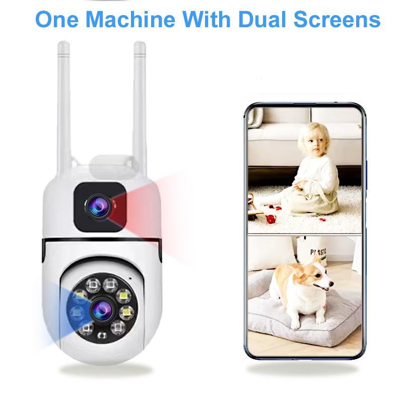 Cámara de interior con pantalla dual para monitoreo, inalámbrica, wifi, portalámparas, bombilla HD, tipo teléfono móvil, monitor remoto
