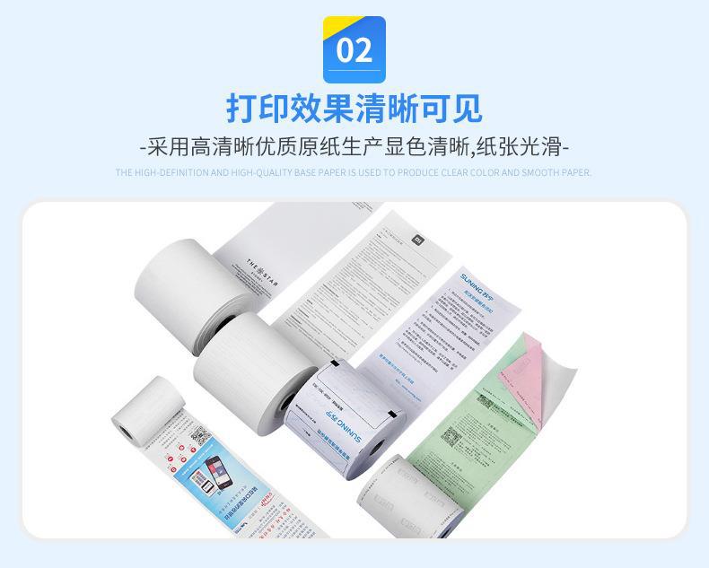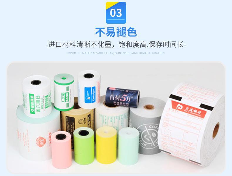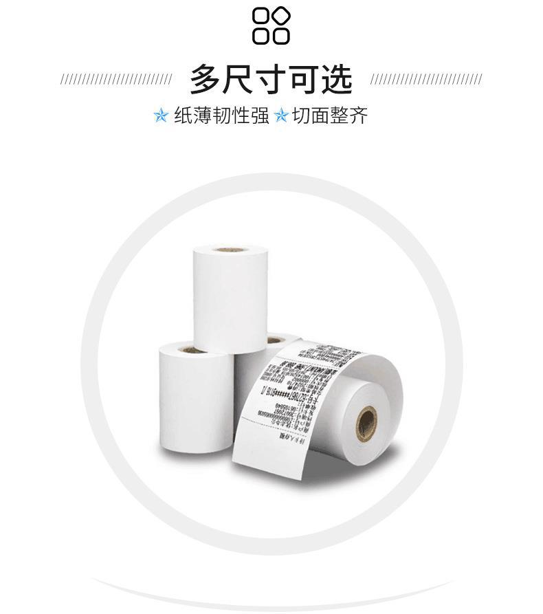 57*30(100 rolls/box), 57*40(100 rolls/box), 57*50 (100 rolls/box)