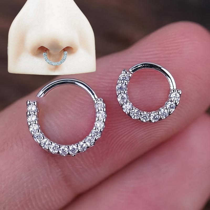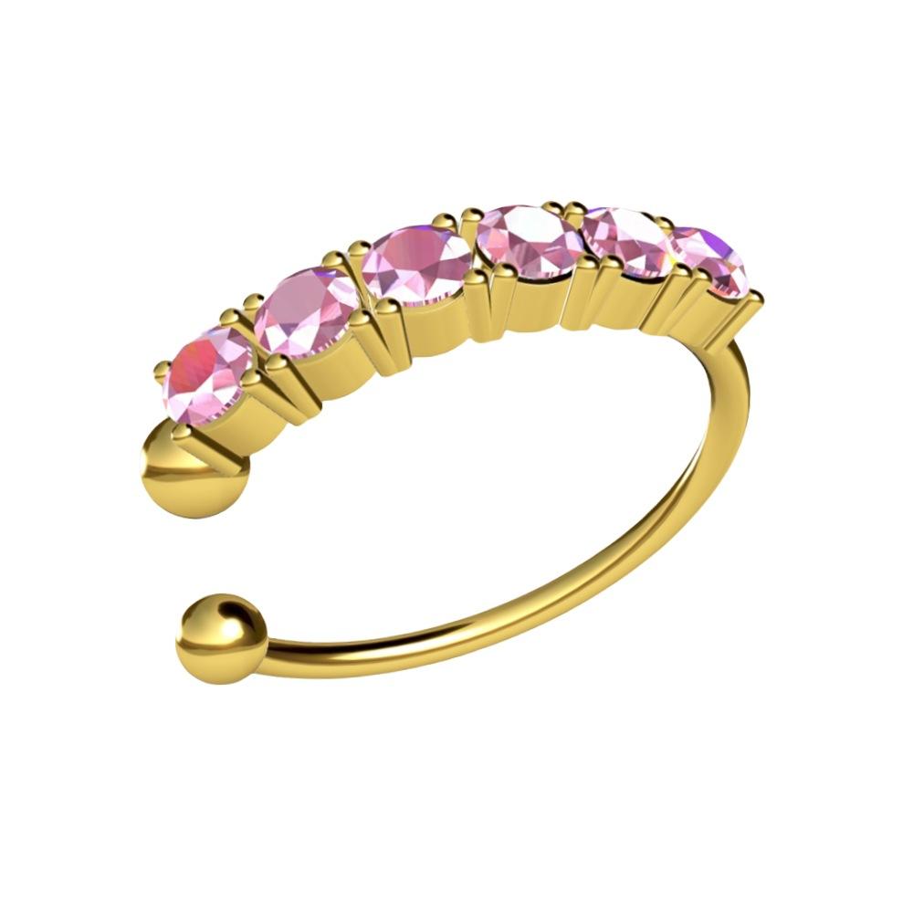 Anillo abierto exquisito de fila única de circonitas mini de oro real europeo y americano súper brillante taladro fino piercing para el cuerpo humano anillo para la nariz clip