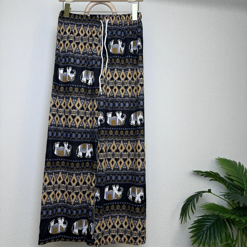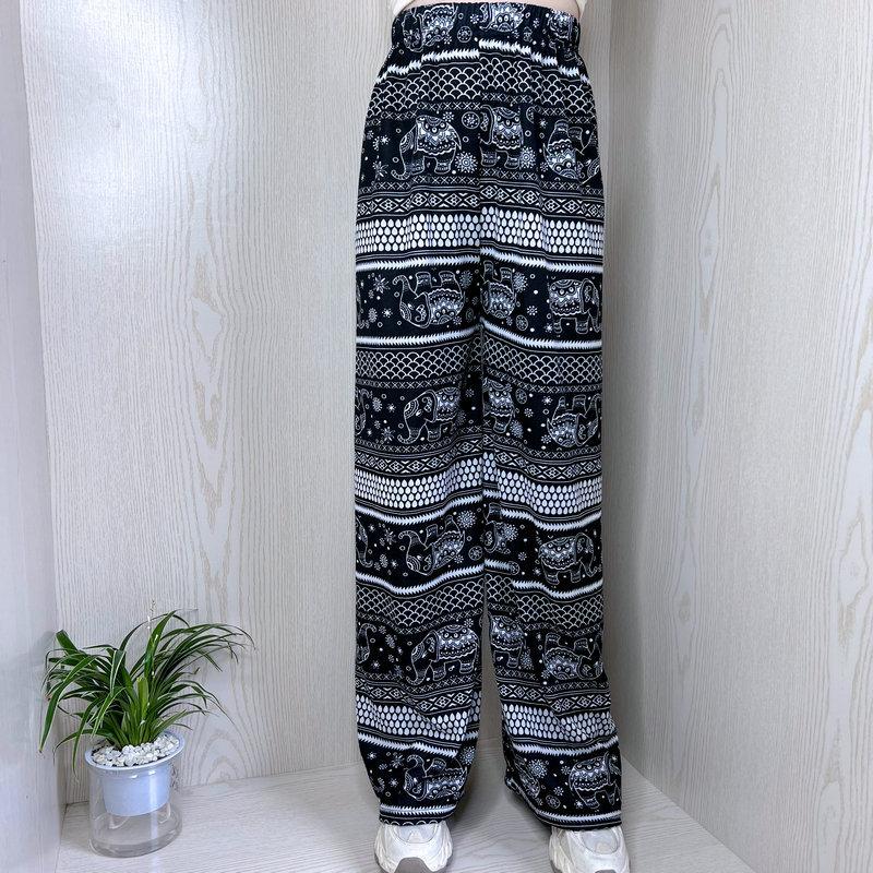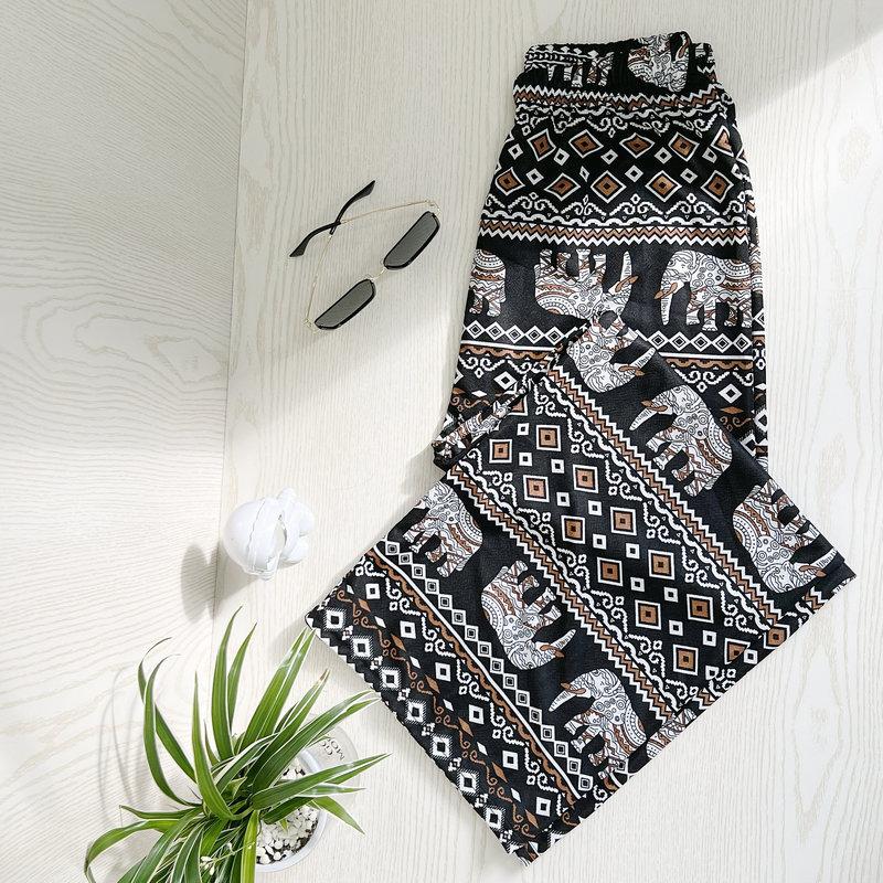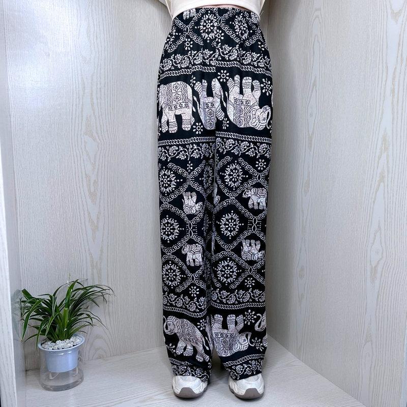 Compra Pantalones Explosivos de Estilo Étnico del Sudeste Asiático de Elefante Tailandés de Pierna Ancha para Mujer Pantalones de Playa Verano Delgados Cintura Alta Adelgazantes Rectos al por mayor en Joom.pro