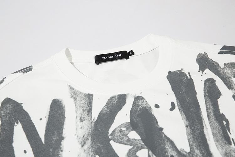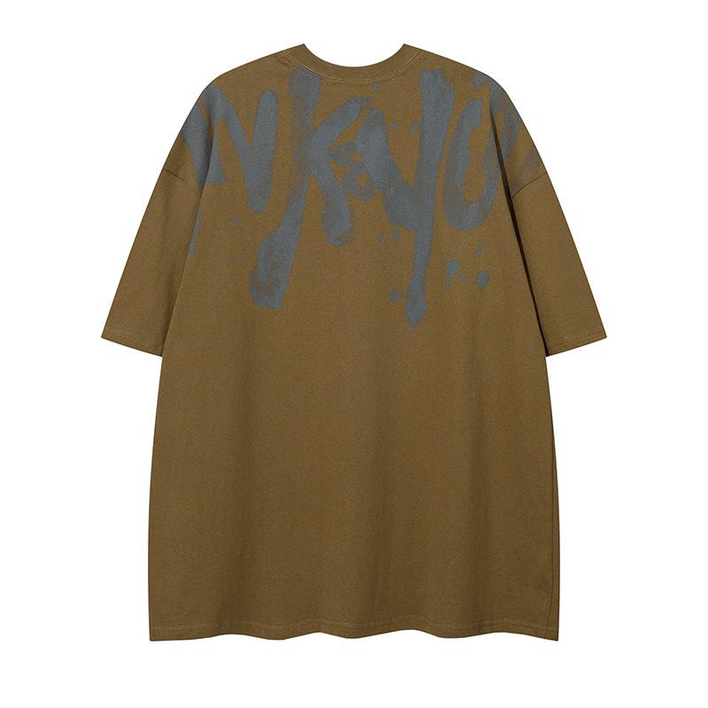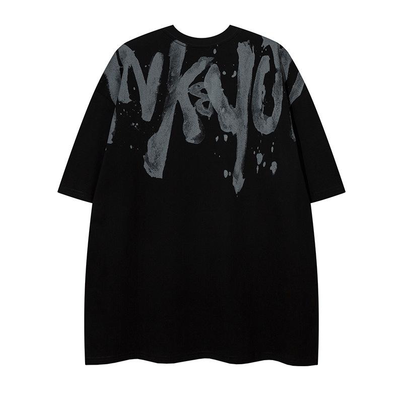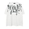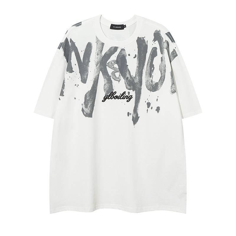 Tang Mu Chao People 23 Verano Moda Urbana Americana cityboy Hip Hop Alfabeto Camiseta Cuello Redondo para Hombre y Mujer Pareja Manga Corta