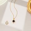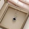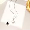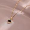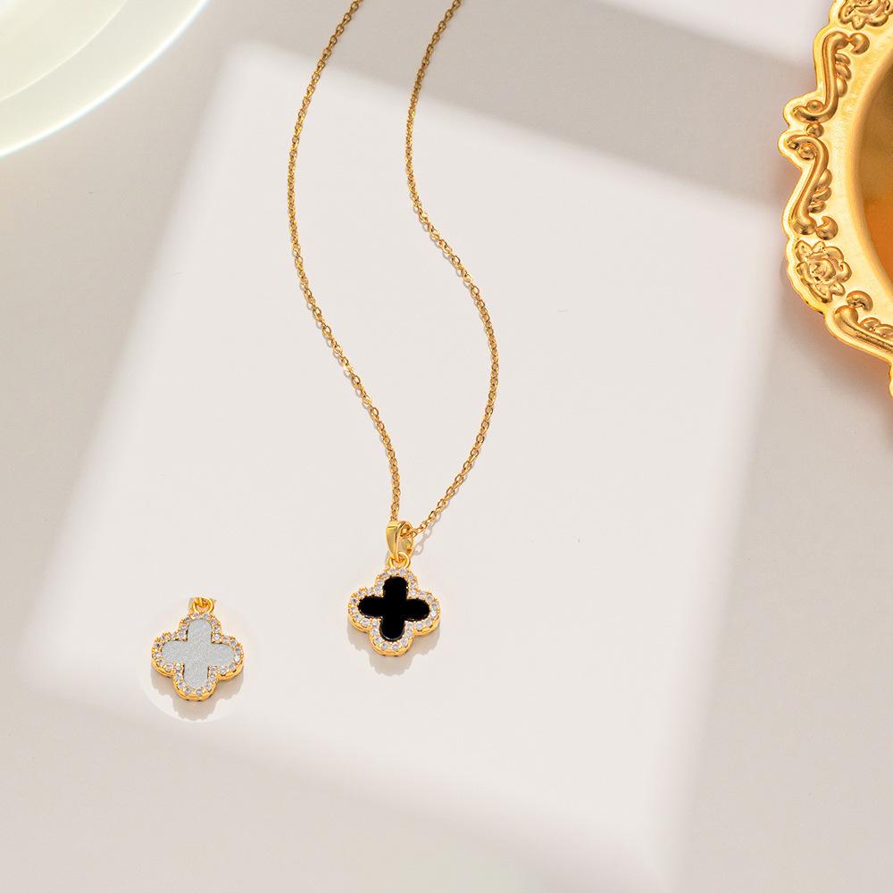 Collar de trébol de cuatro hojas con diamantes blancos y negros de doble cara en color dorado de estilo japonés y coreano, colgante de clavícula de la suerte para mujer, cadena de clavícula en línea, accesorios rojos