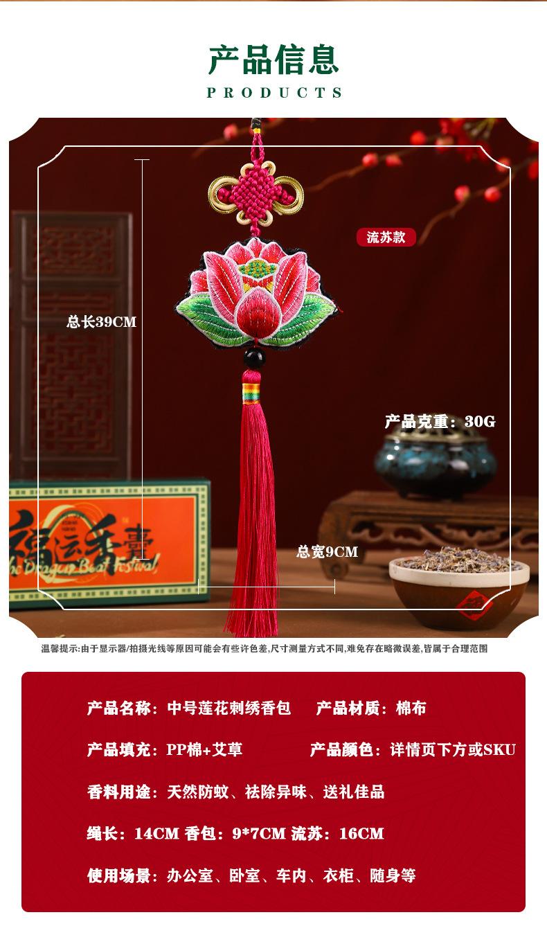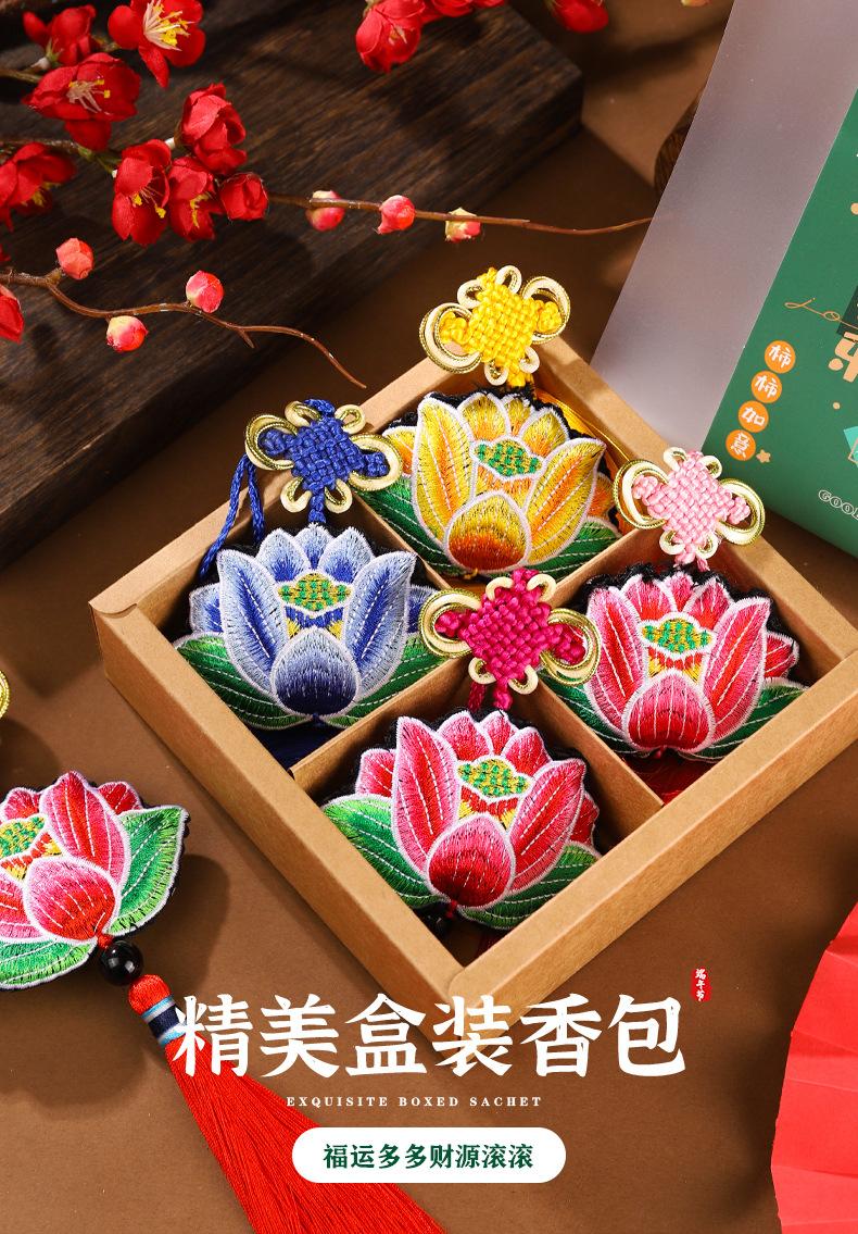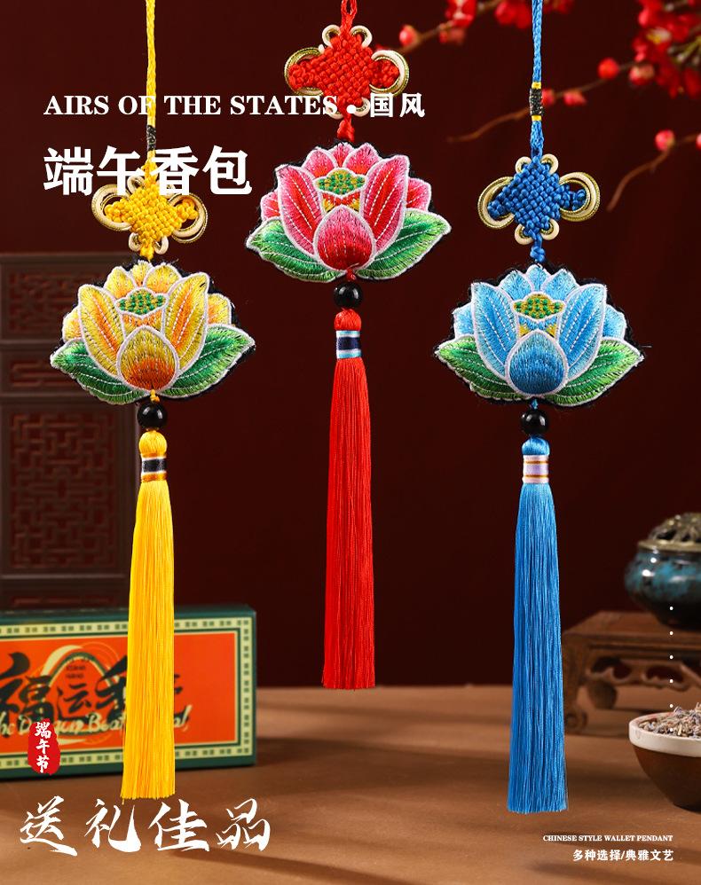Festival del Bote del Dragón Sache de Loto Caja de Regalo de Sache Bordado de Nudo Chino Antiguo Sache de Borla de Ajenjo Regalo del Festival del Bote del Dragón