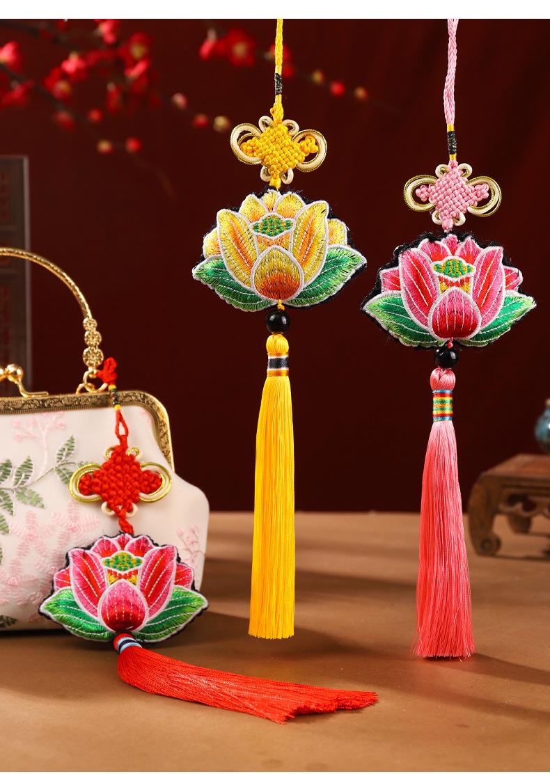 Random style, Rose medium MM-embroidered lotus sachet, Yellow medium MM-embroidered lotus sachet, Blue medium ...