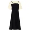 Compra Vestido Negro Falso de Dos Piezas con Cintura Ajustada Verano 2024 Nuevo Cuello en V Diseño Elegante Falda Midi para Mujer al por mayor en Joom.pro