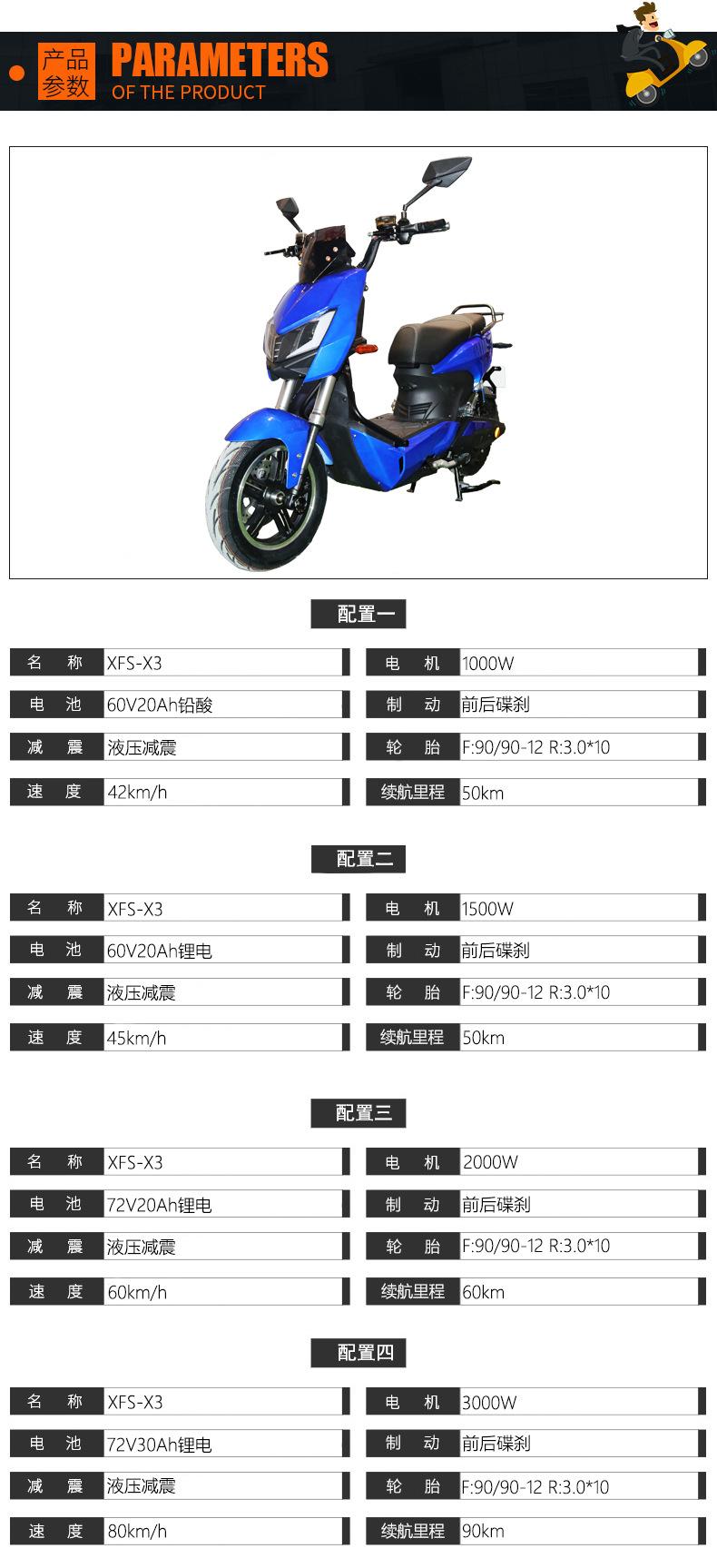 800w60v20ah lead-acid battery, 1500w60v20ah lithium battery, 2000w72v20ah lithium battery, 3000w72v30ah lithium battery