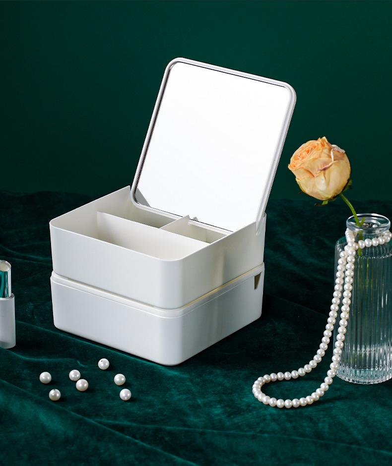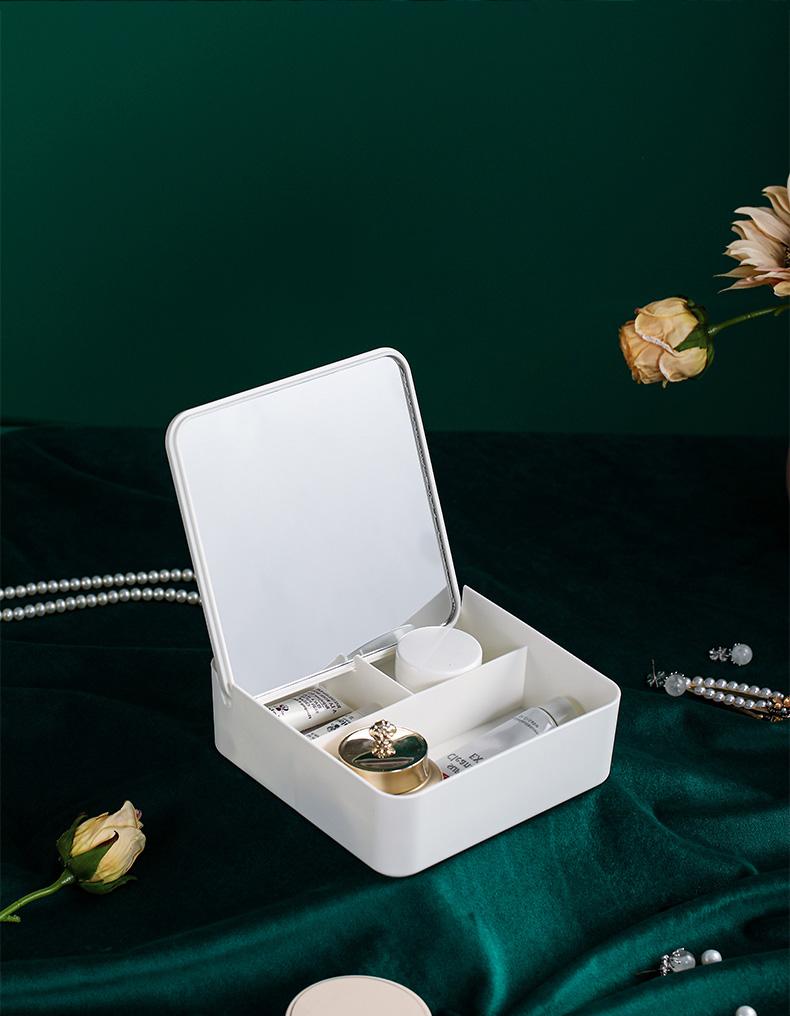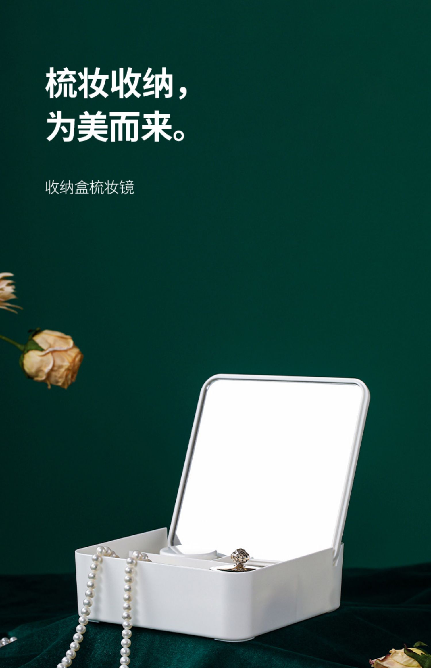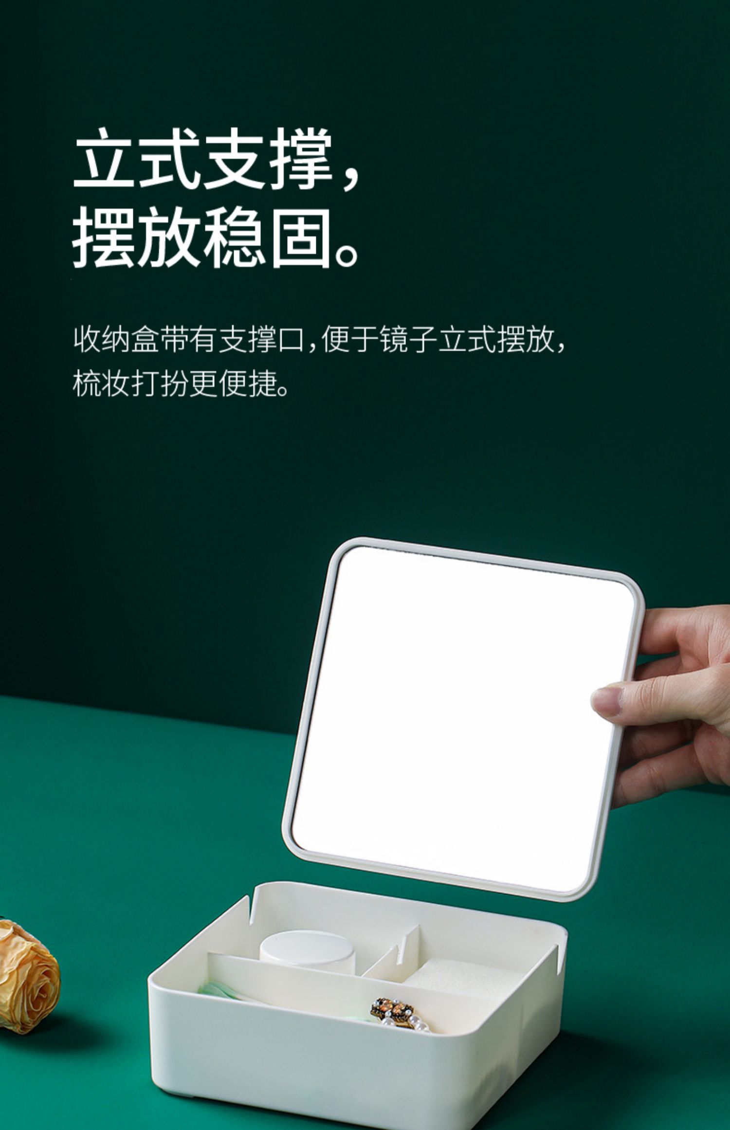 Caja de Maquillaje con Espejo para Oficina al por Mayor Caja de Almacenamiento para Espejo de Maquillaje Espejo Plegable Portátil de Escritorio Caja de Estudiante Peine