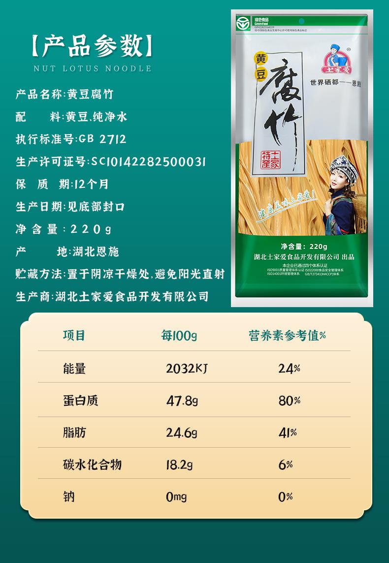 Productos de tofu amarillo Tujia love, productos secos, venta al por mayor, primera capa de tofu, piel, ingredientes fríos, sin sal, Fu Zhu 220 g * 1 bolsa