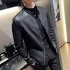 Chaqueta de cuero sintético para hombre, estilo punk, con cuello vertical, estilo motociclista juvenil, estilo europeo y americano, para otoño de 2023.