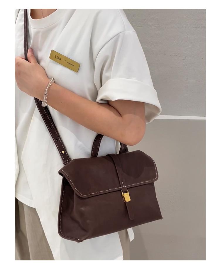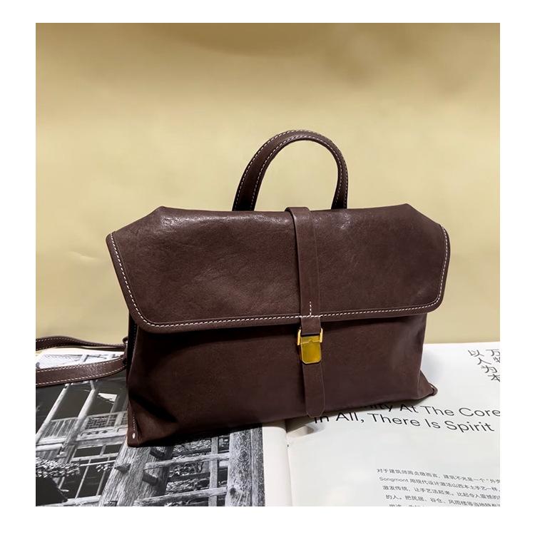 Bolso Mensajero de Piel de Vaca de Primera Capa, Bolso de Mujer de Cuero Genuino de Venta Caliente, Bolso Bandolera de Hombro de Nicho, Bolso de Mano para Viaje de Gran Capacidad