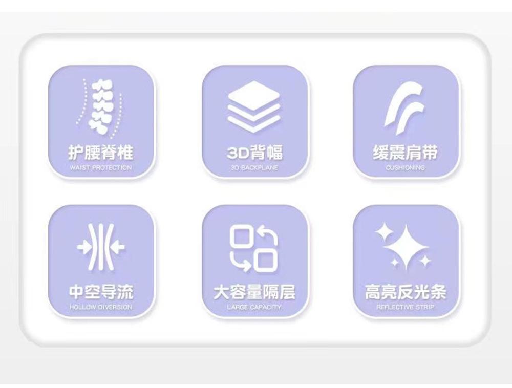 Breathable, Waterproof, Ultra-light, Wear-resistant, Expansion, Burden reduction, Can be stored, Spine protection