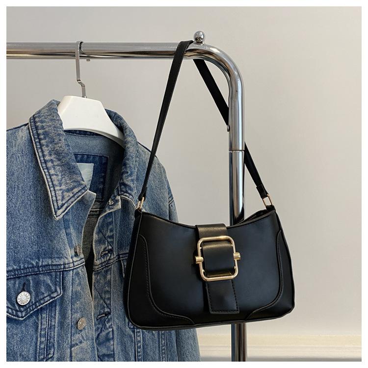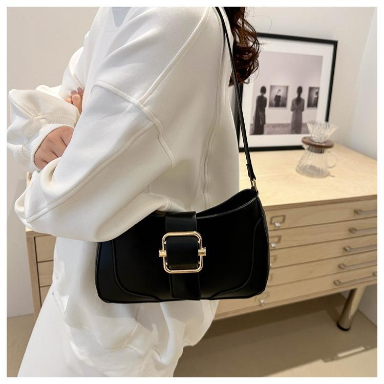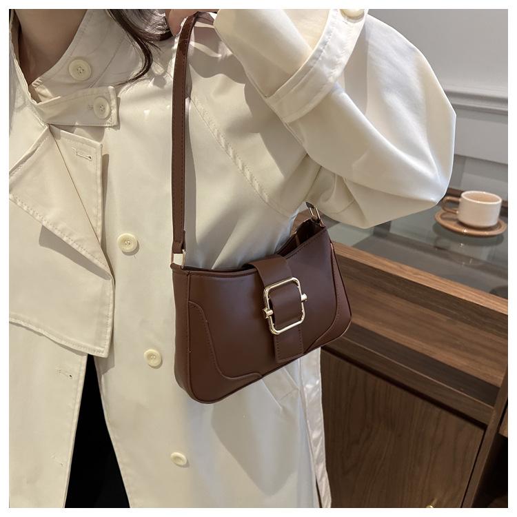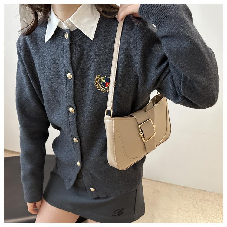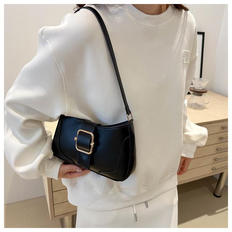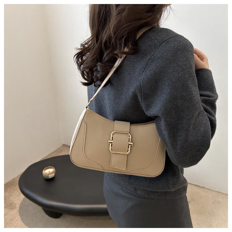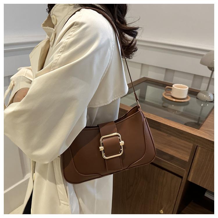 Textura Retro Bajo el Brazo Color Sólido Simple Moda Invierno 2024 Estilo Occidental Nuevo Moderno Portátil Hombro Bolso Cuadrado Pequeño para Mujer