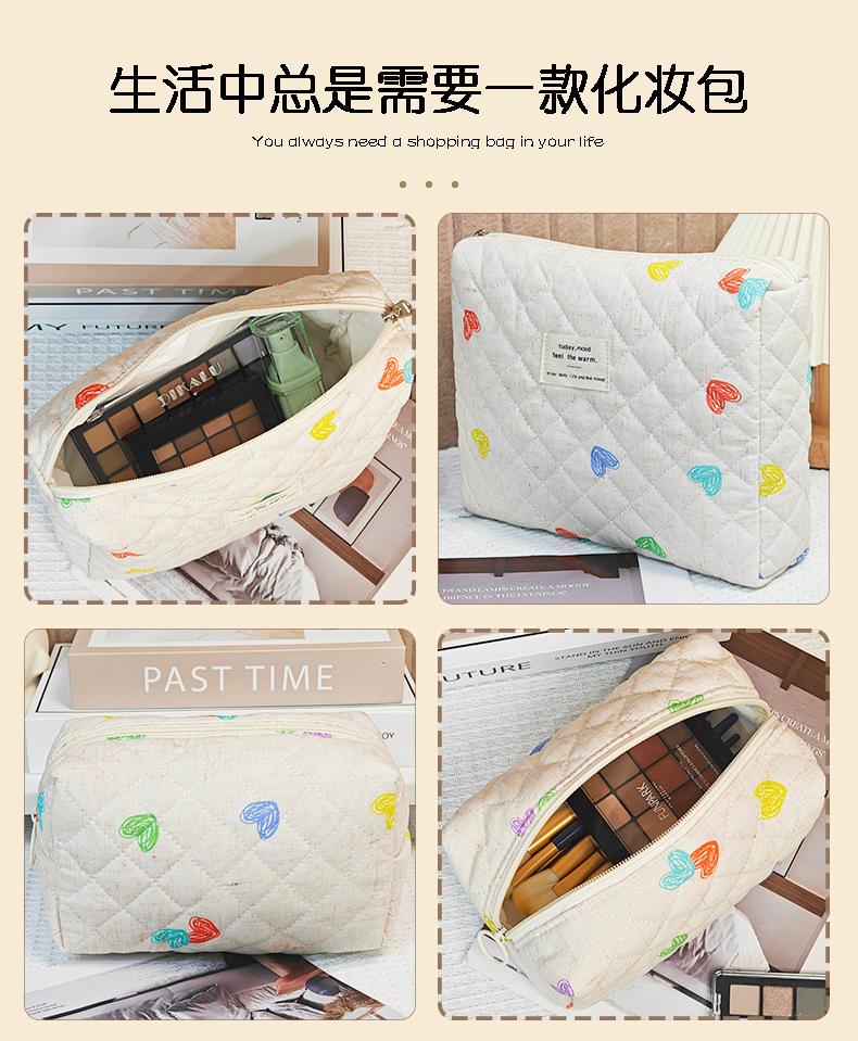 Bolsa de cosméticos de gran capacidad con diseño de corazón para niñas, portátil, para el hogar, para viajes, para el cuidado de la piel, bolsa de almacenamiento de cosméticos