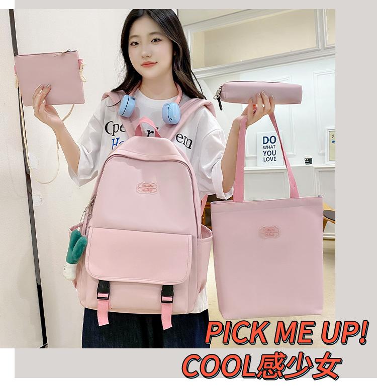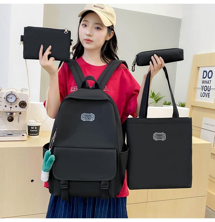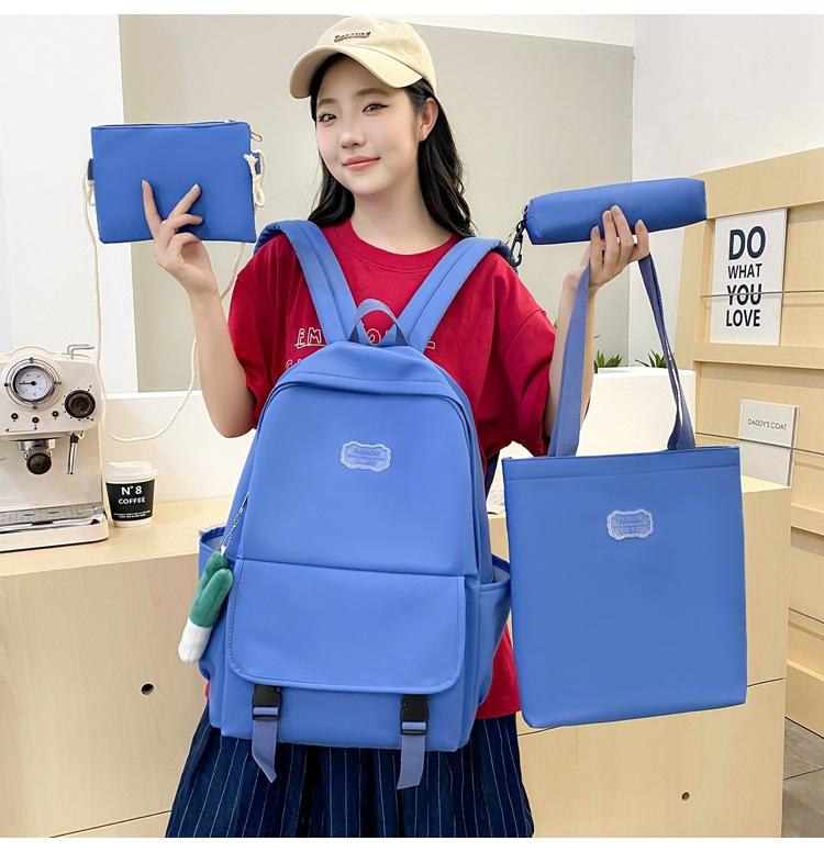 Mochila escolar para mujer, sencilla y ligera, para estudiantes de secundaria, de gran capacidad, de cuatro piezas, para estudiantes de primaria.