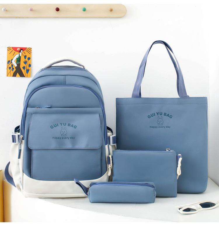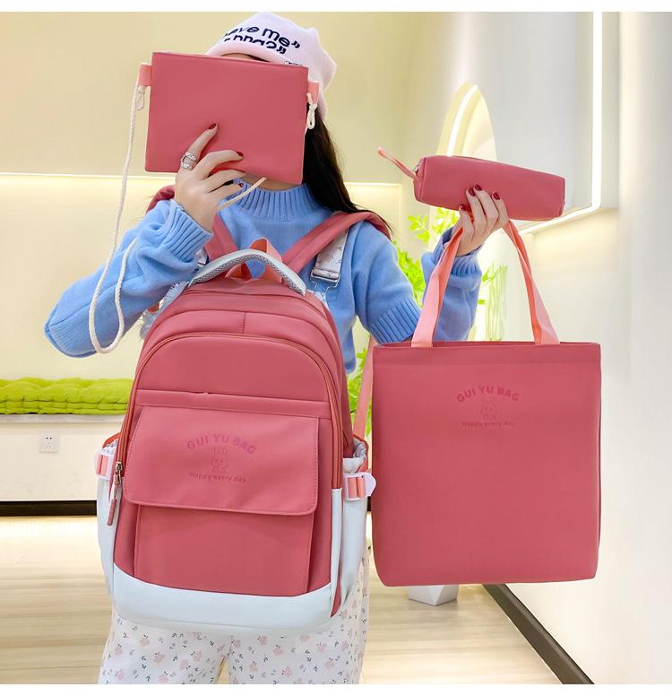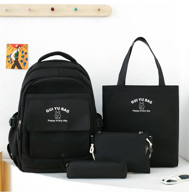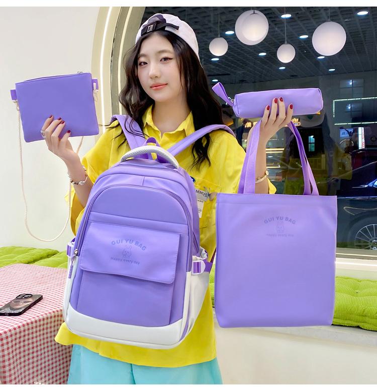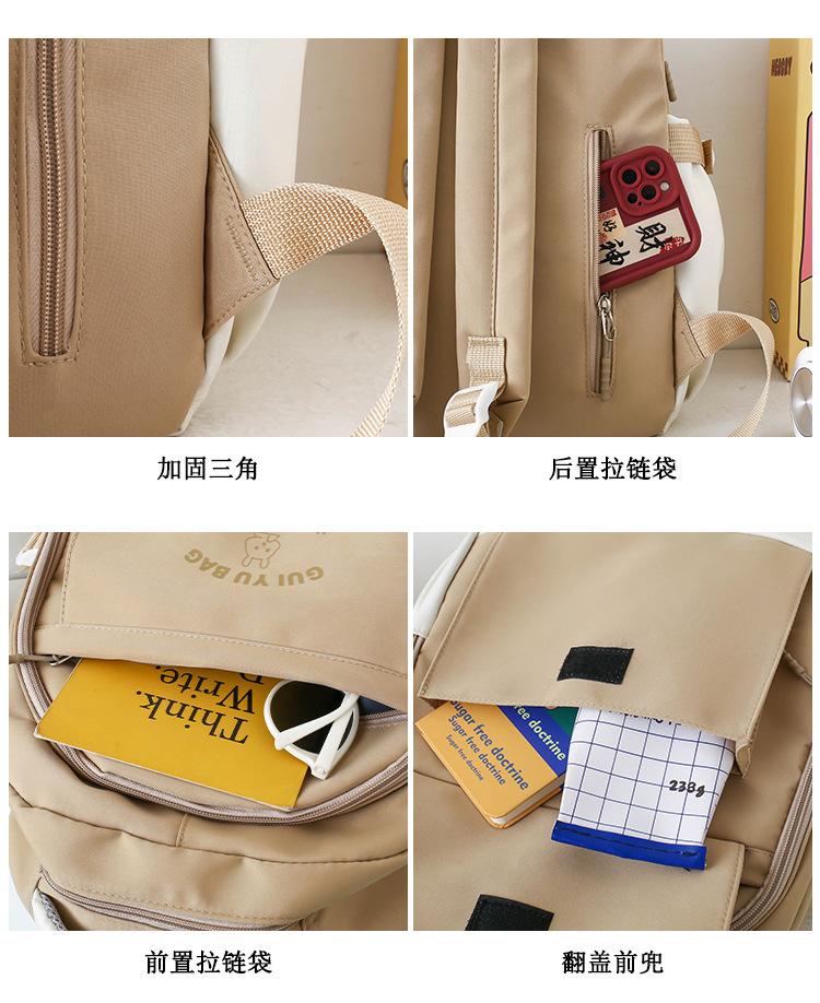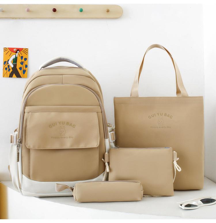 Mochila escolar de varias piezas para estudiantes de secundaria 2024 nueva mochila coreana de campus de color sólido con estampado de letras mochila de ocio