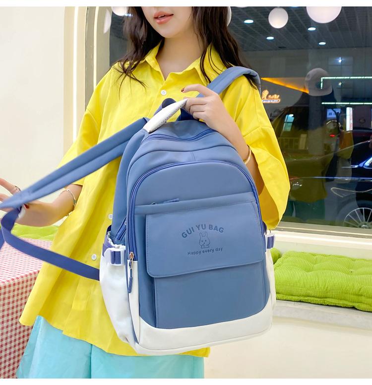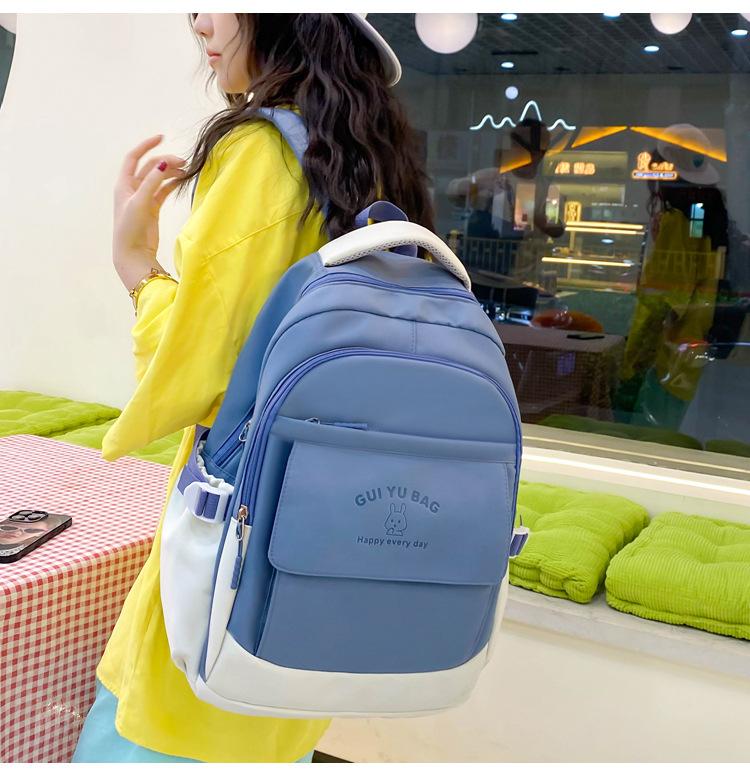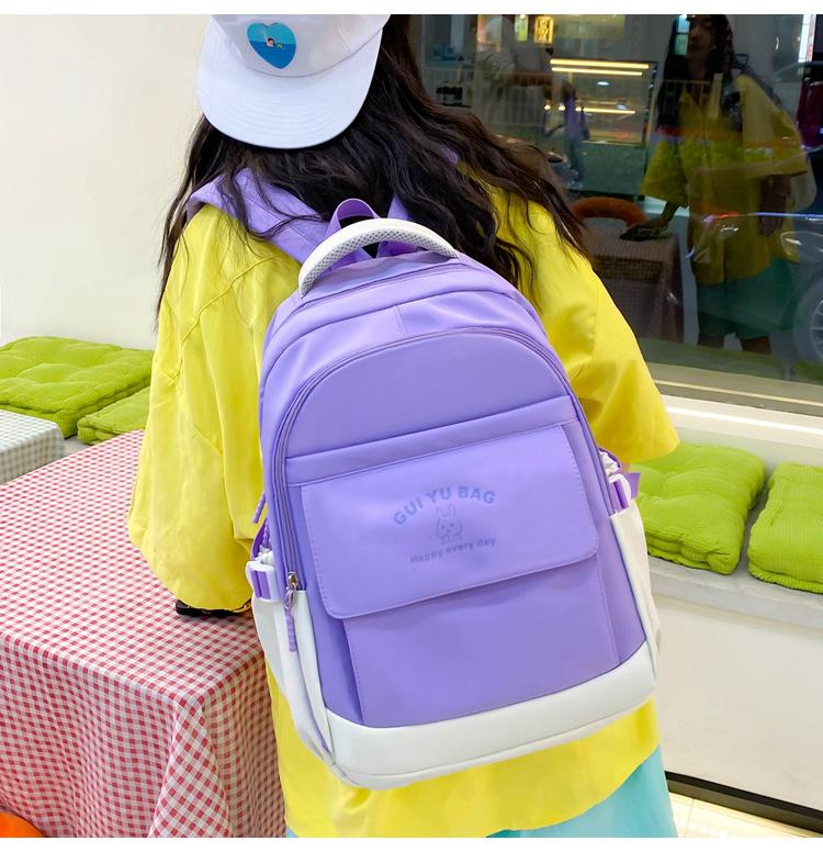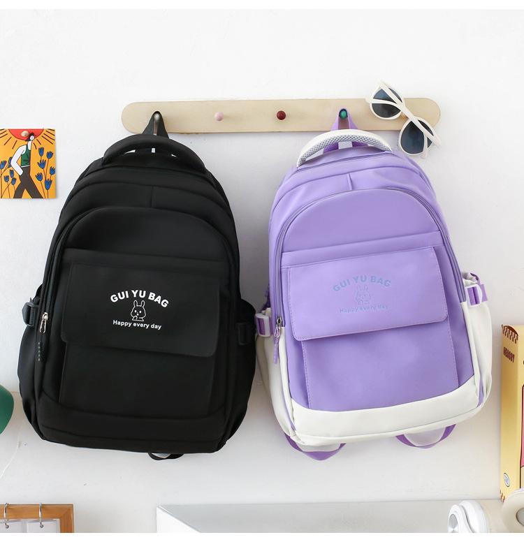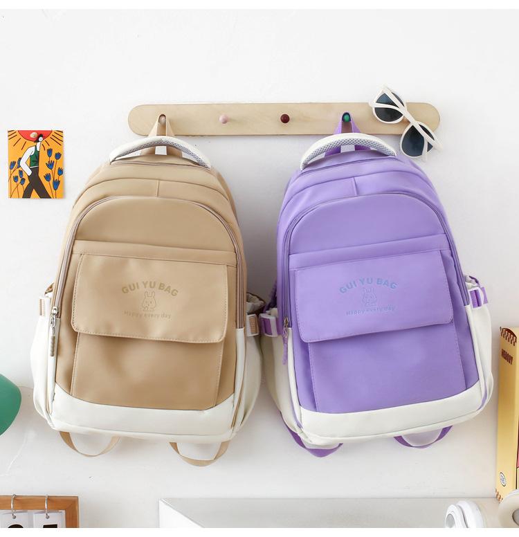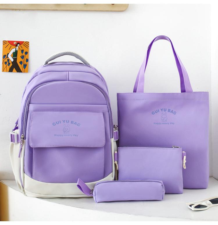 Mochila escolar de varias piezas para estudiantes de secundaria 2024 nueva mochila coreana de campus de color sólido con estampado de letras mochila de ocio