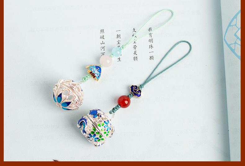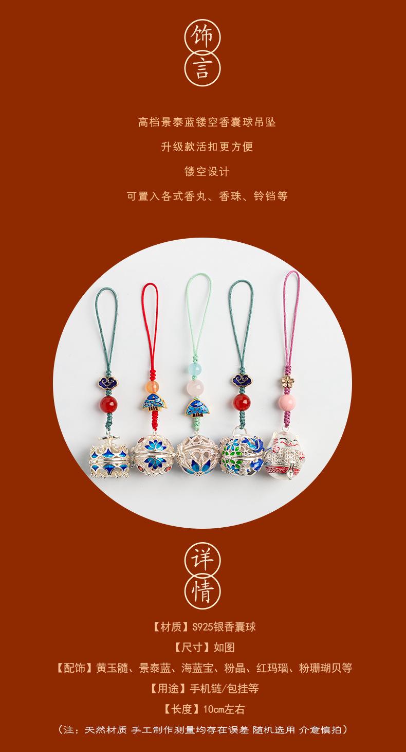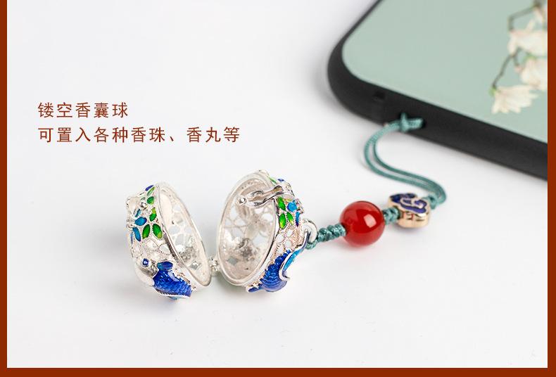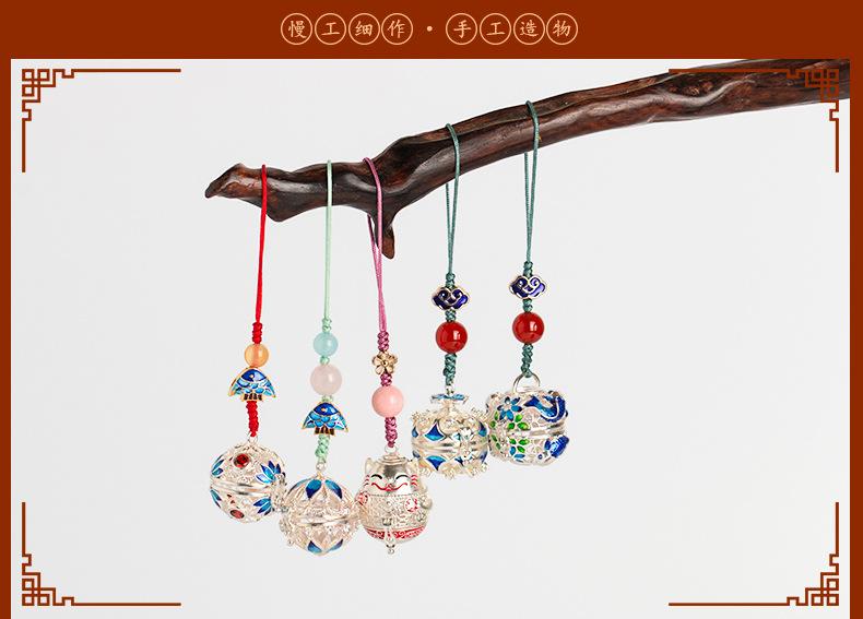 Colgante de Estilo Chino Colgante para Hombres y Mujeres Cordón Colgante Pequeño Adornos Colgantes Bola de Saquito Antiguo Hueca Bola de Saquito Portátil Joyería