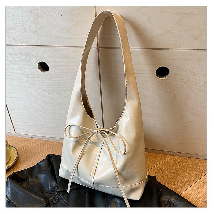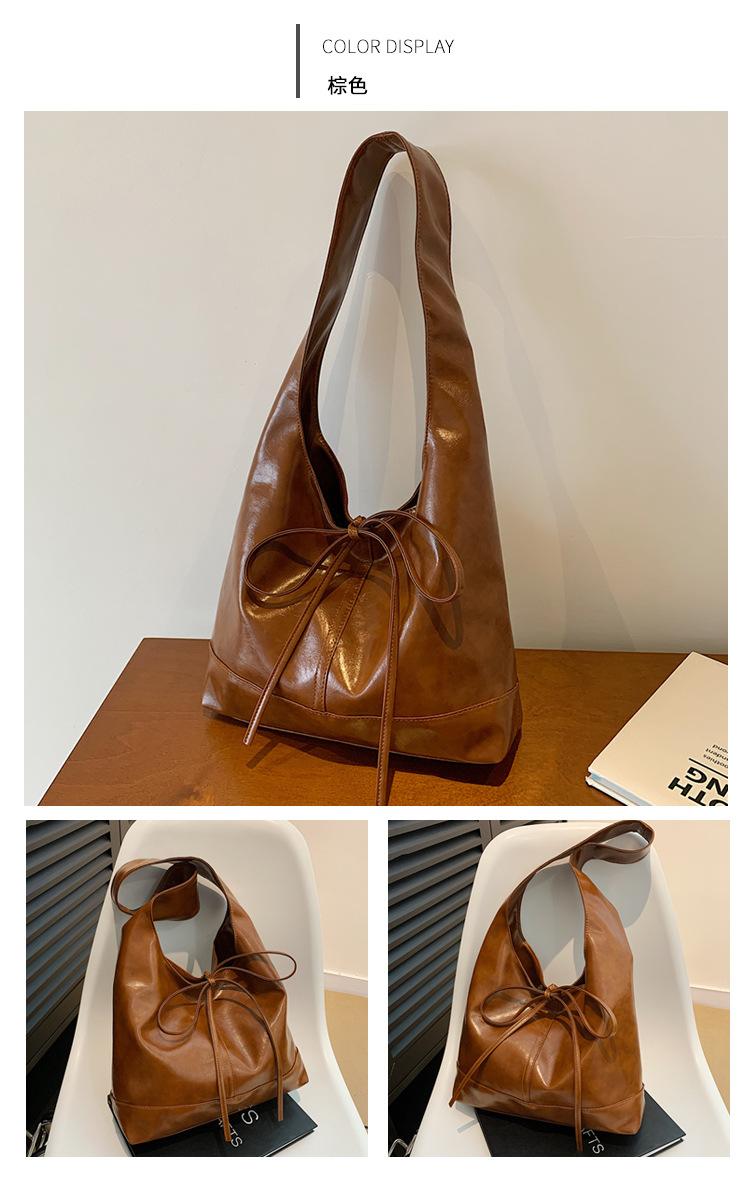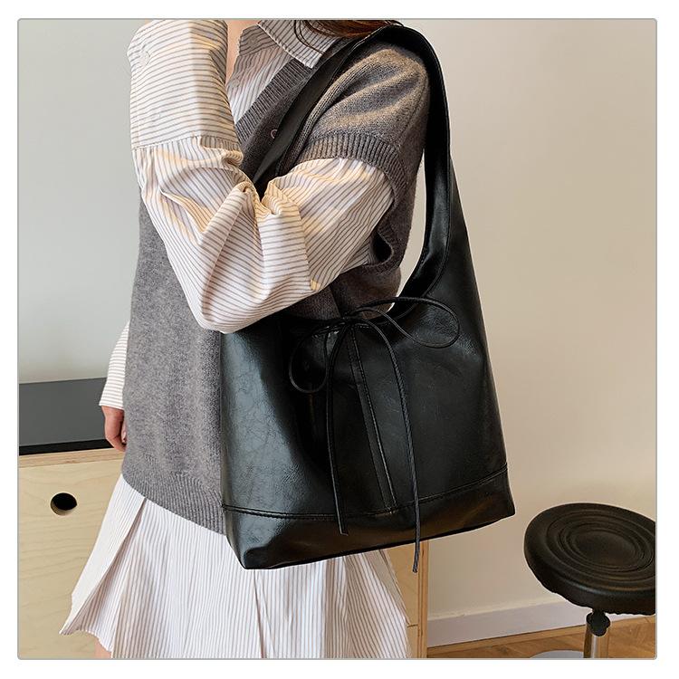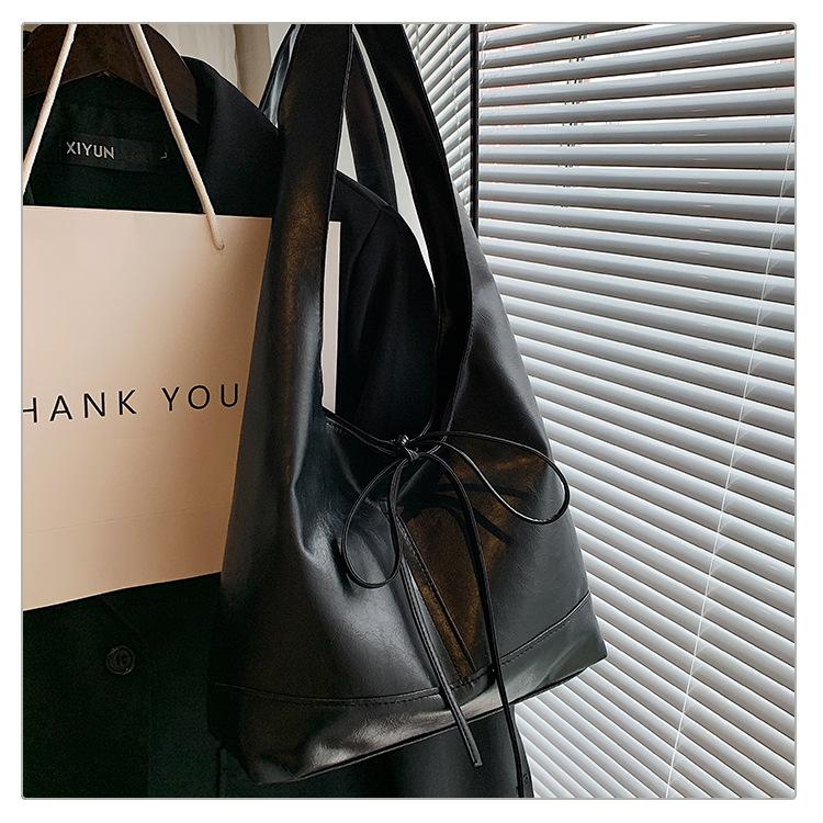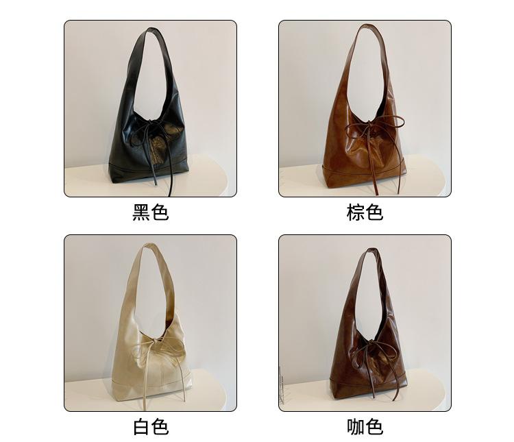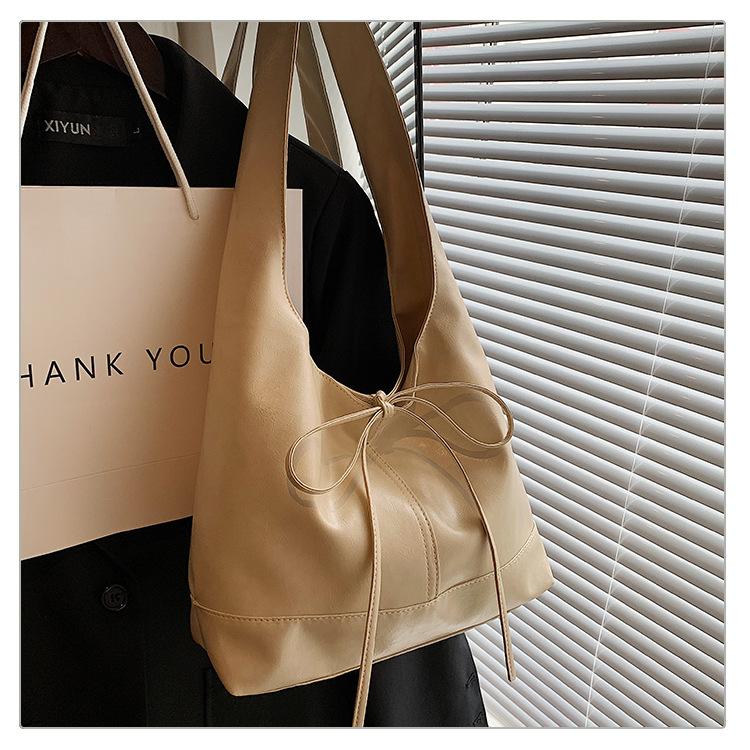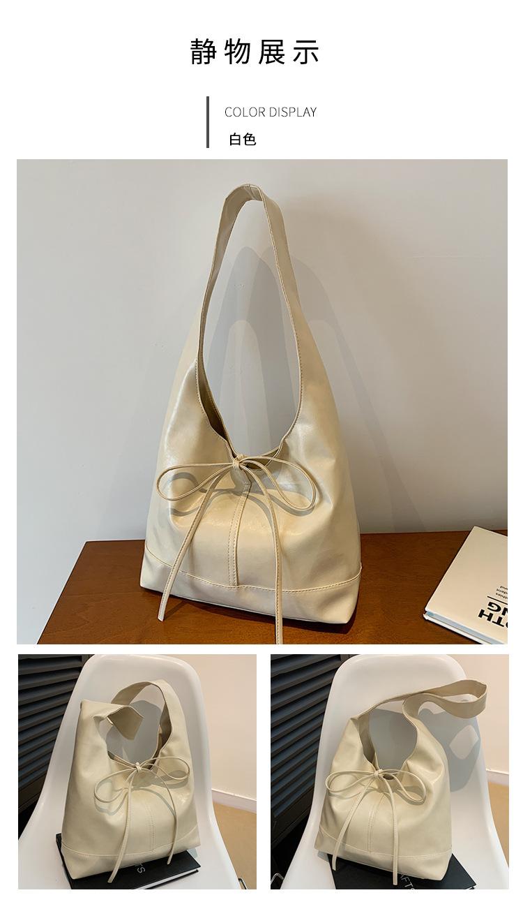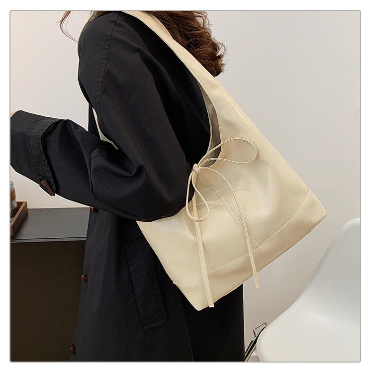 Casual Retro Gran Capacidad 2024 Lazo Color Sólido Nuevo Simple Compras Moda Clase Viajero Hombro Tote Bag