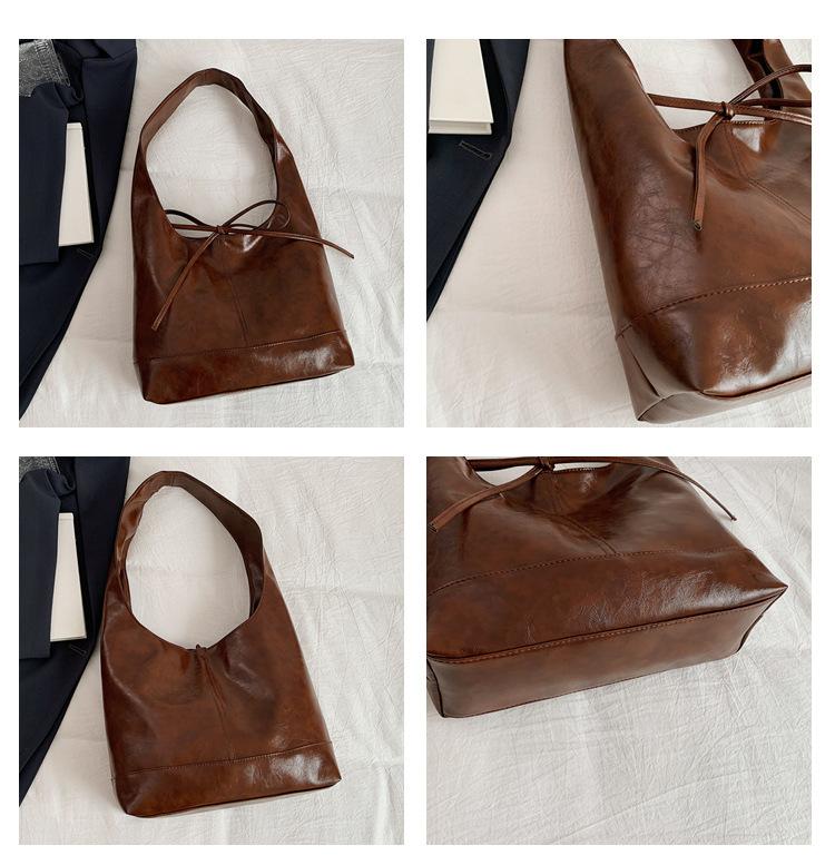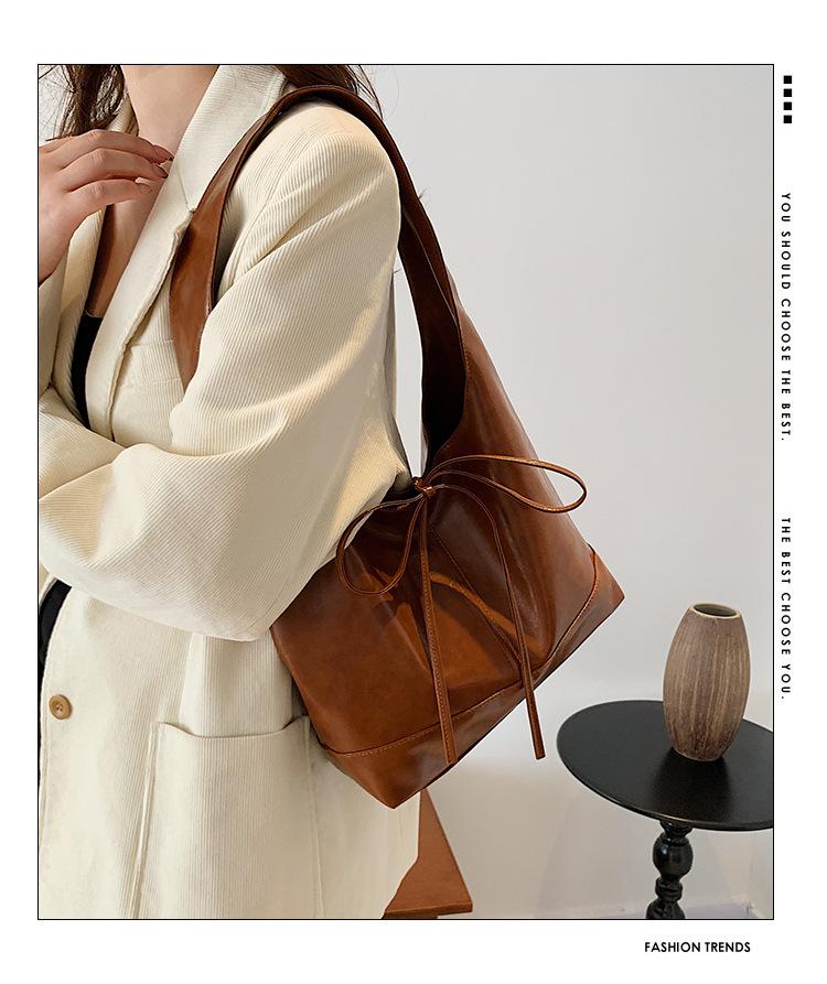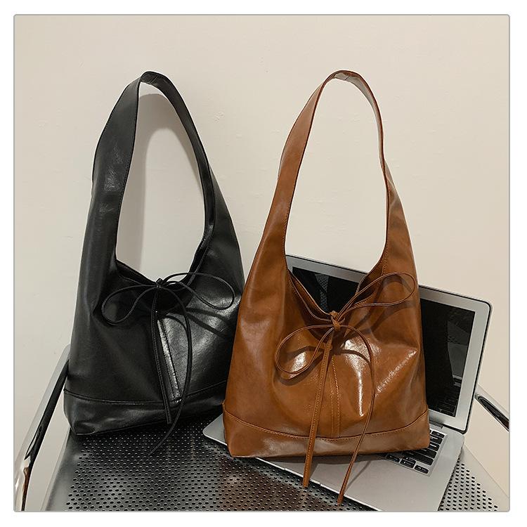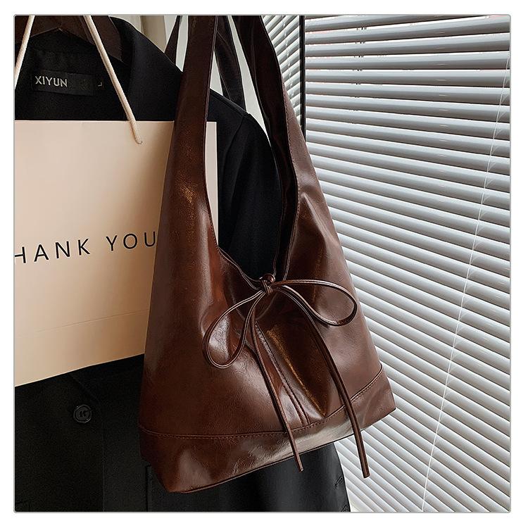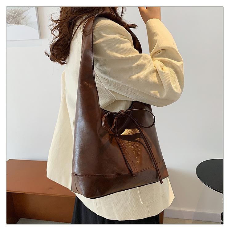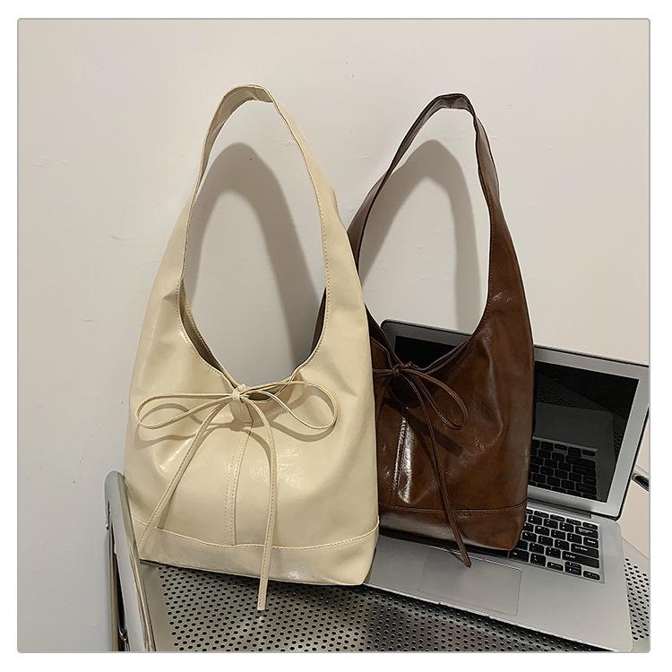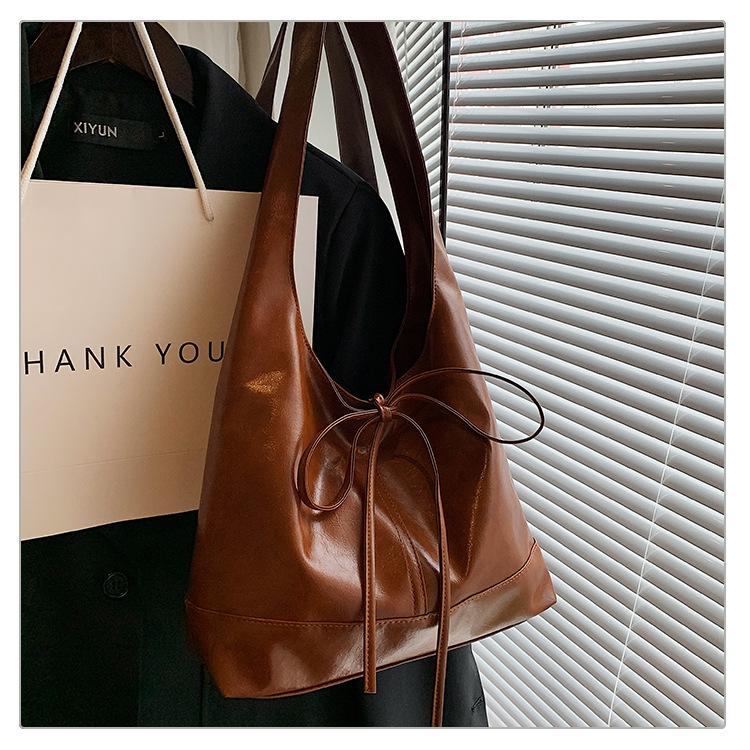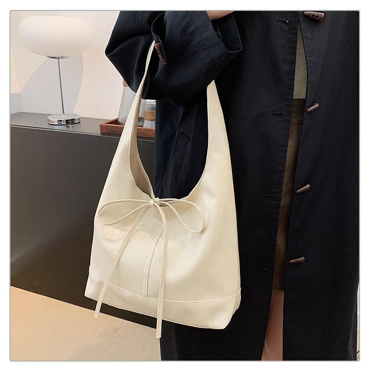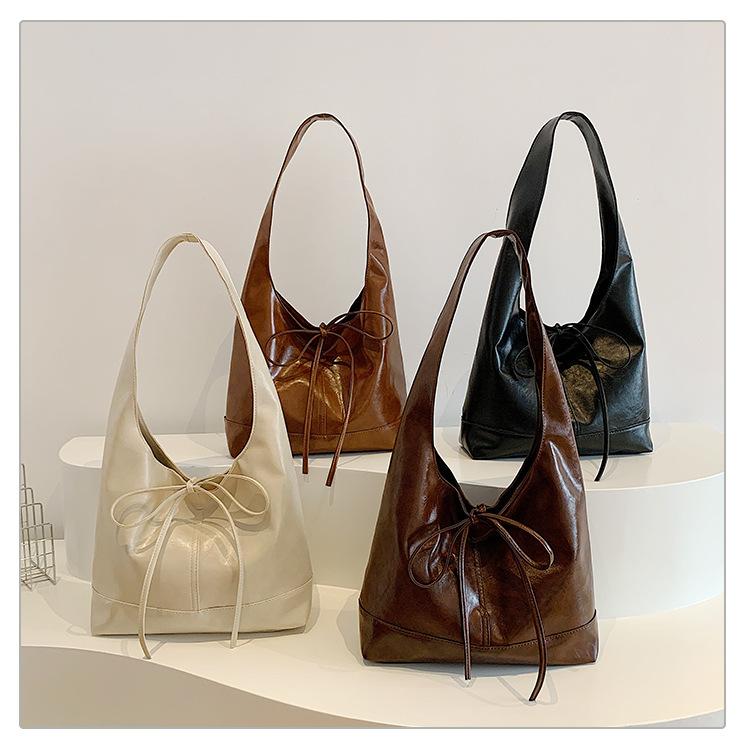 Casual Retro Gran Capacidad 2024 Lazo Color Sólido Nuevo Simple Compras Moda Clase Viajero Hombro Tote Bag