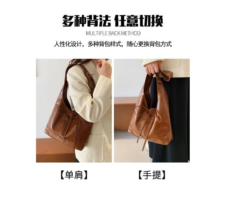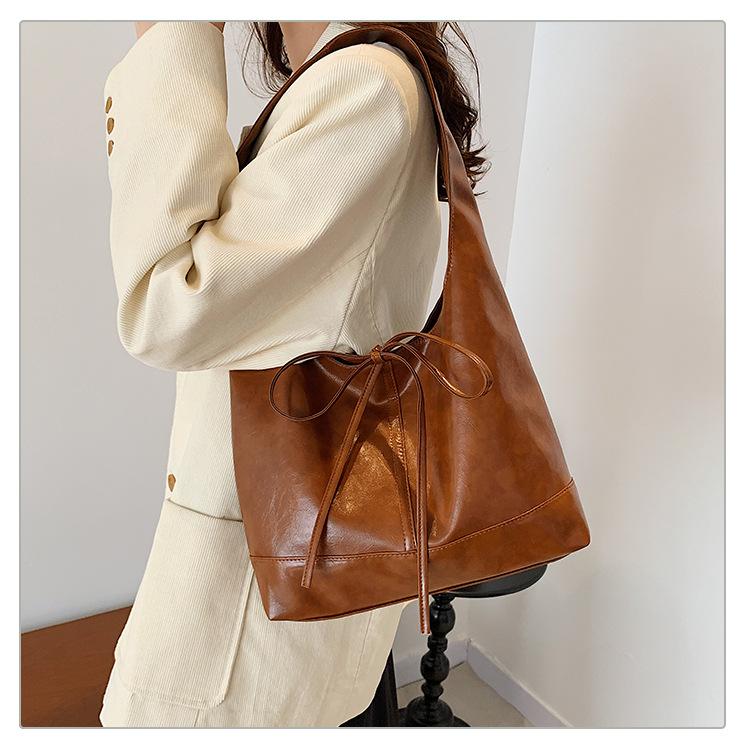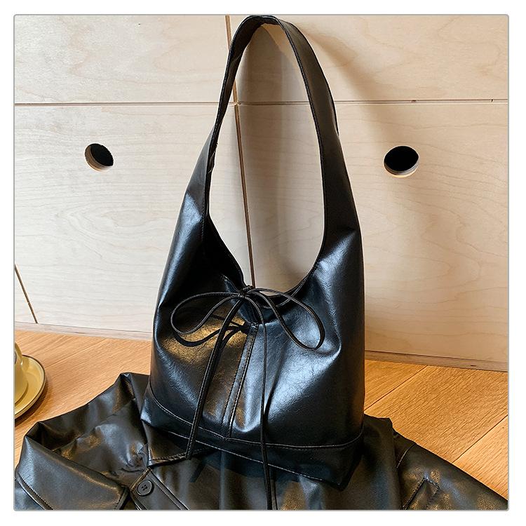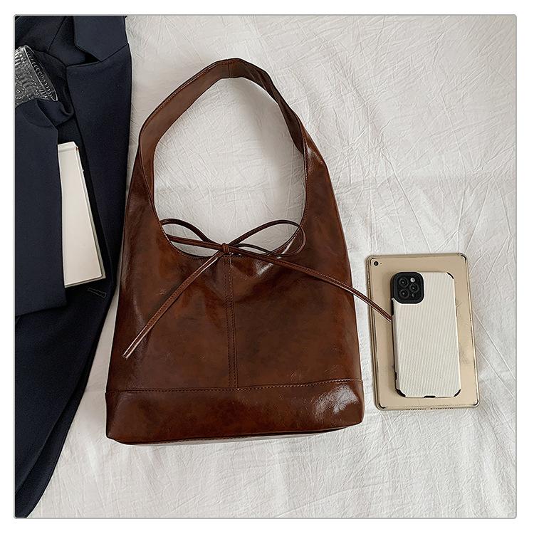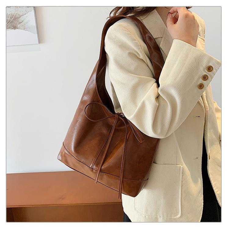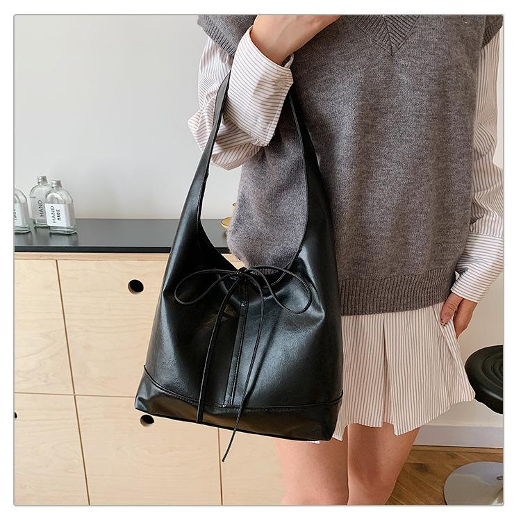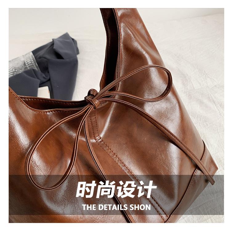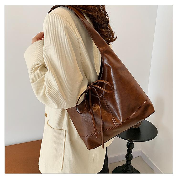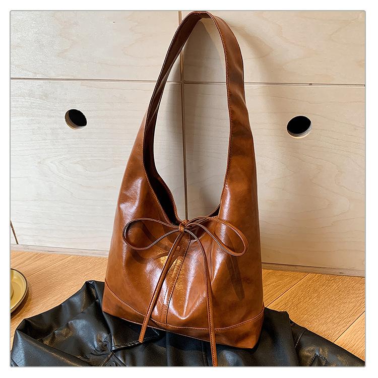Casual Retro Gran Capacidad 2024 Lazo Color Sólido Nuevo Simple Compras Moda Clase Viajero Hombro Tote Bag