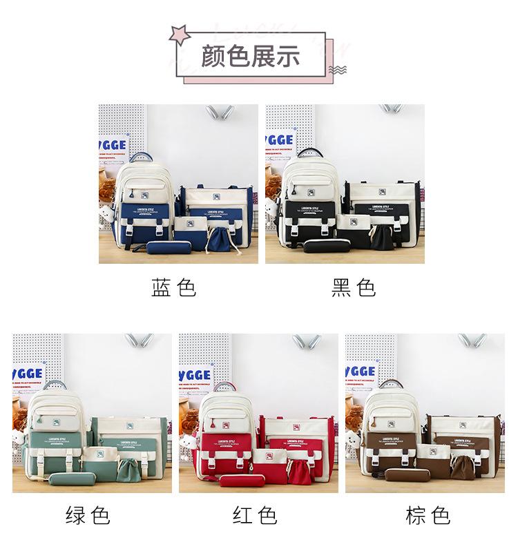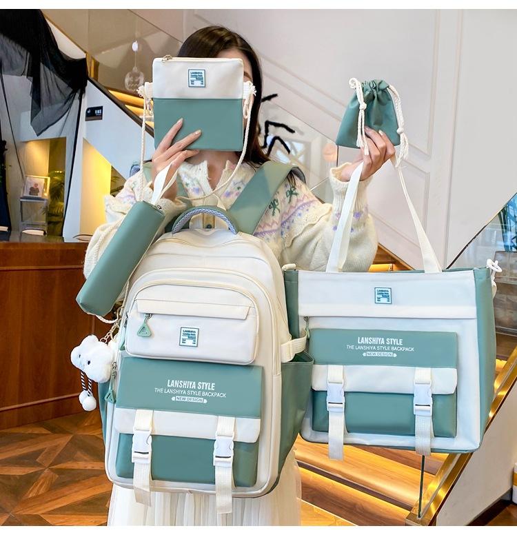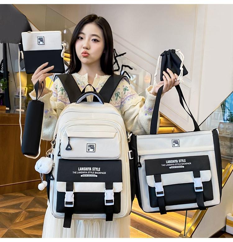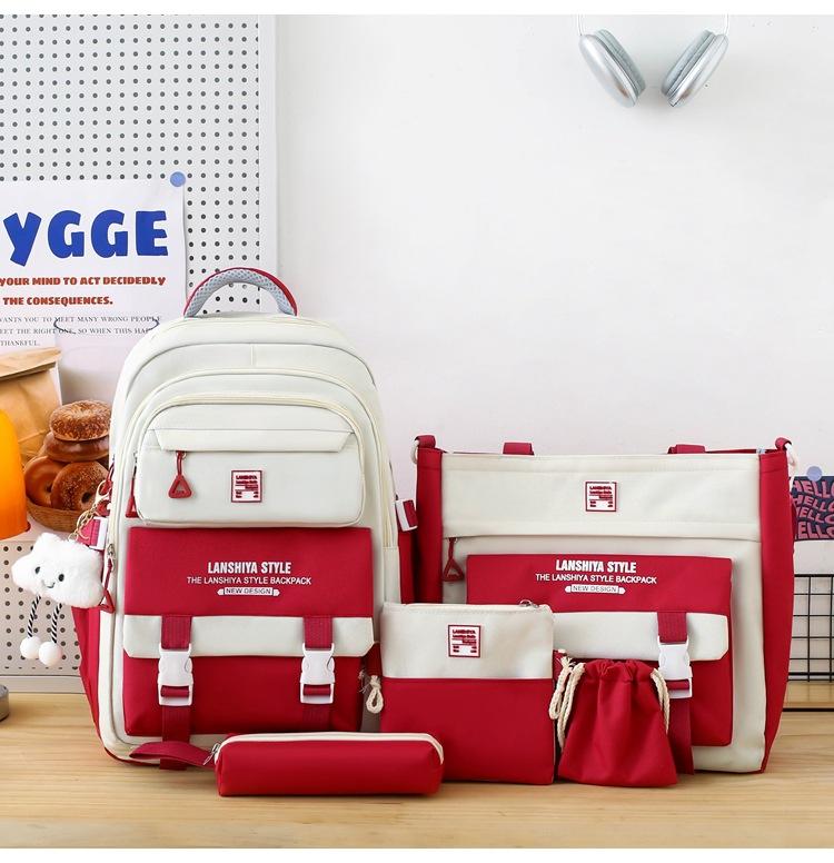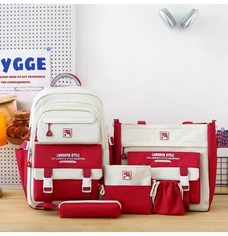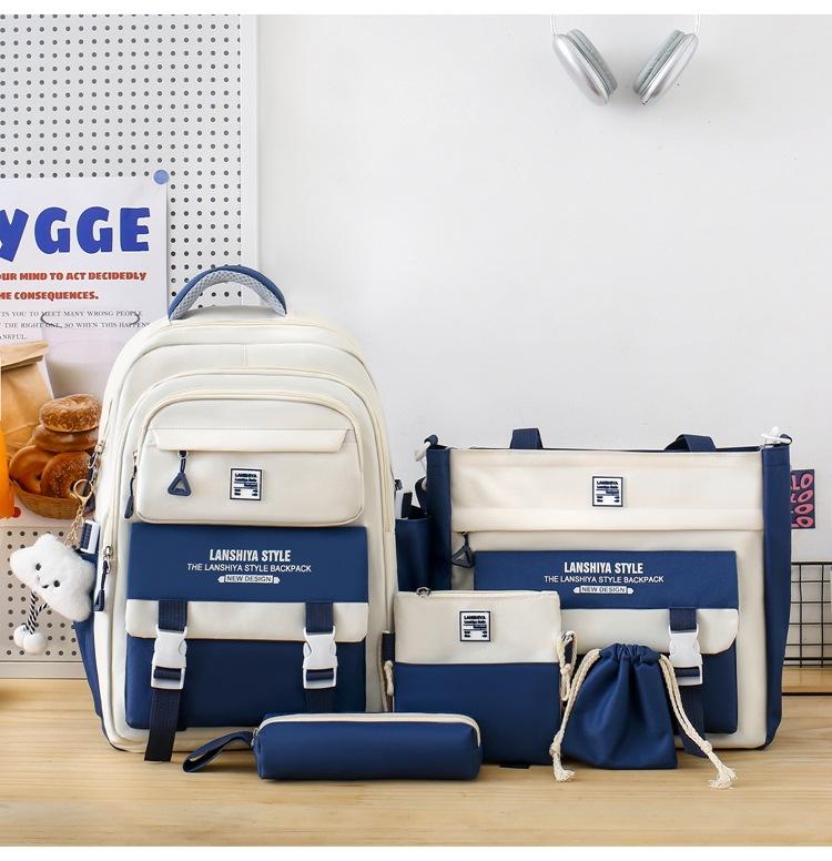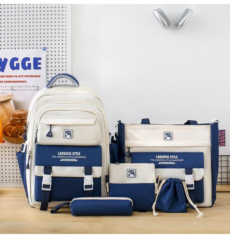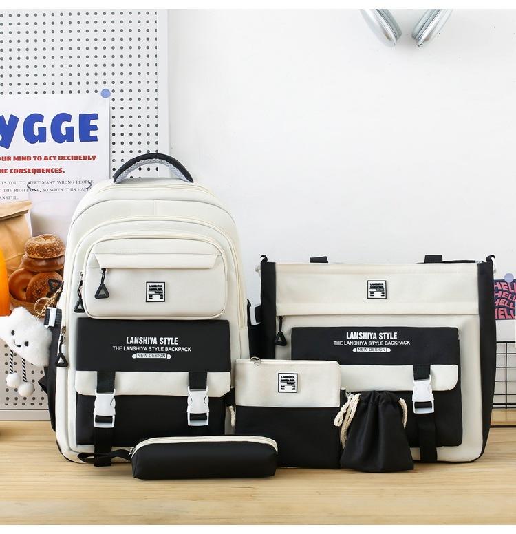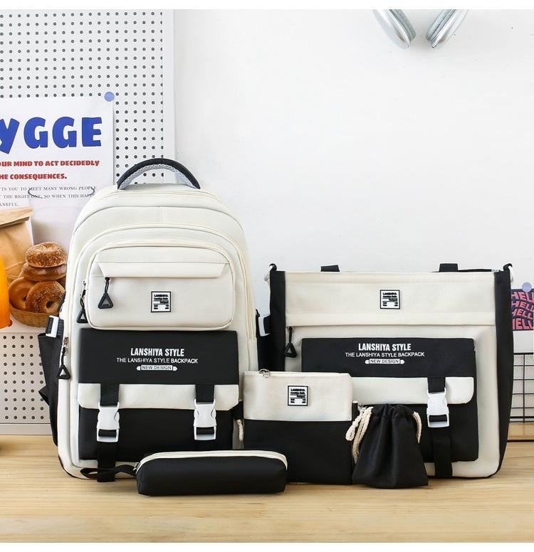 Mochila escolar de cinco piezas para estudiantes, mochila para estudiantes de secundaria, de color contrastante, coreana, duradera, de gran capacidad, para el campus, para hombre