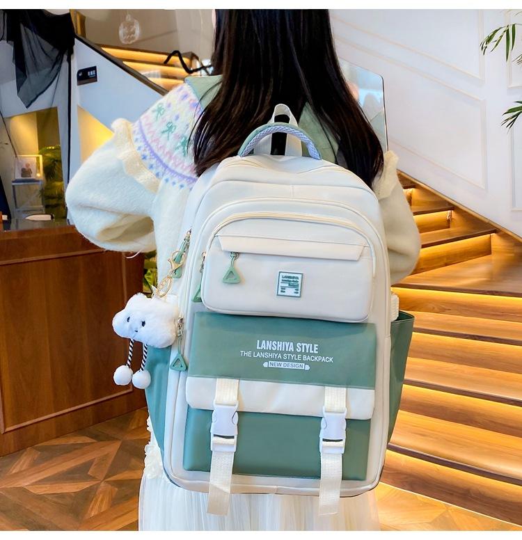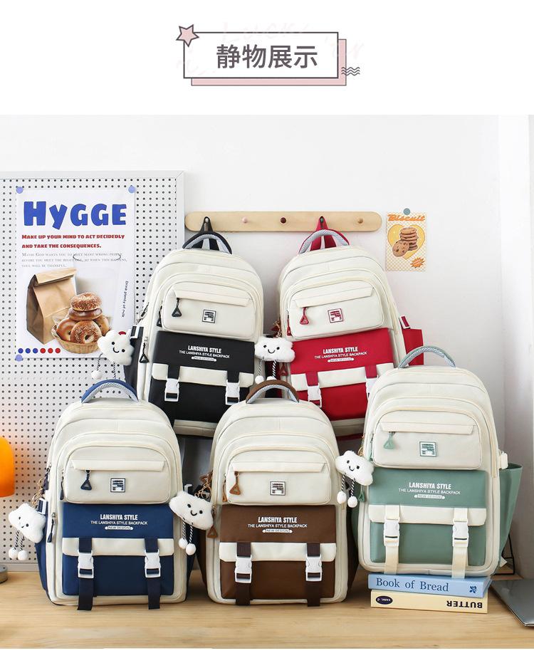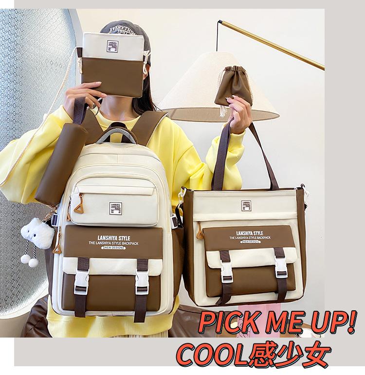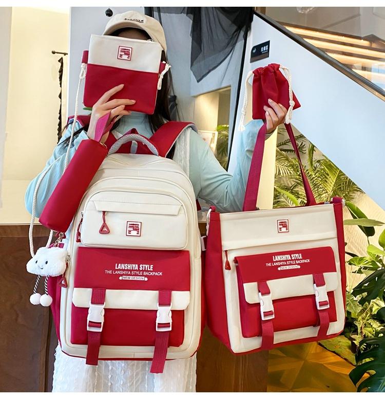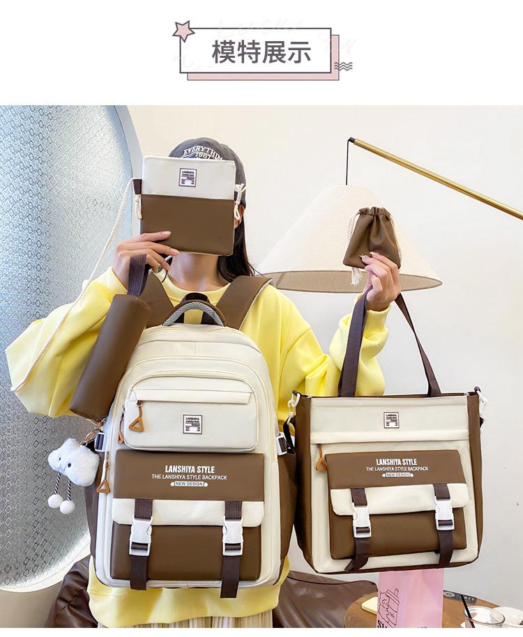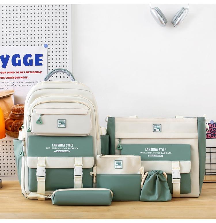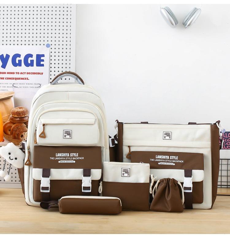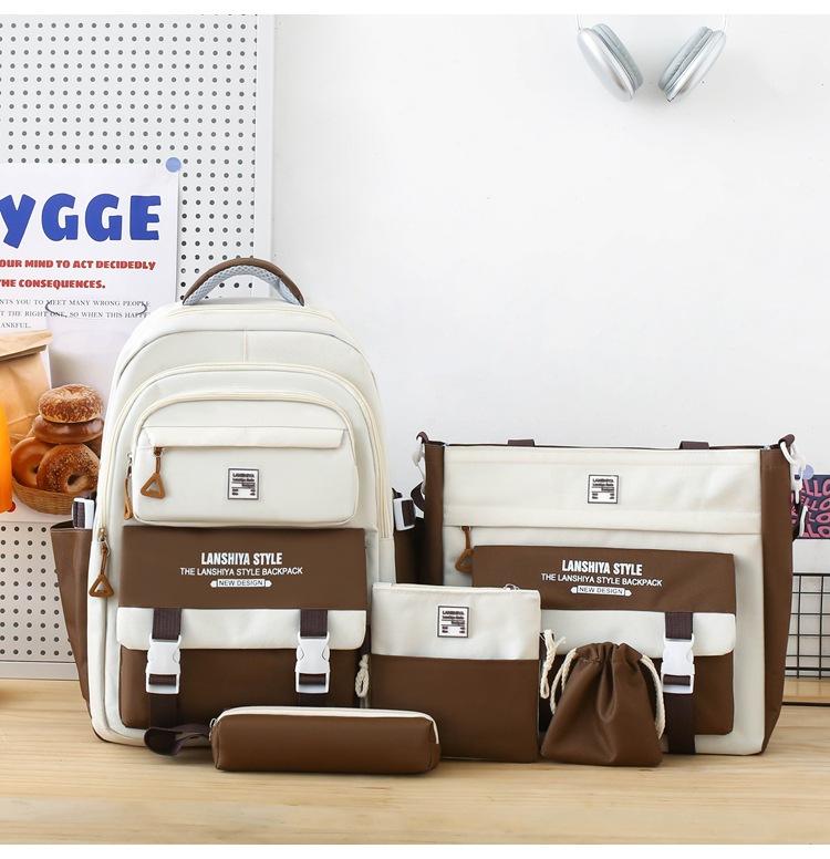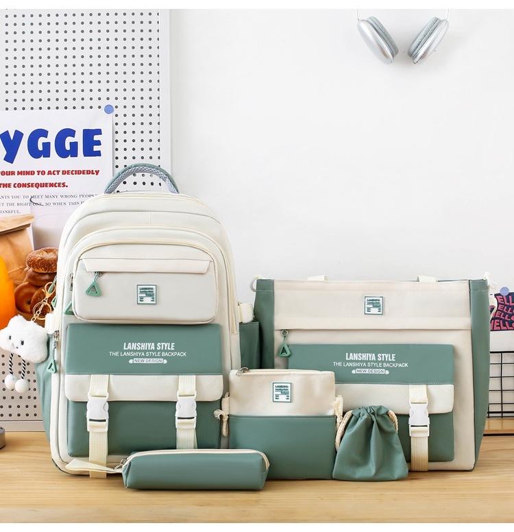 Mochila escolar de cinco piezas para estudiantes, mochila para estudiantes de secundaria, de color contrastante, coreana, duradera, de gran capacidad, para el campus, para hombre