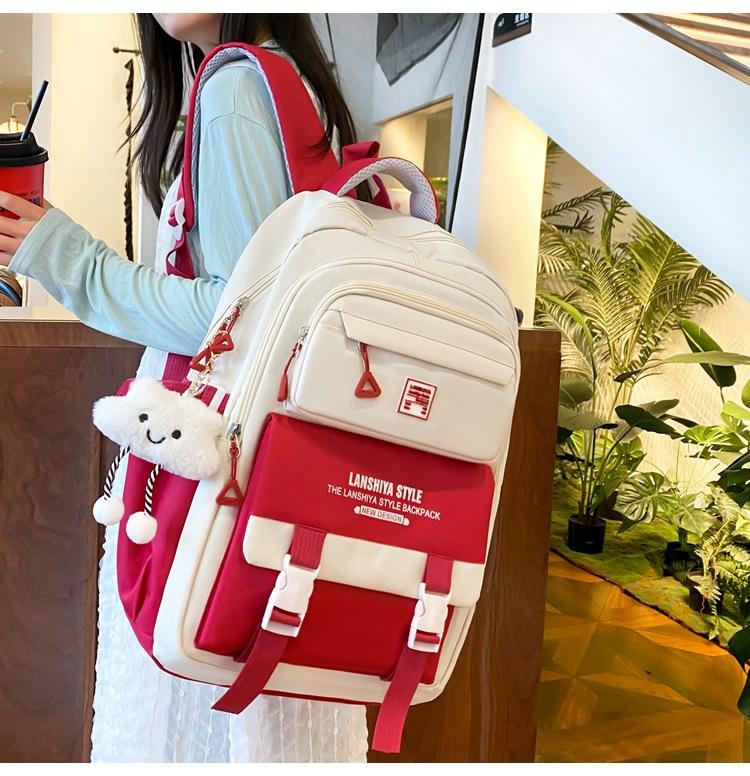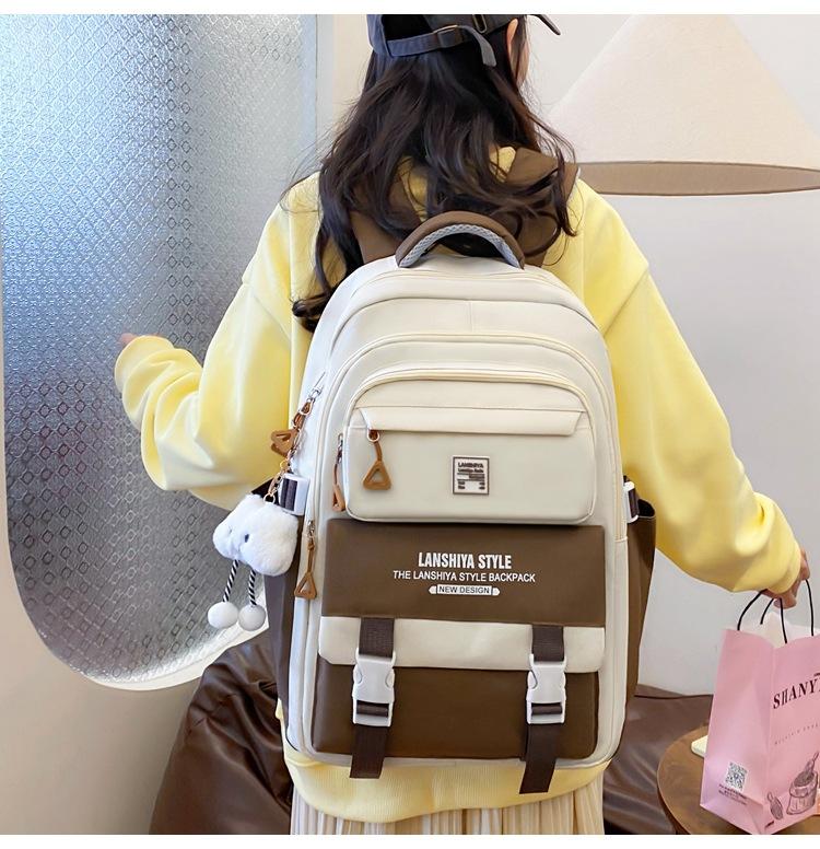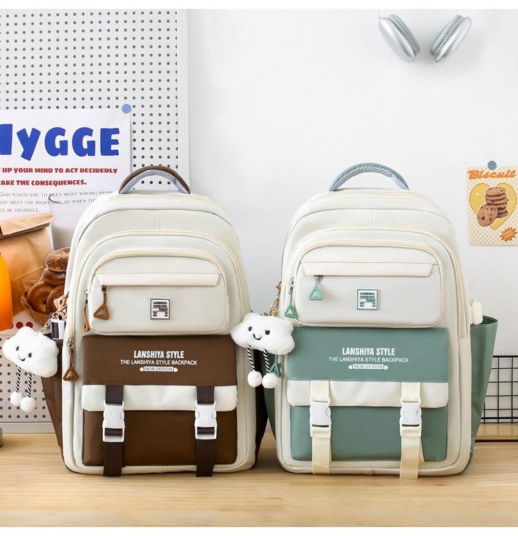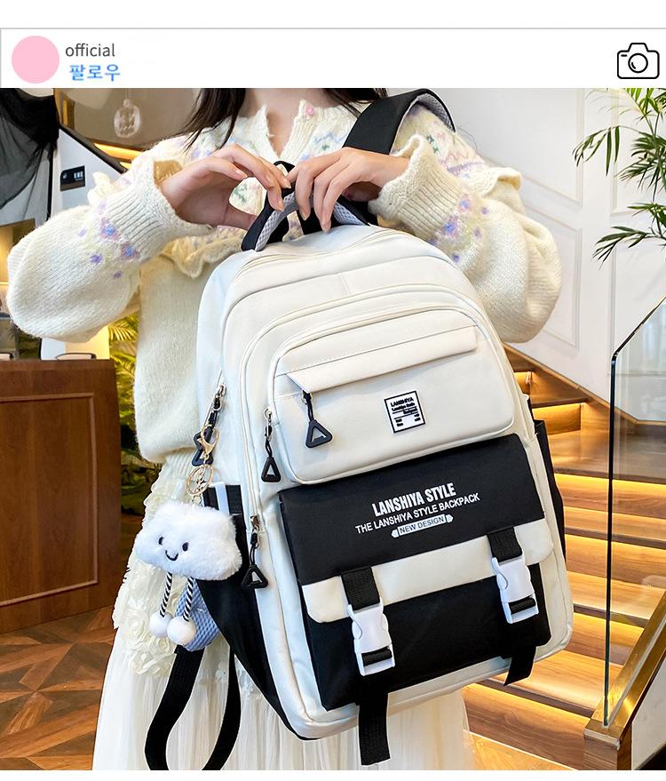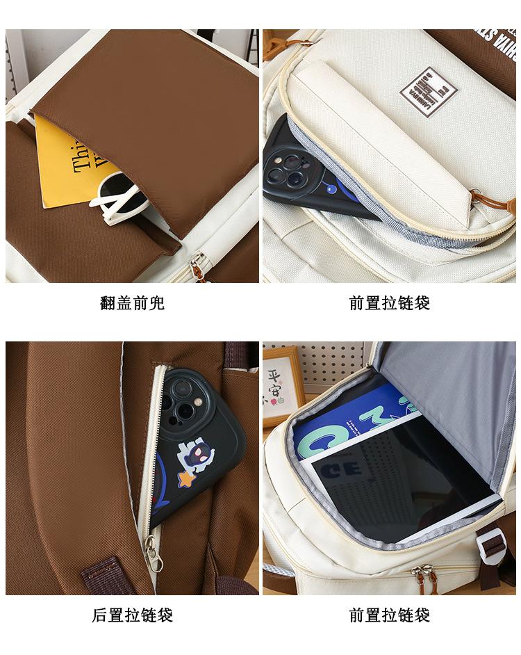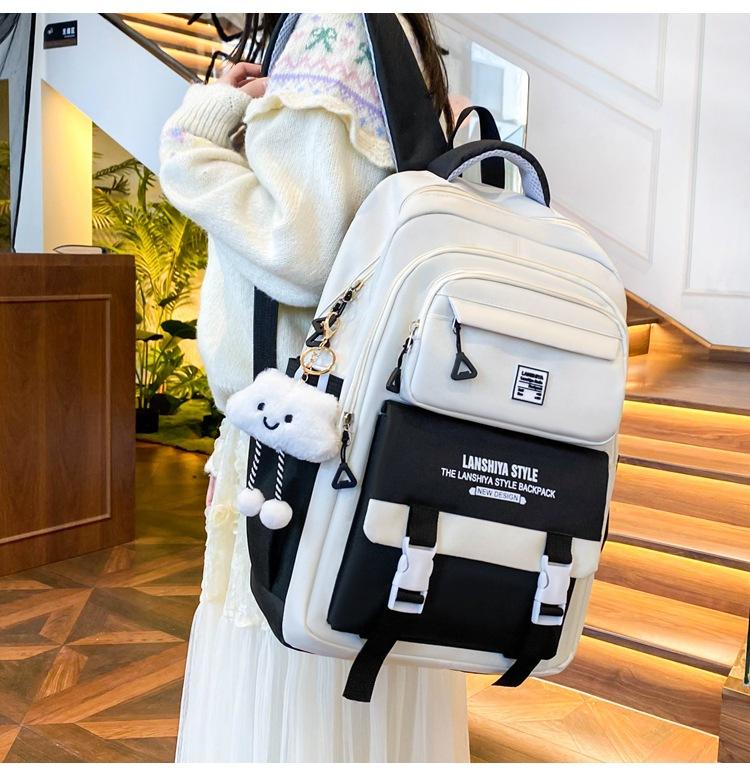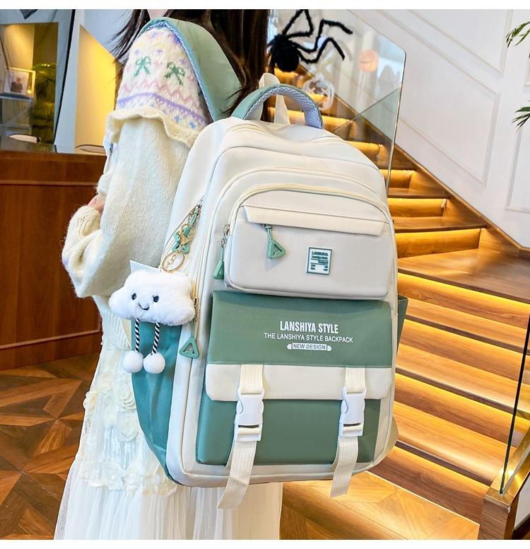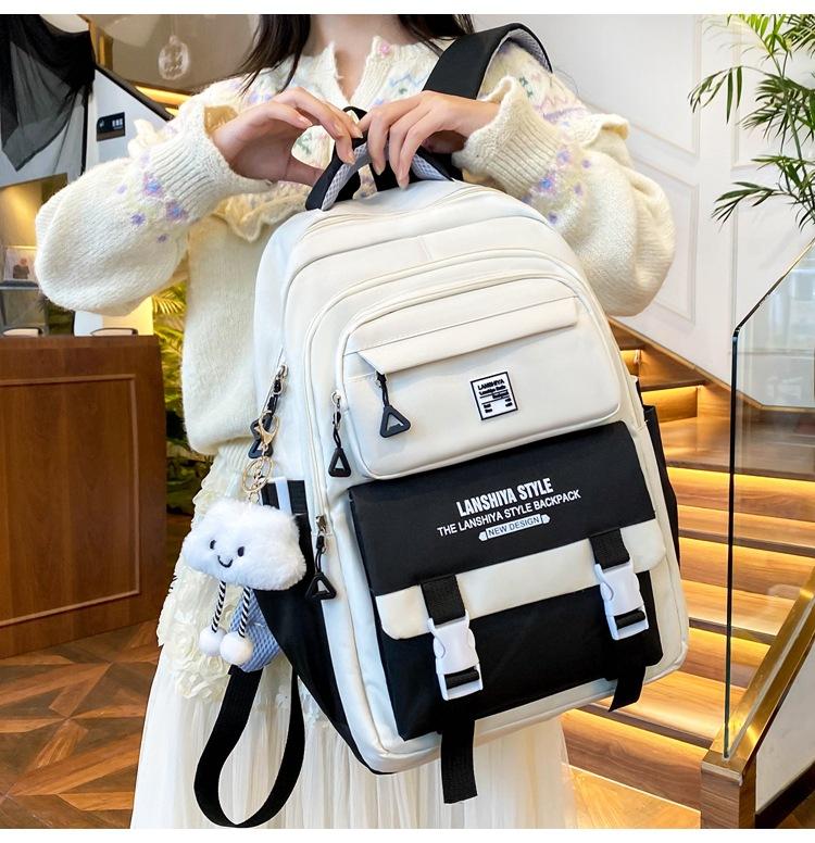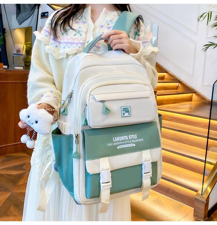 Mochila escolar de cinco piezas para estudiantes, mochila para estudiantes de secundaria, de color contrastante, coreana, duradera, de gran capacidad, para el campus, para hombre